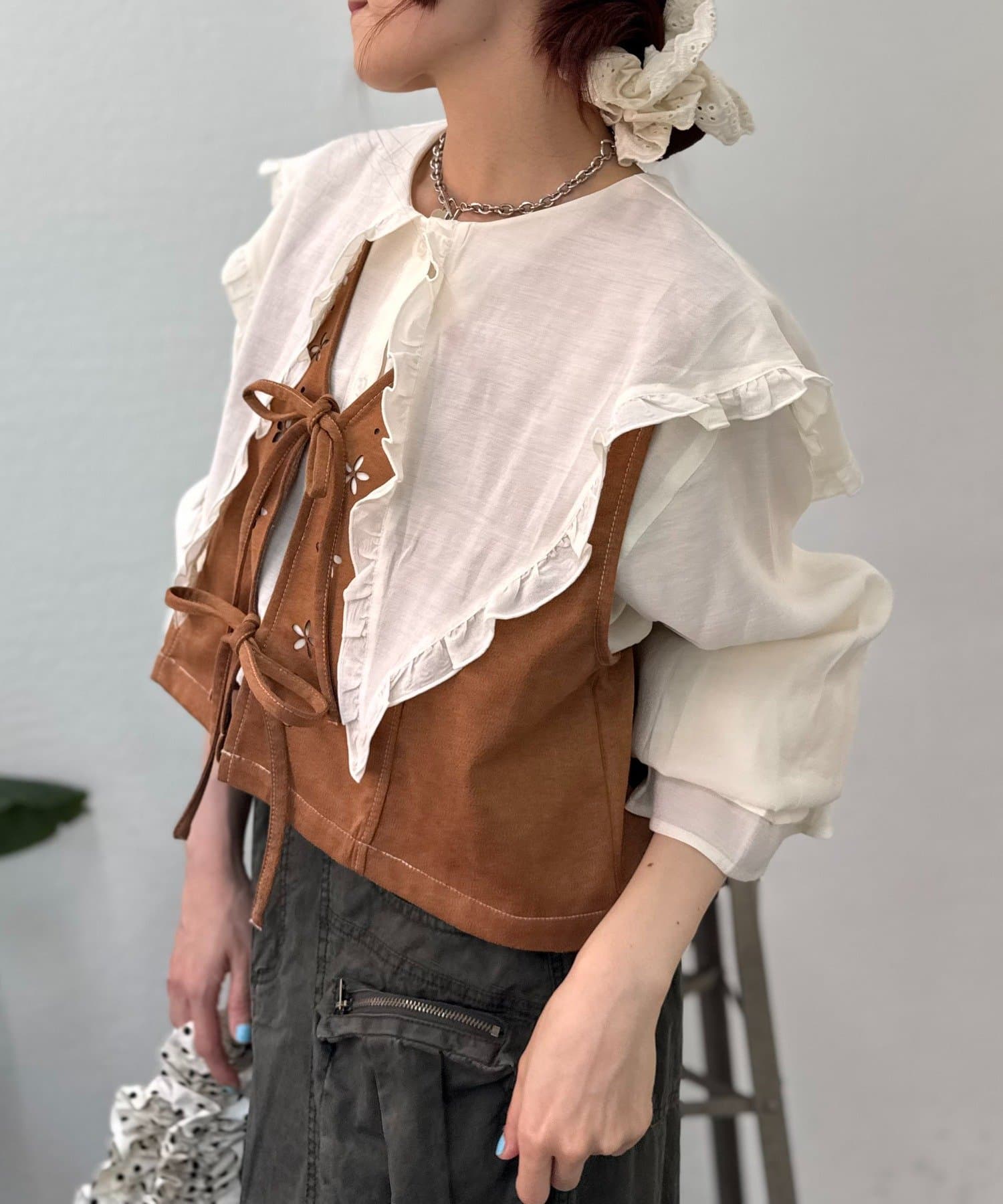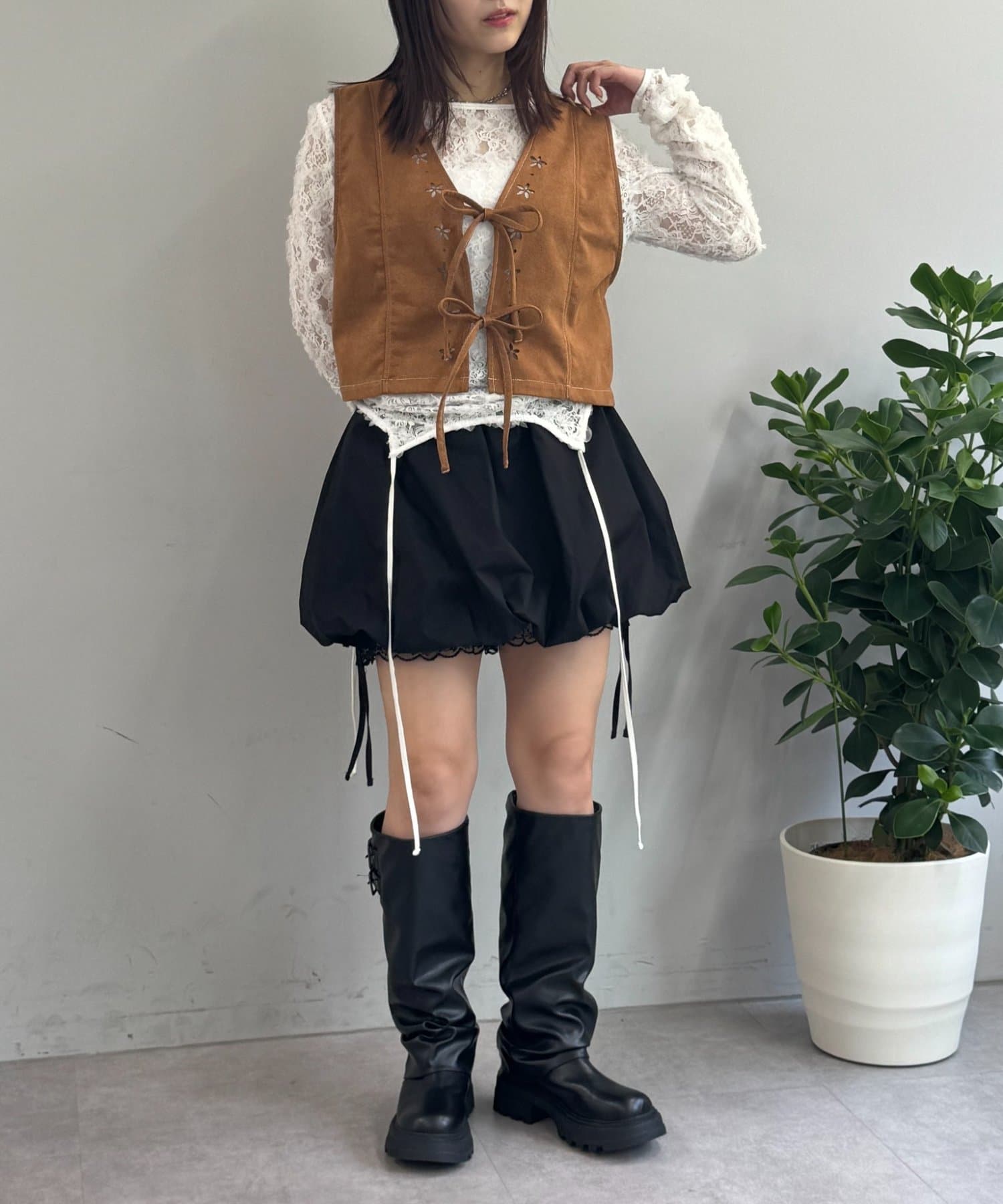 いつものコーデにプラスワンで可愛いフラワーベスト