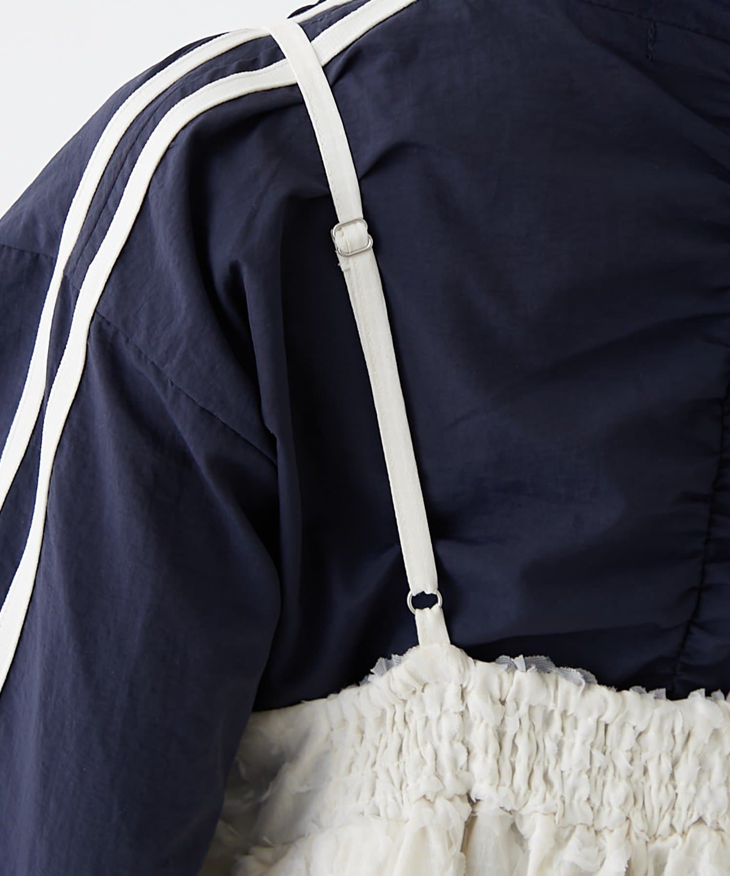 ・ショート丈の羽織と合わせると脚長効果◎トラックジャケットをインナーに使ったスポーティーなスタイルも