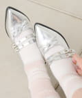 ・リボンデザインにポインテッドトゥの形を合わせたバランス感が可愛い