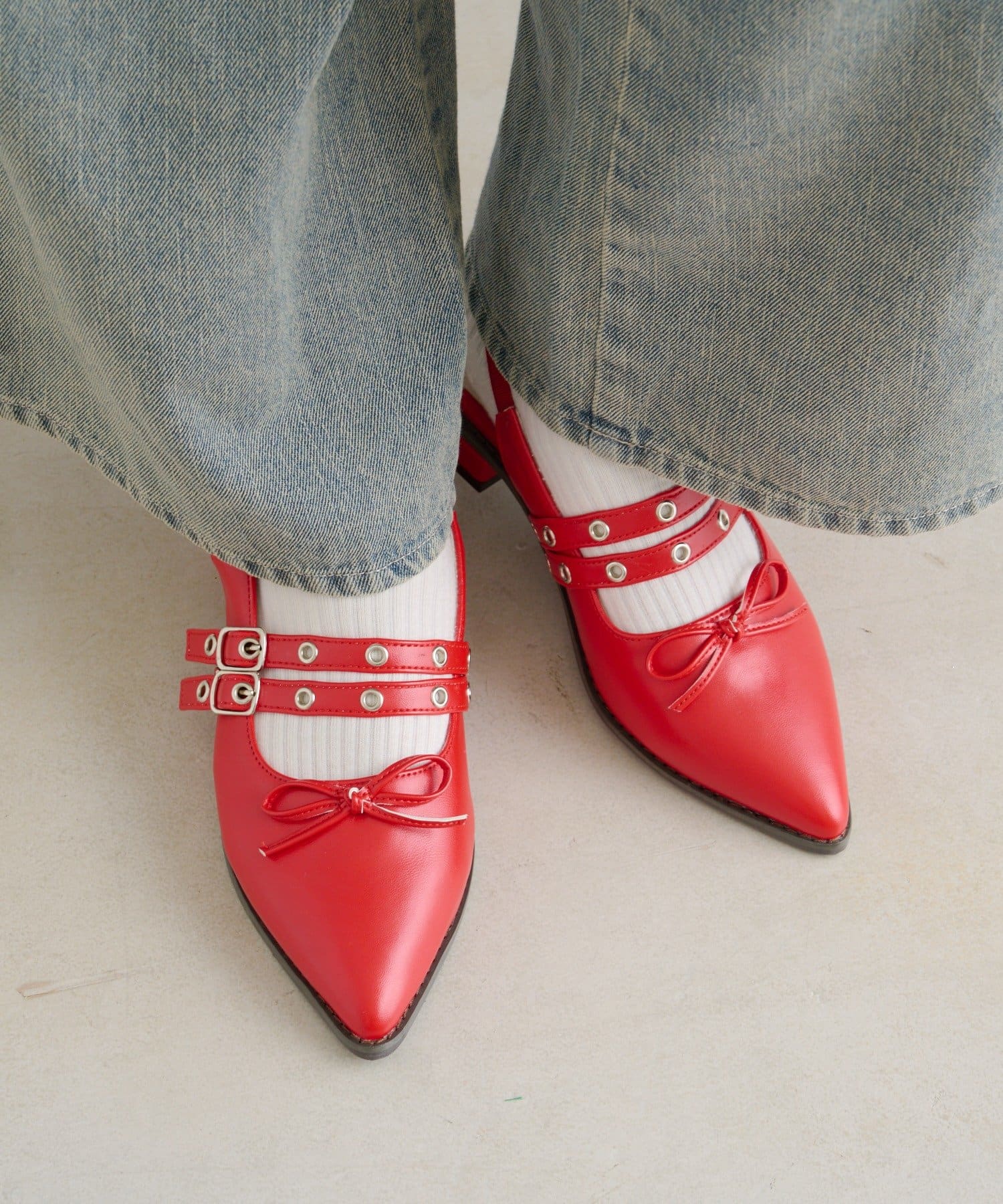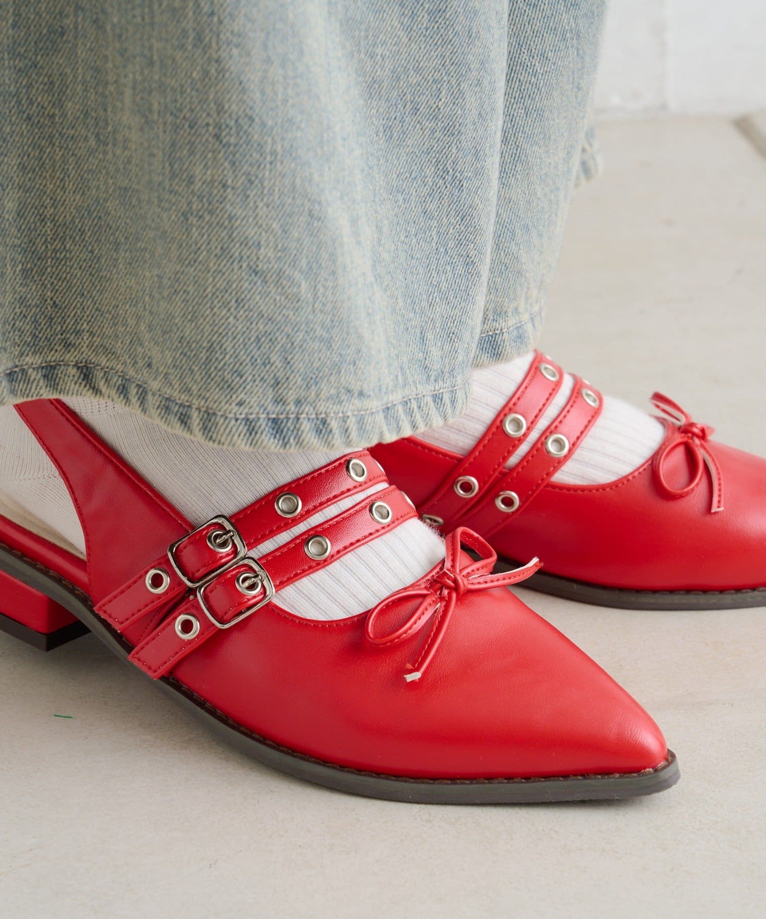・リボンデザインにポインテッドトゥの形を合わせたバランス感が可愛い
