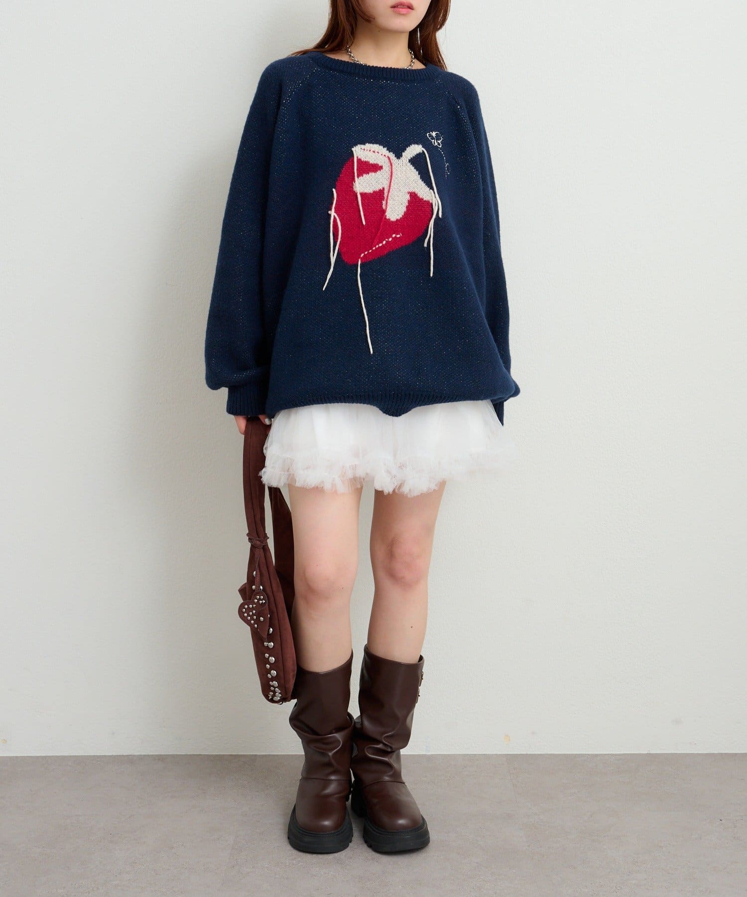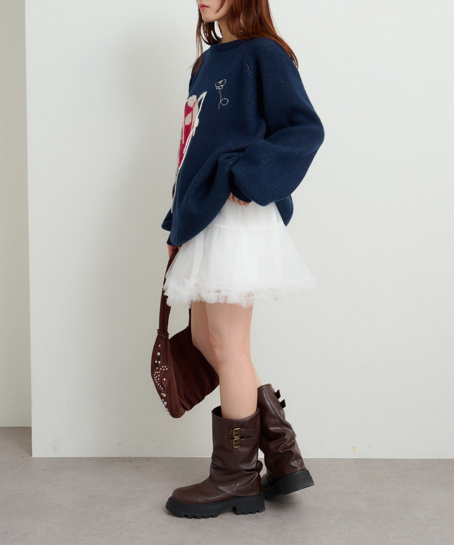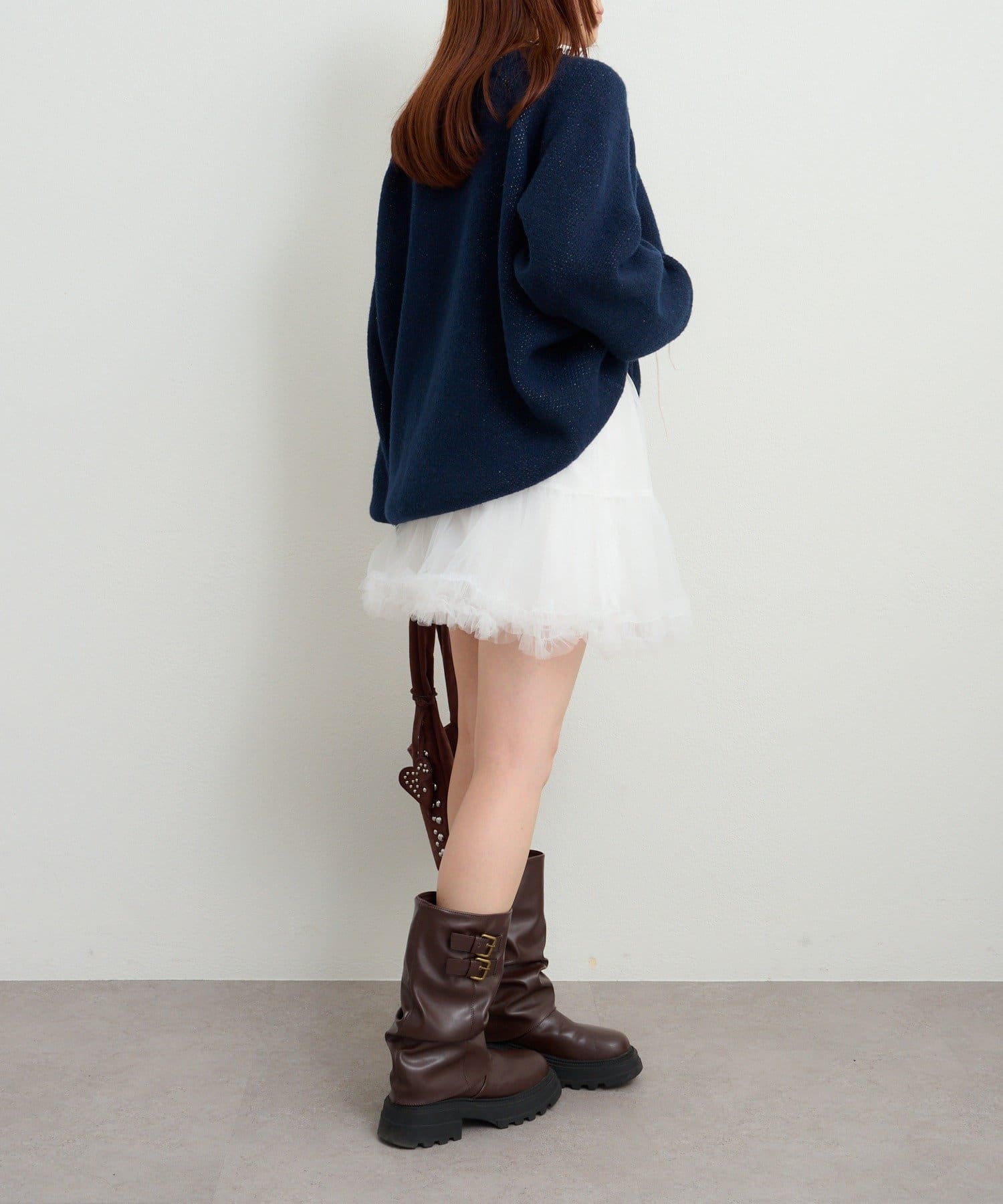 ・トップスは大きめなものと合わせてチラ見せもカワイイ♪