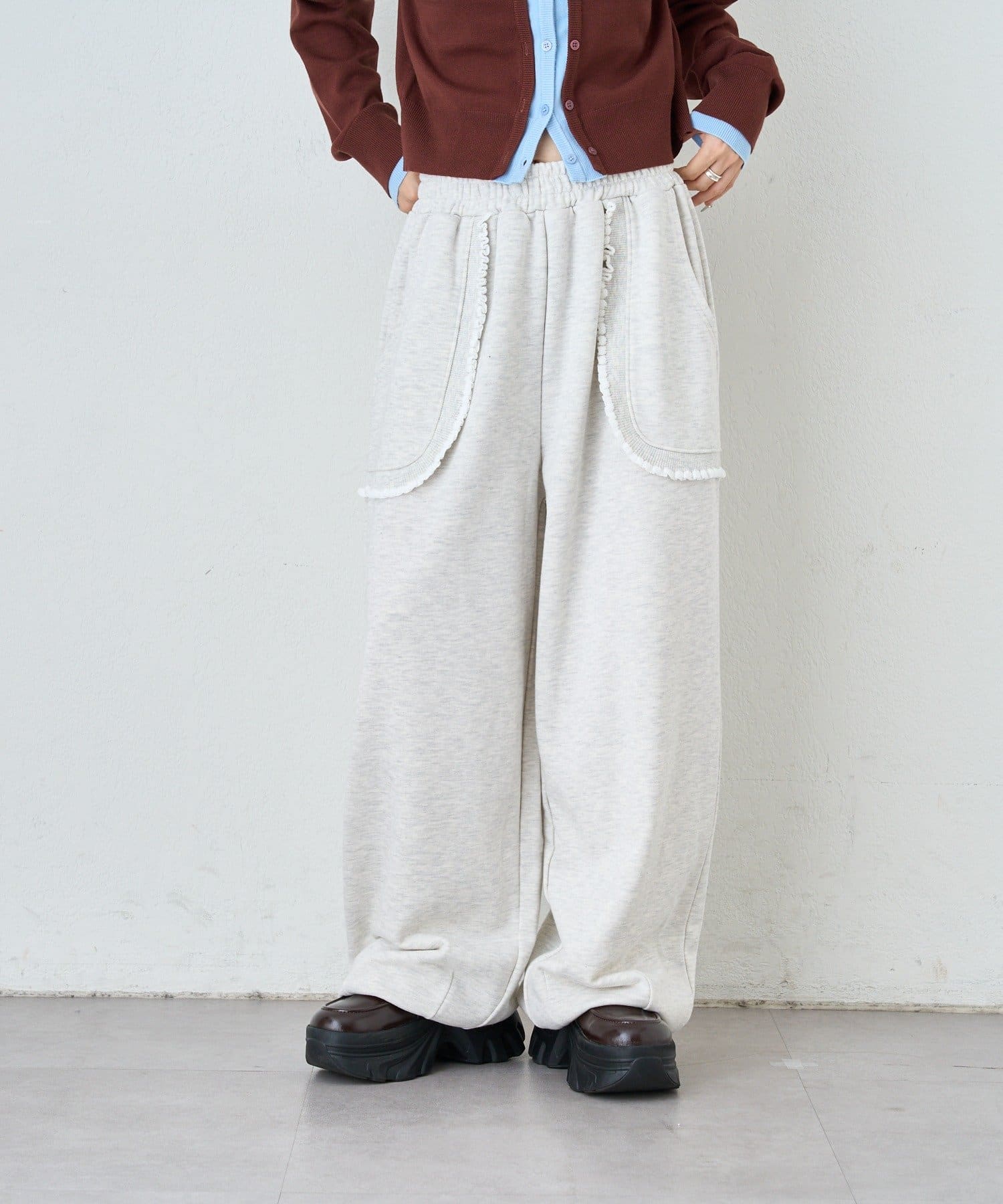 ・ポケット部分のフリルがポイントのスウェットパンツ!