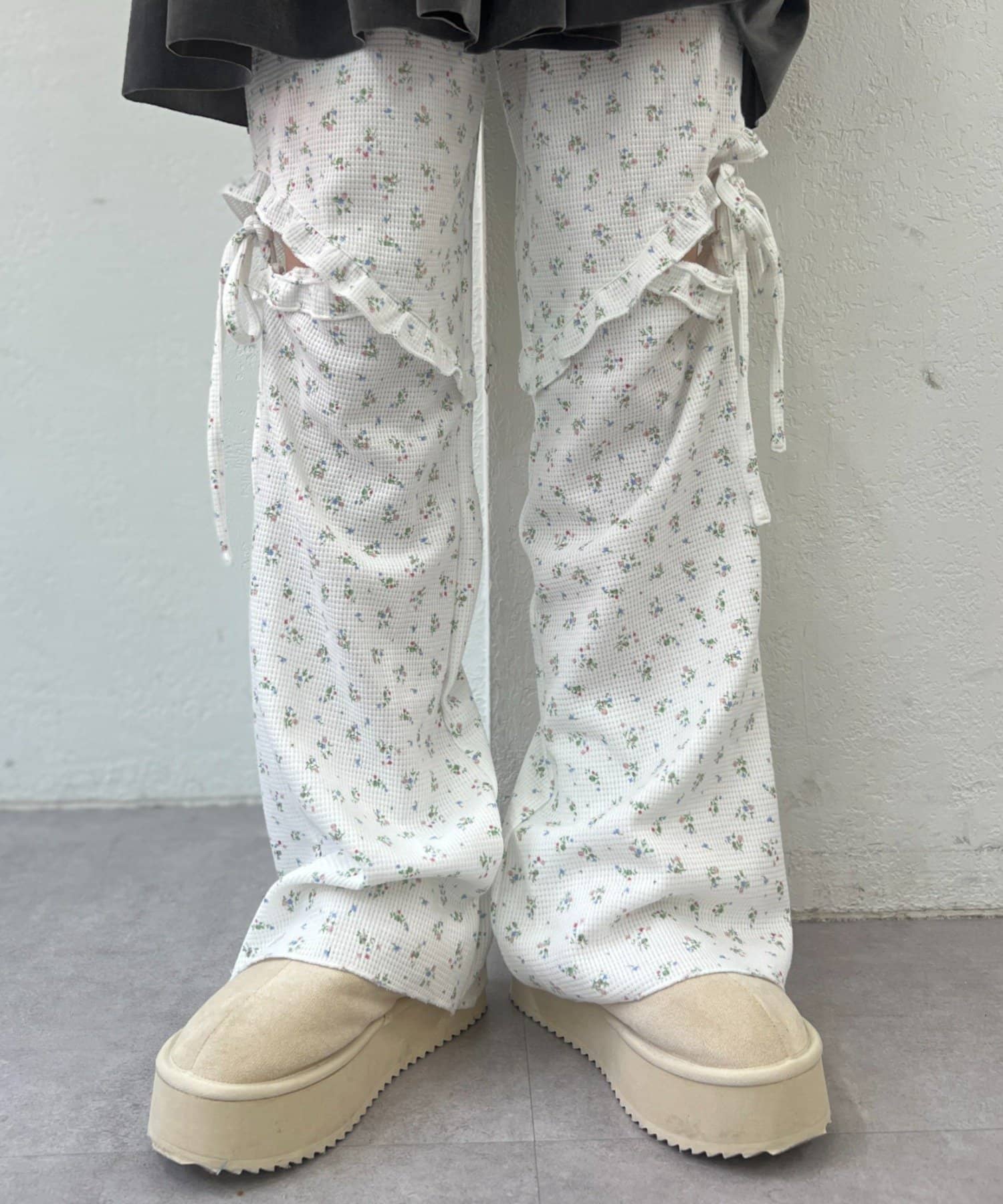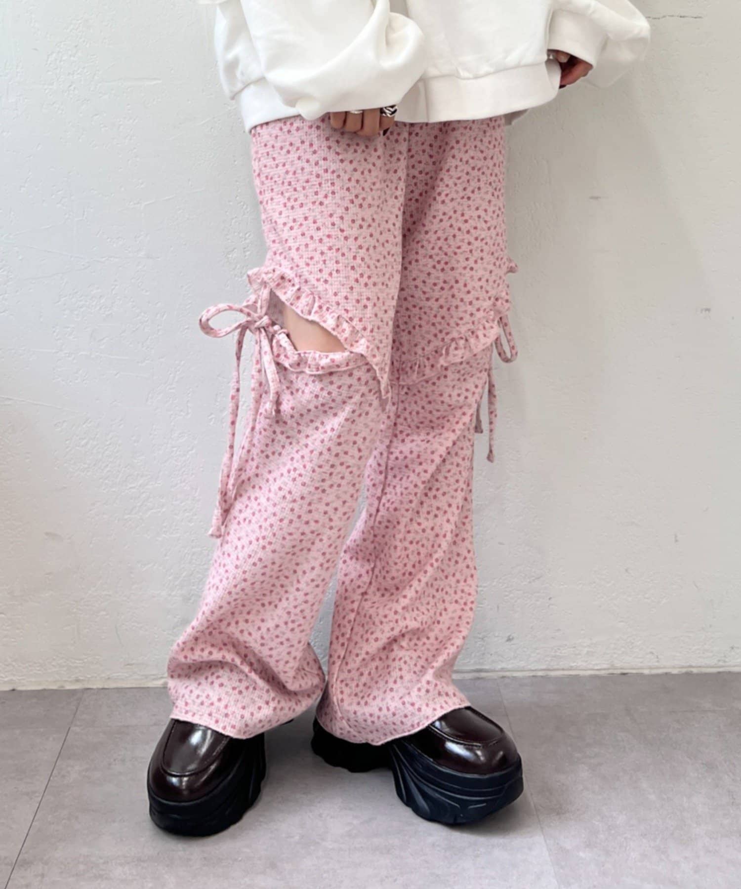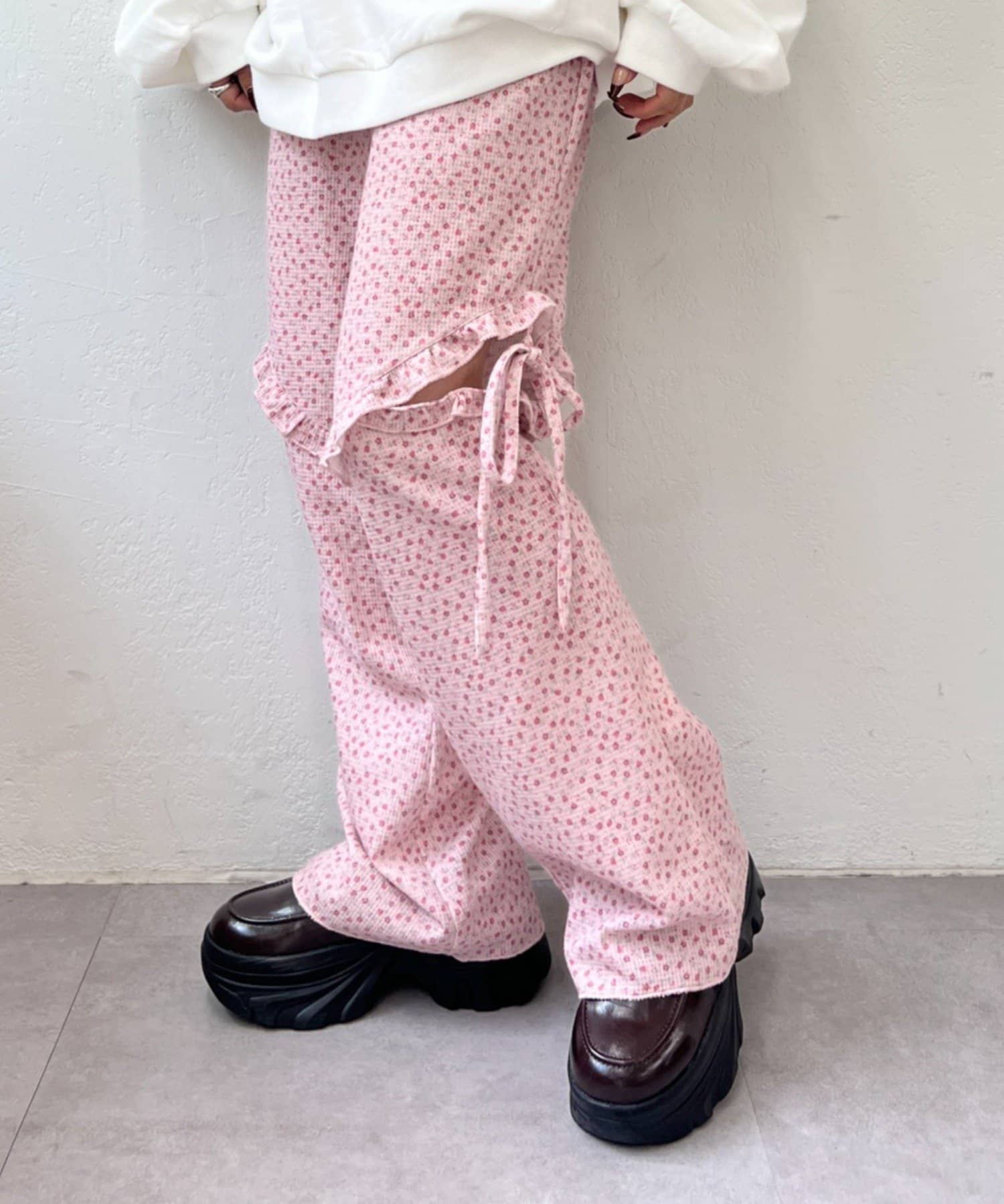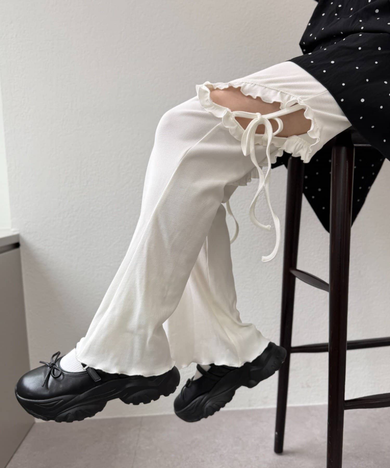 w closet(ダブルクローゼット) 【2サイズ展開】リボンフリルパンツ