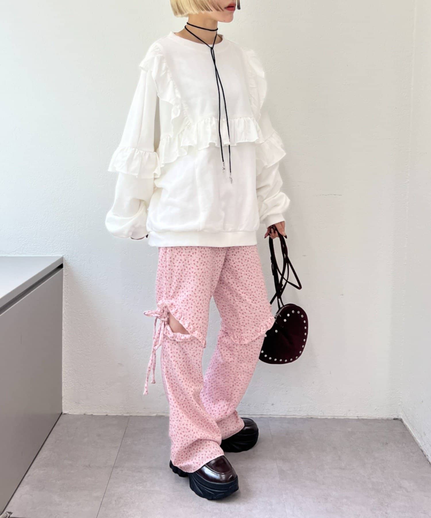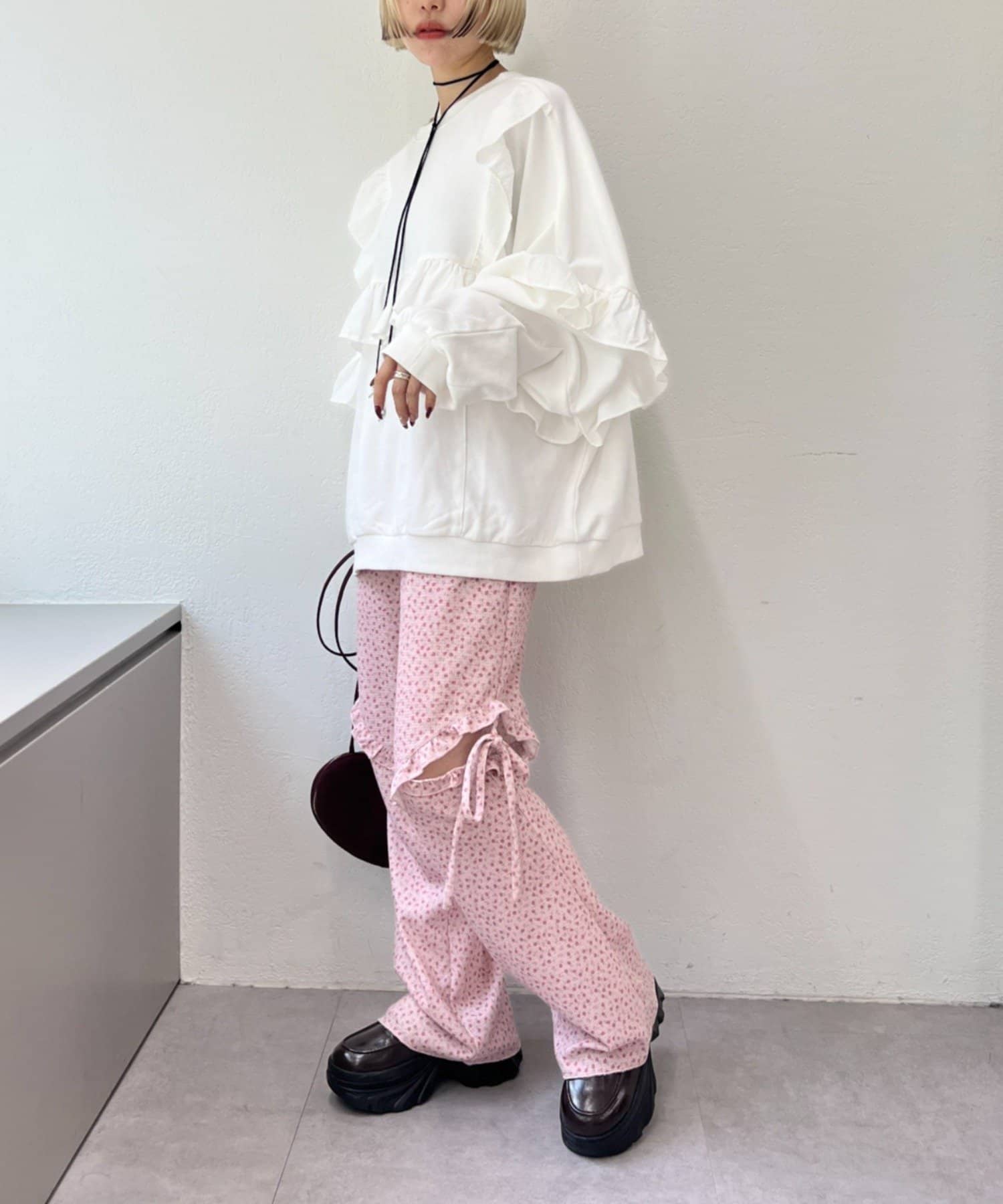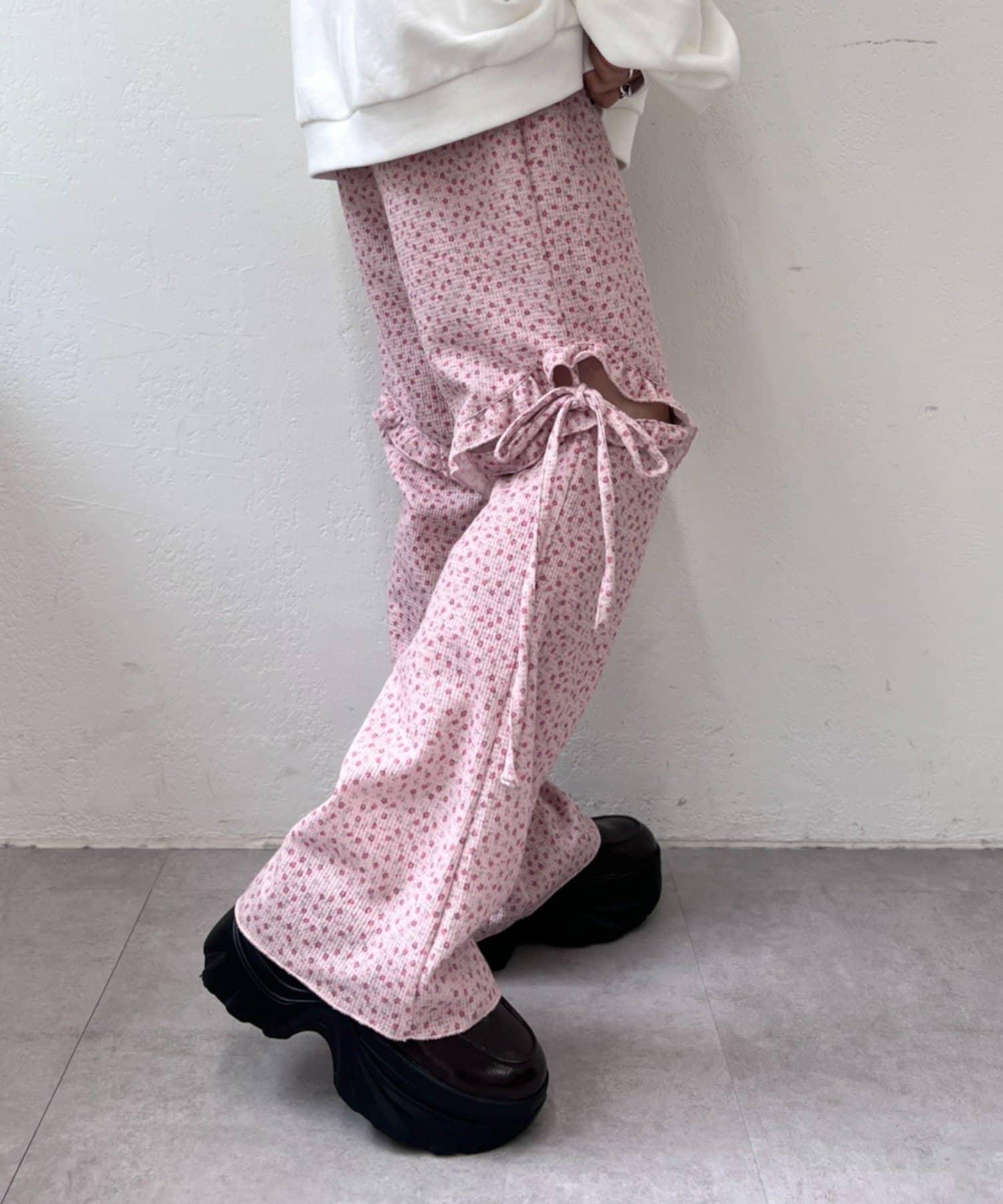 w closet(ダブルクローゼット) 【2サイズ展開】リボンフリルパンツ