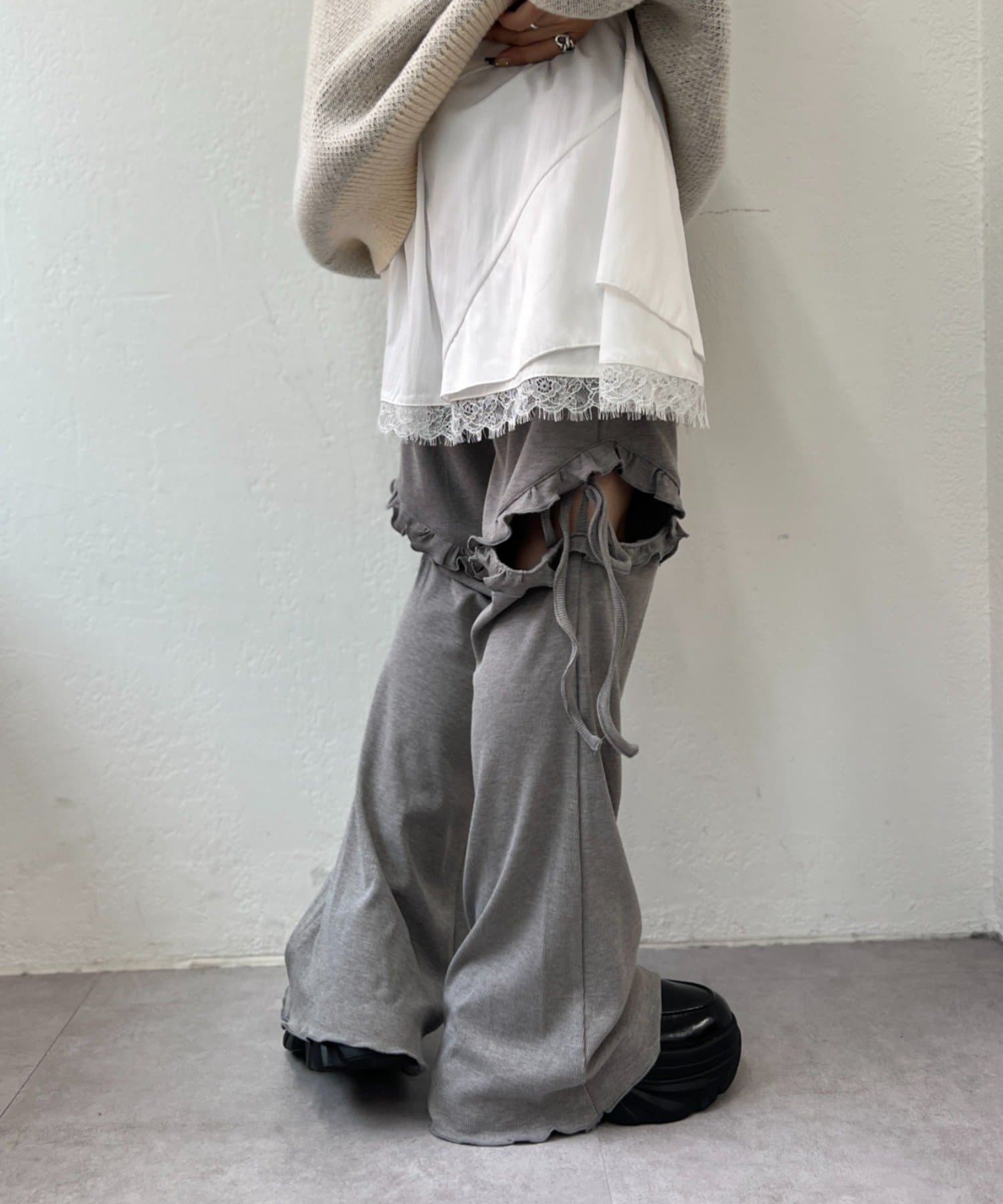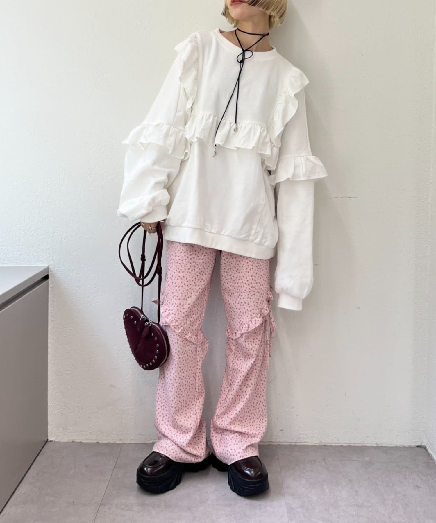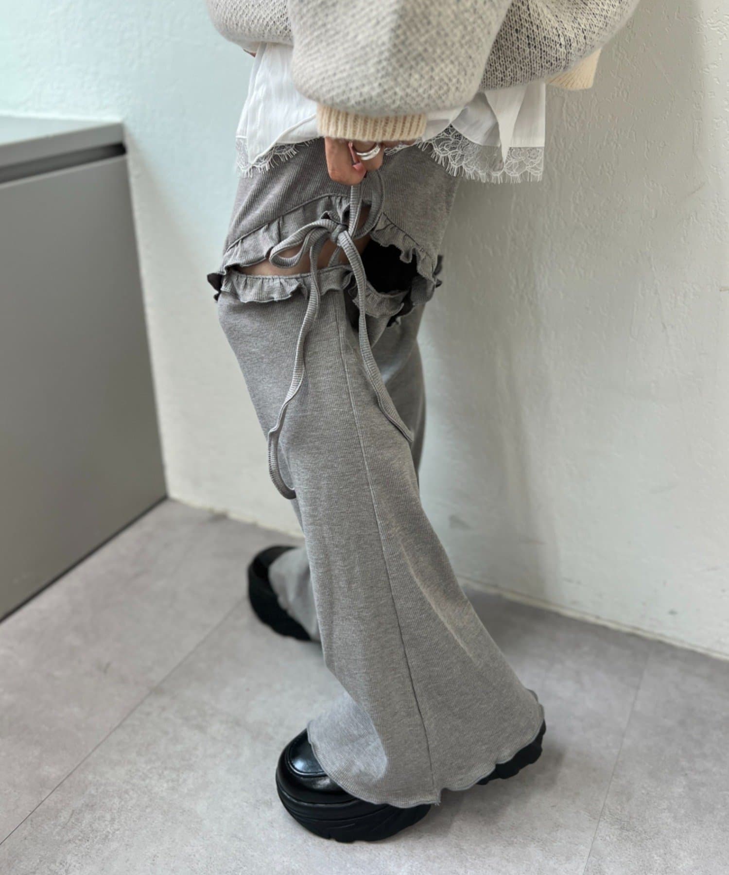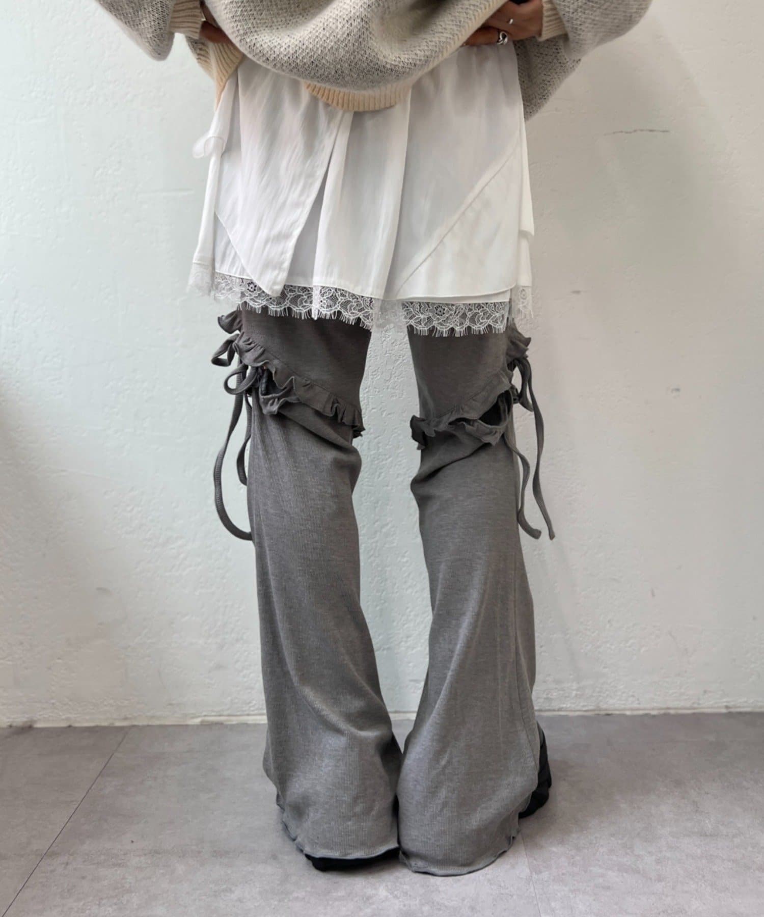 w closet(ダブルクローゼット) 【2サイズ展開】リボンフリルパンツ