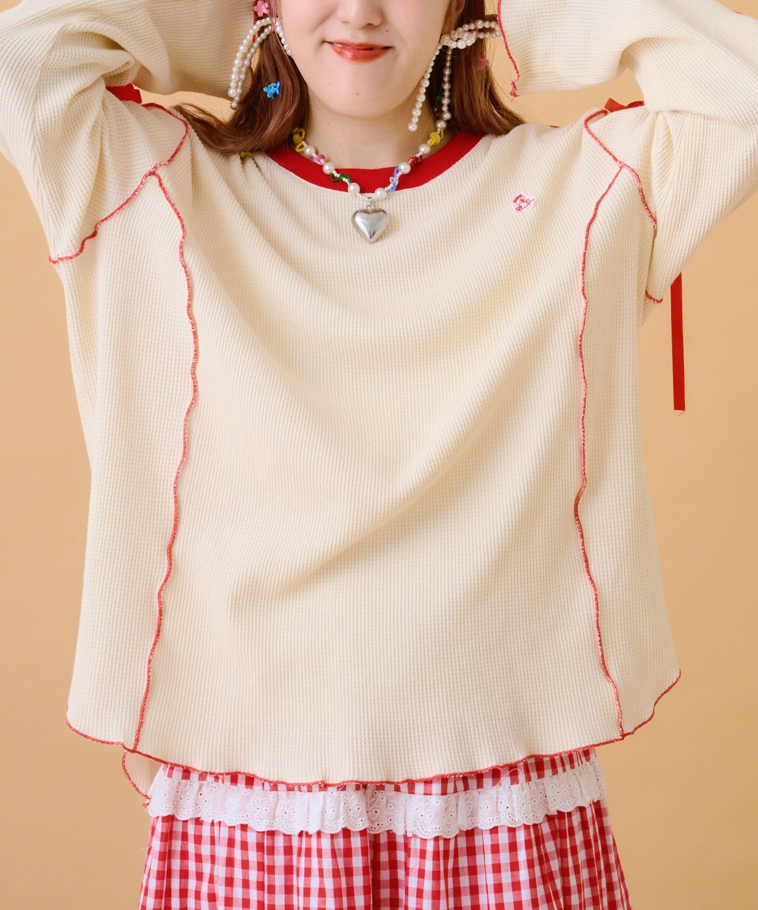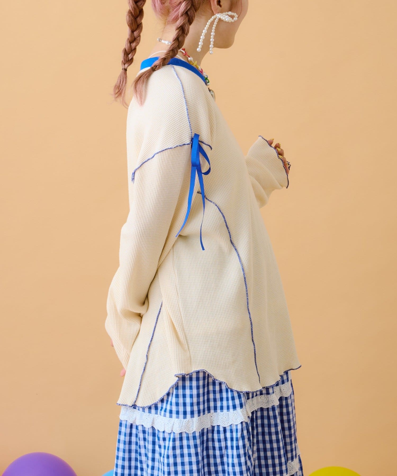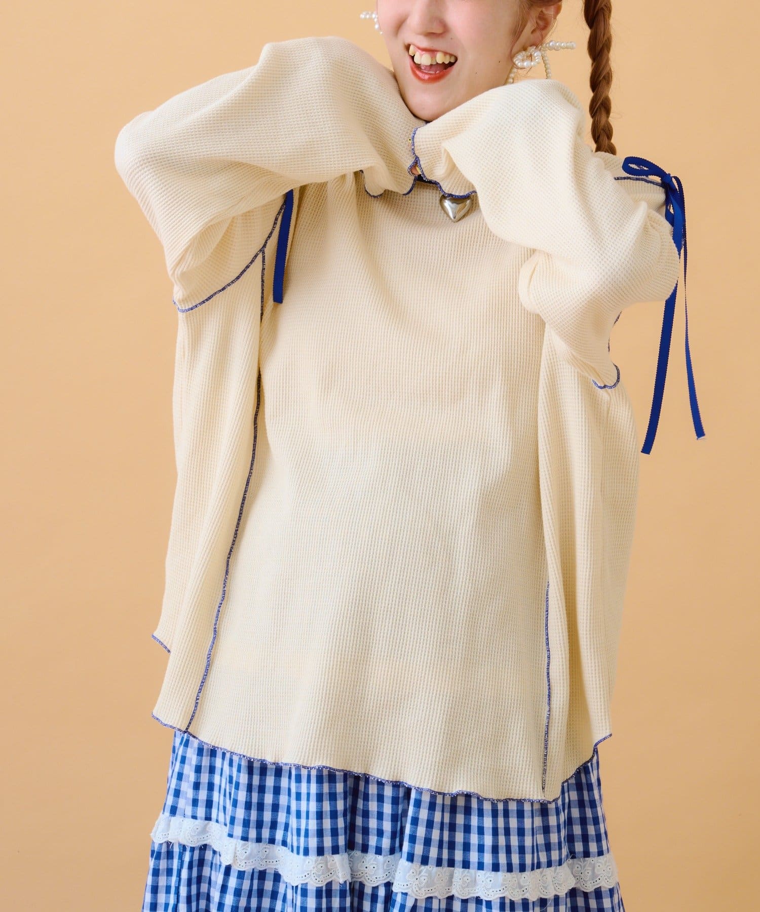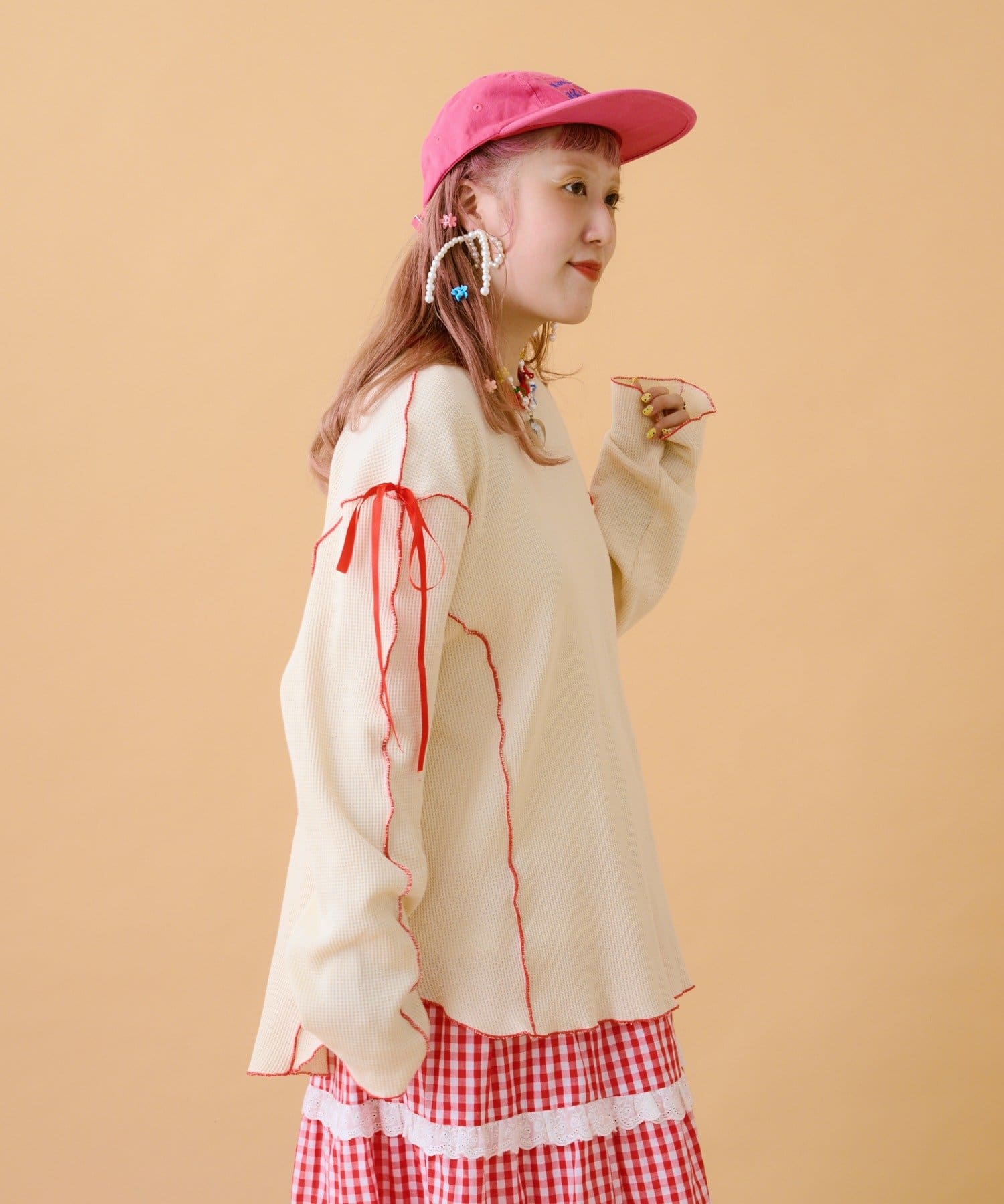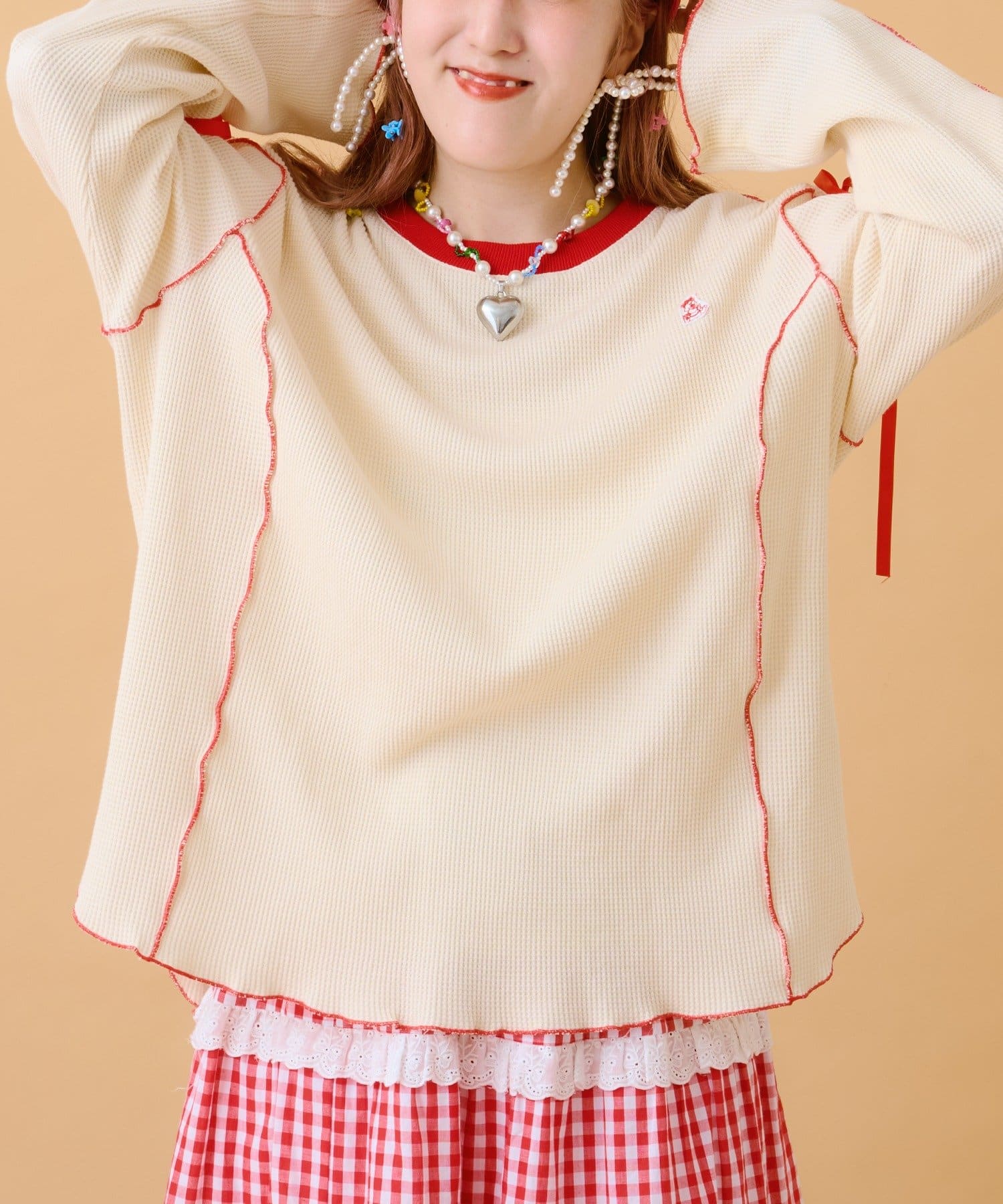 TOP > w closet > レディース > トップス > Tシャツ/カットソー > 【あみこ企画第2弾】フリルメローワッフルT