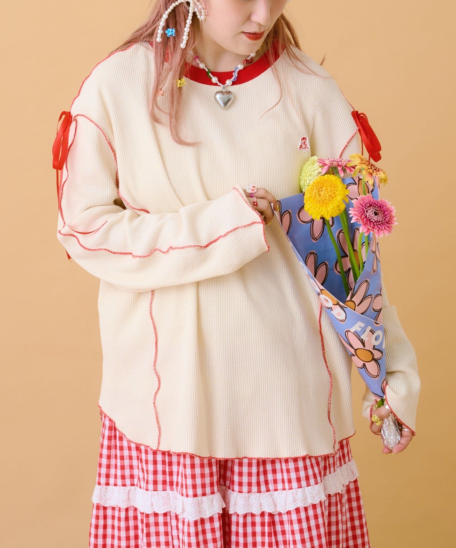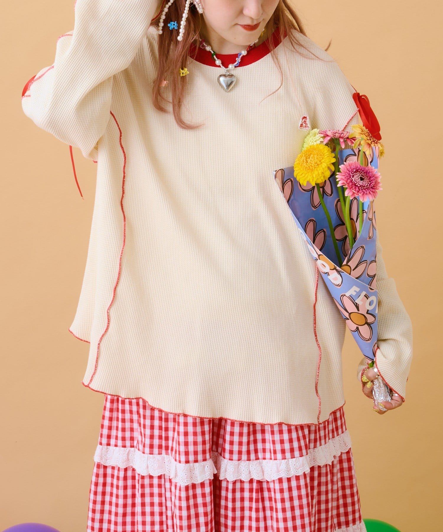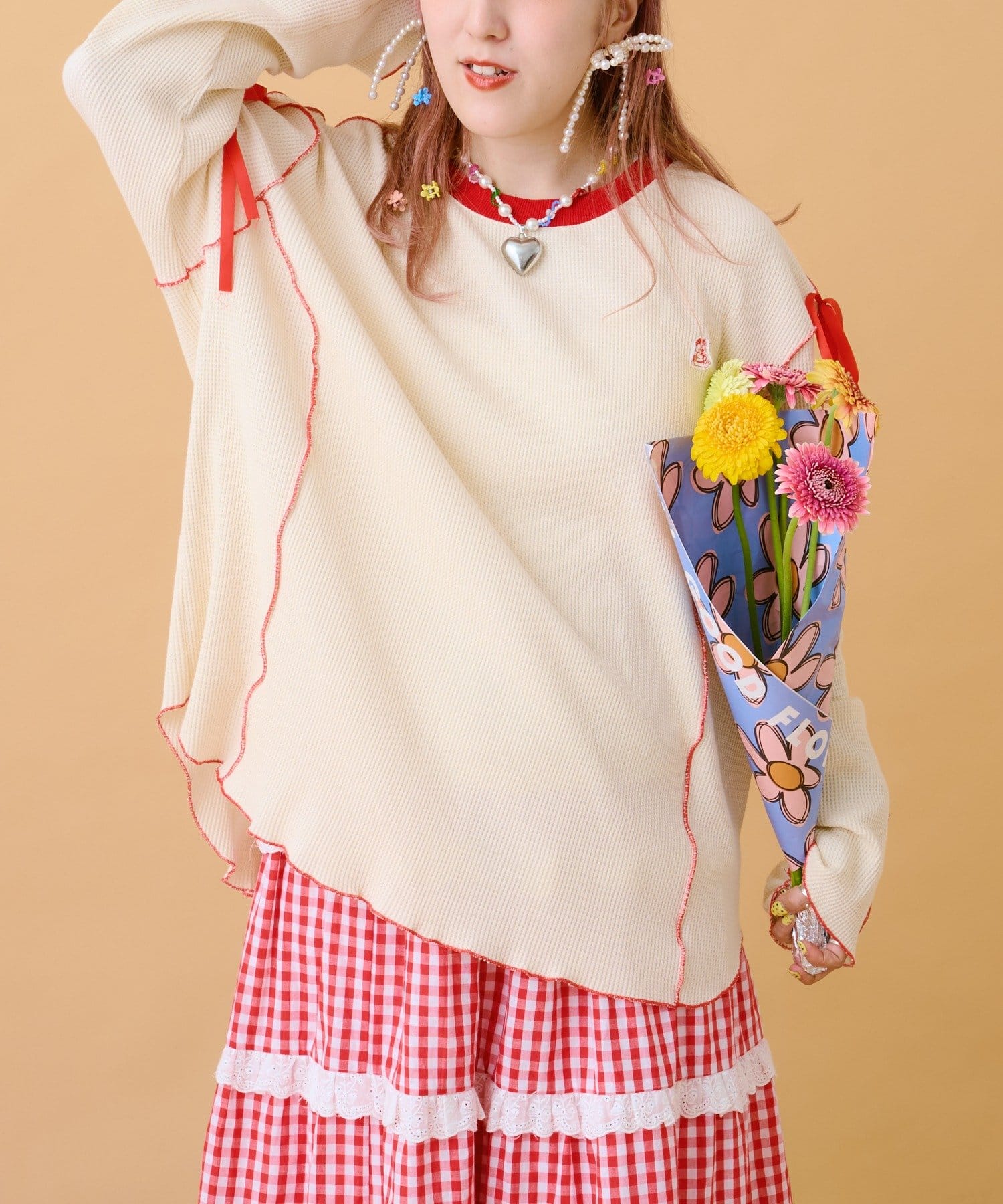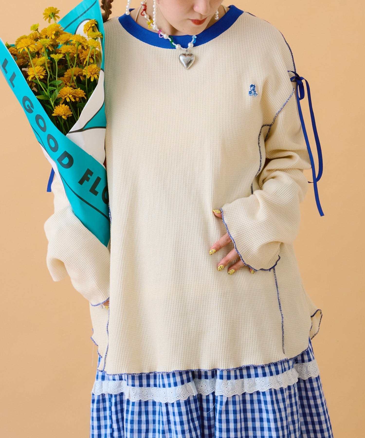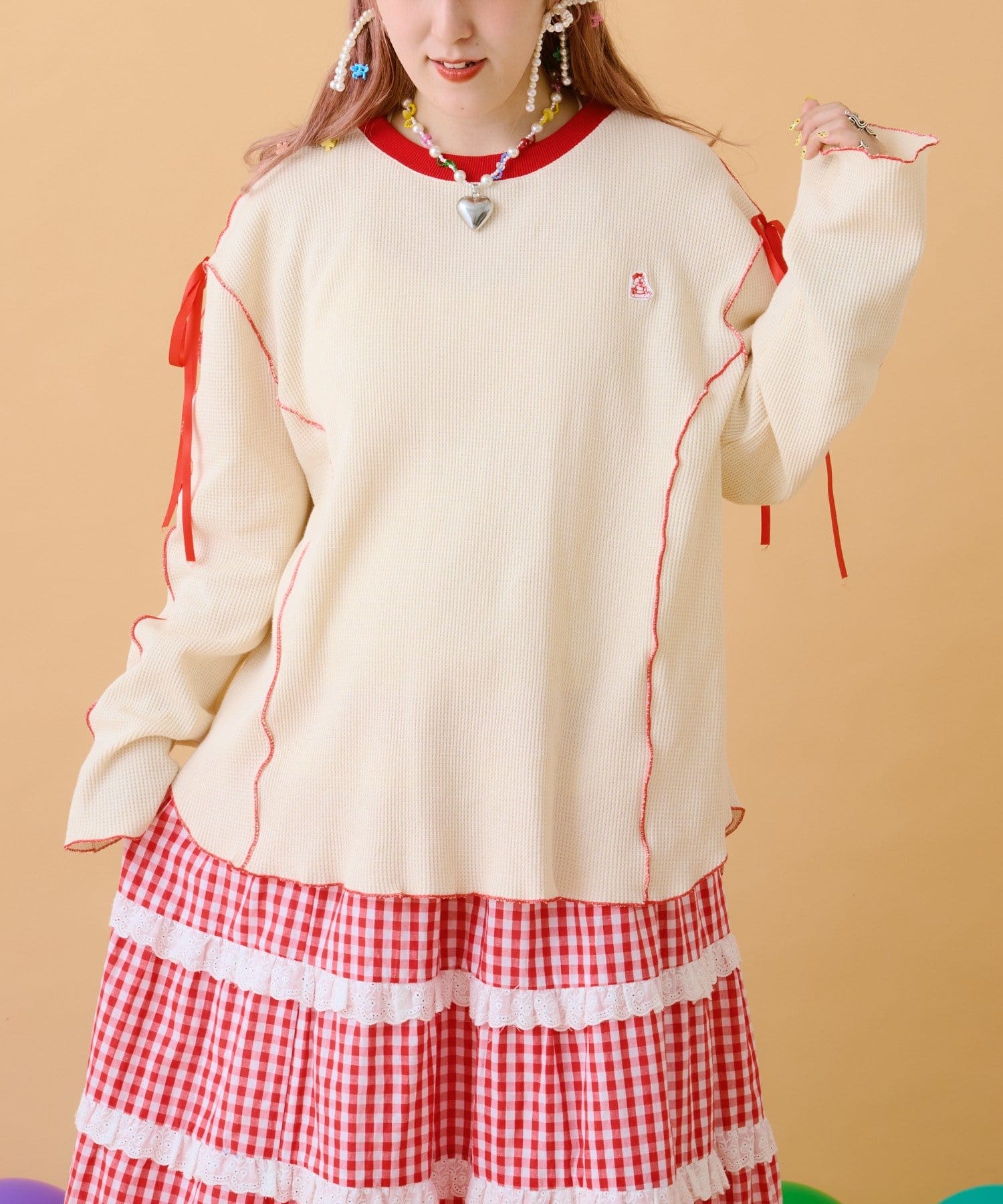 TOP > w closet > レディース > トップス > Tシャツ/カットソー > 【あみこ企画第2弾】フリルメローワッフルT