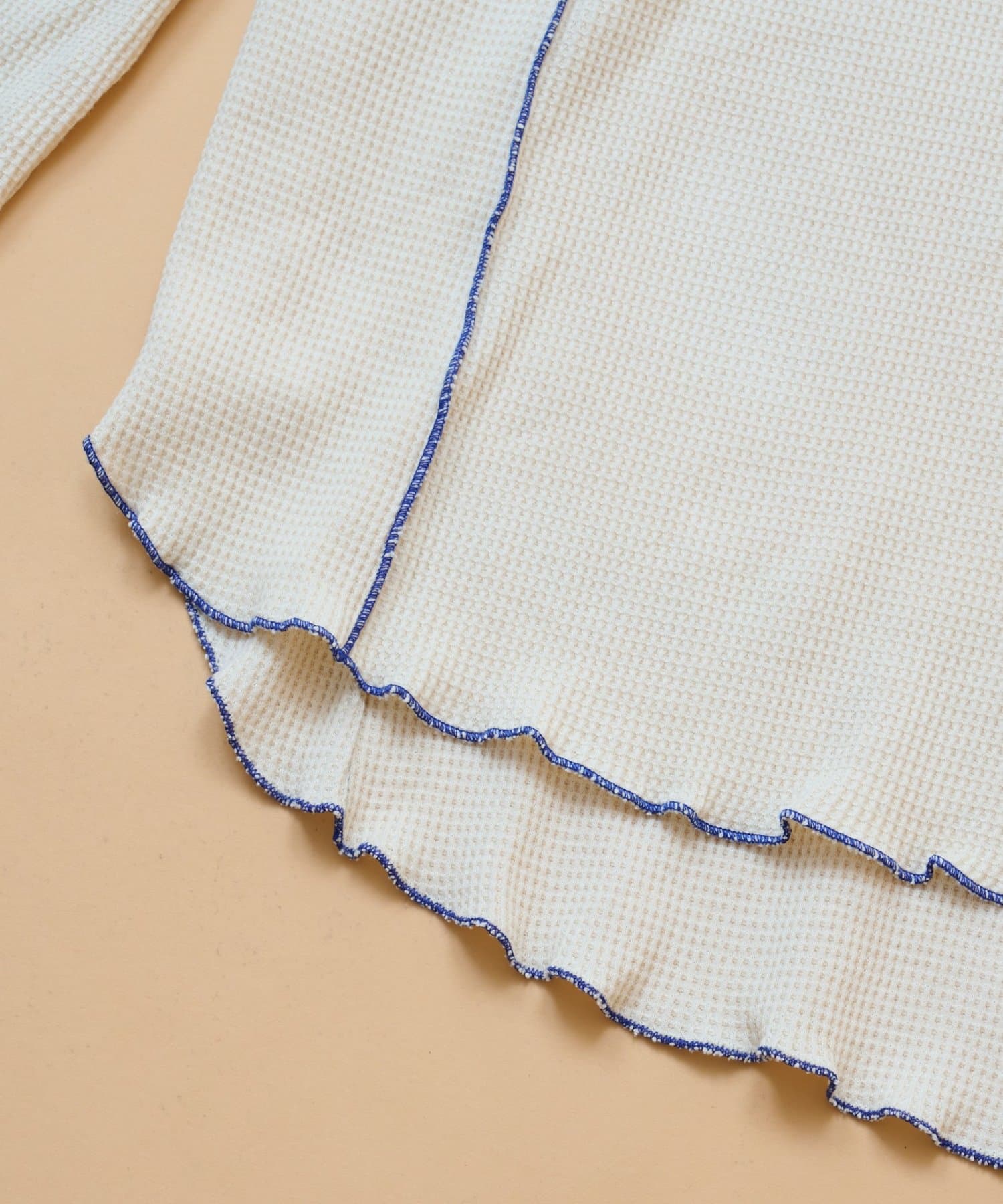 ・肌触りのいいワッフル生地とバイカラーのステッチが目を引く一着