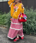 ・オーバーサイズを生かしミニ丈のボトムスと合わせてワンピース風に