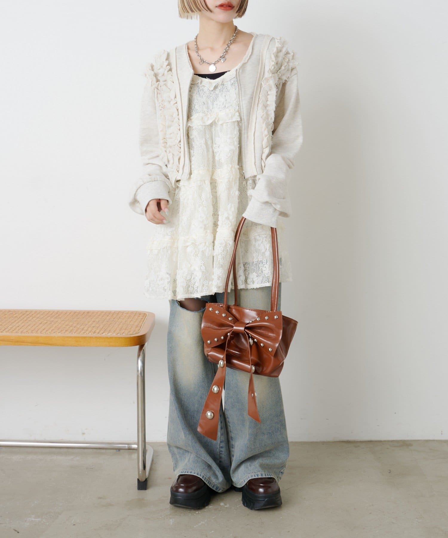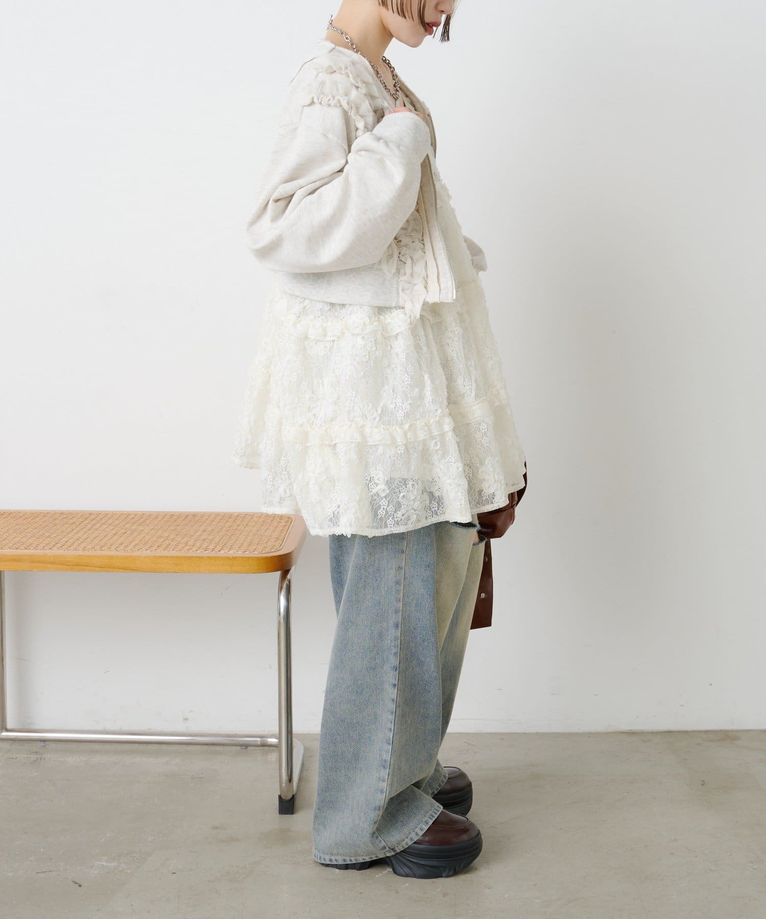• w closet(ダブルクローゼット) フリルWジップスウェット