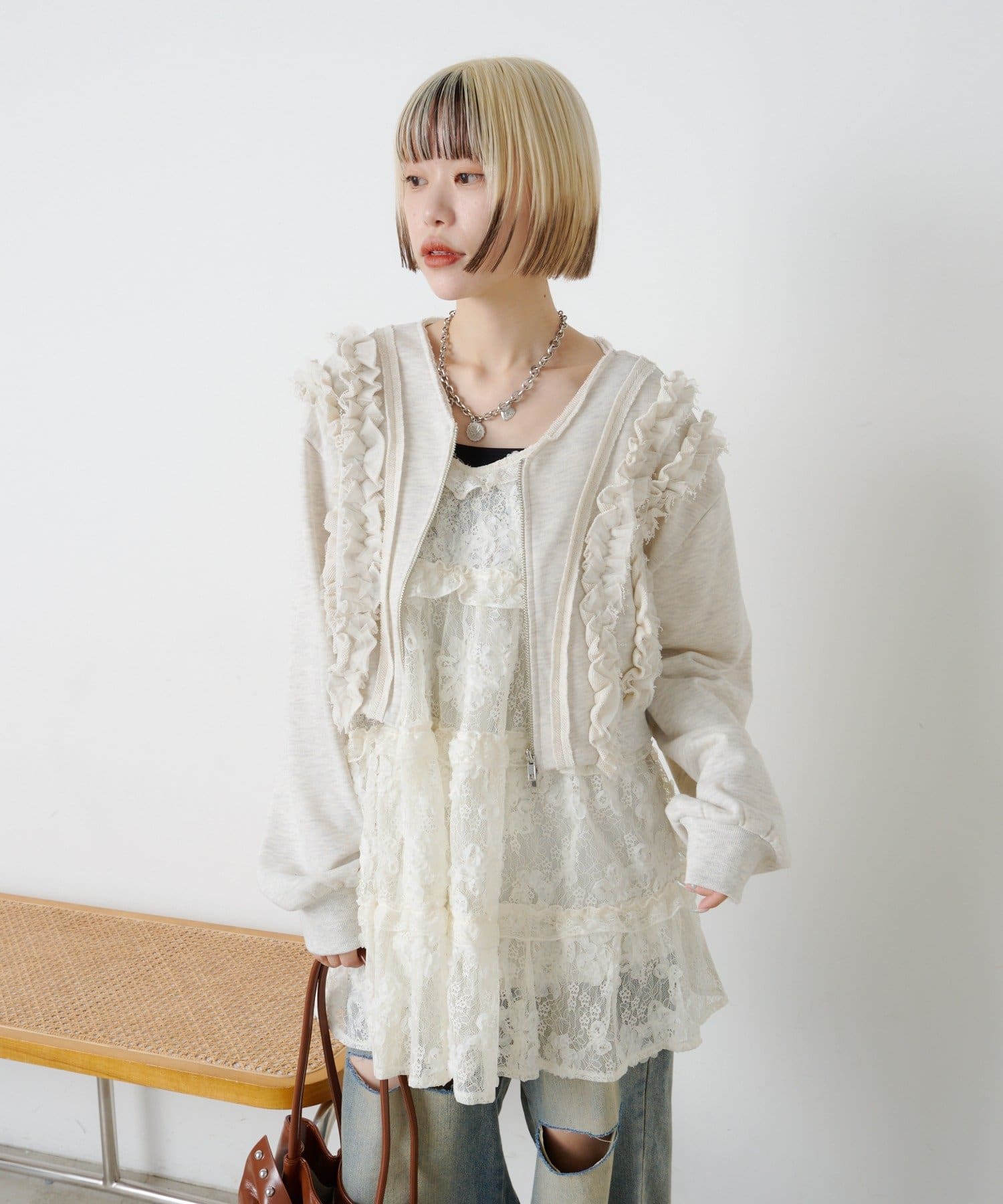 TOP > w closet > レディース > トップス > パーカー/アノラック > フリルWジップスウェット