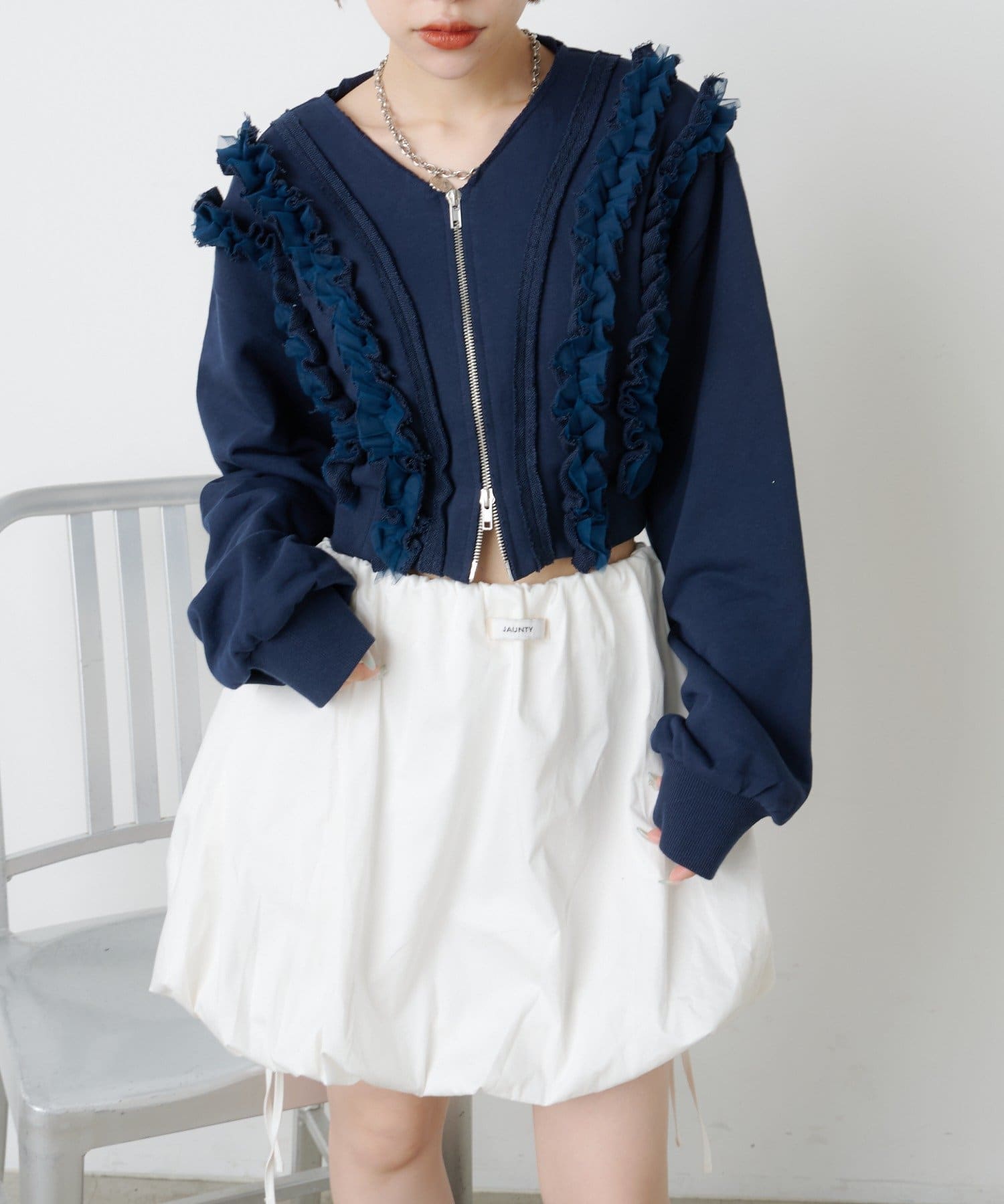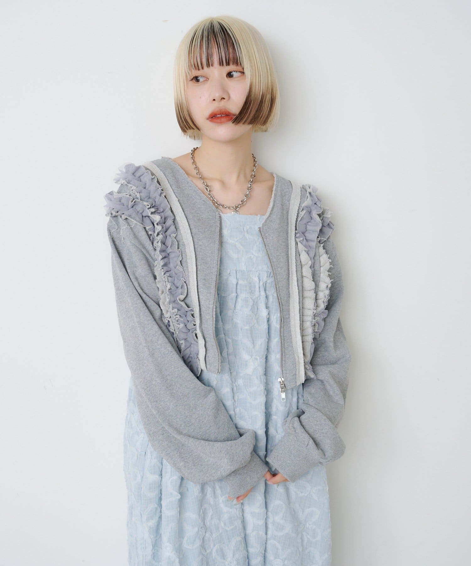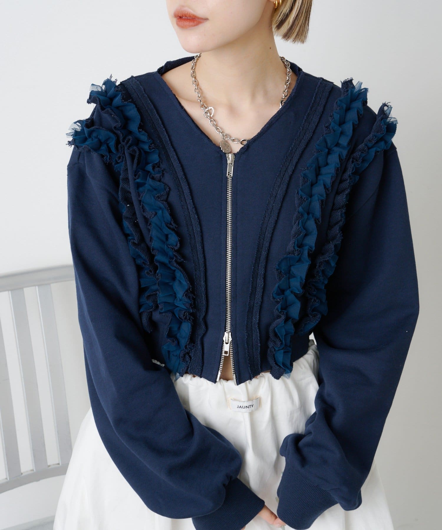 w closet(ダブルクローゼット) フリルWジップスウェット