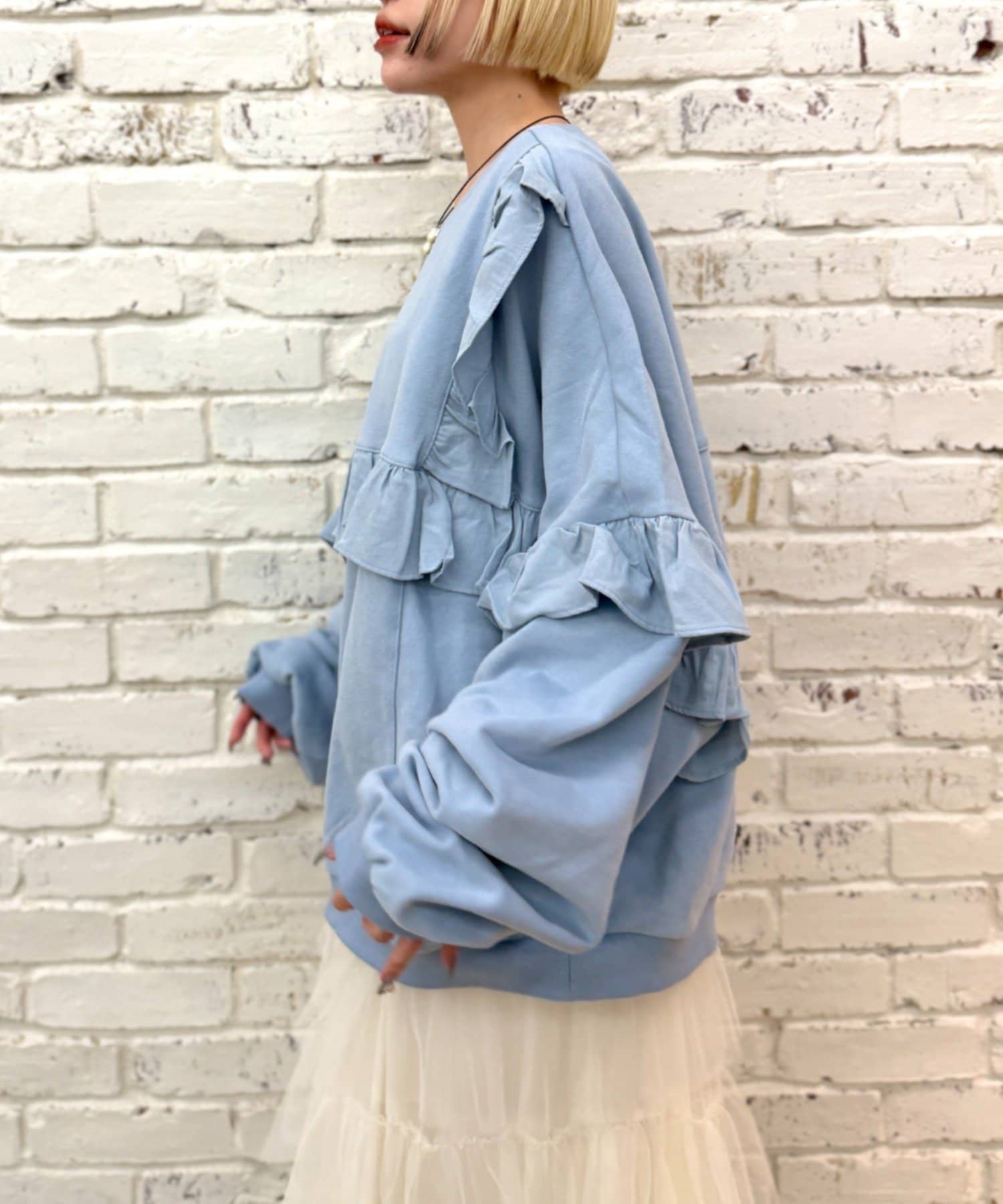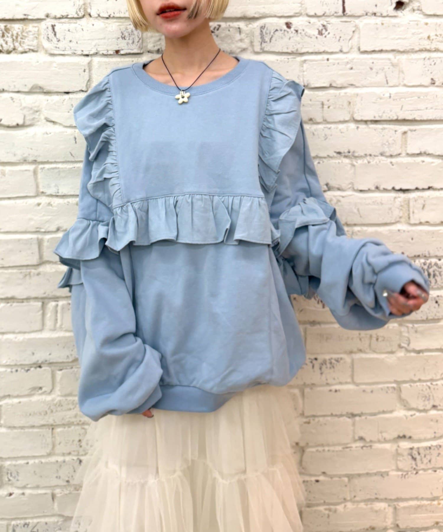 【人気につき新色ブルーが登場!&追加決定!】【気映えNO.1】フリルBIGスウェット