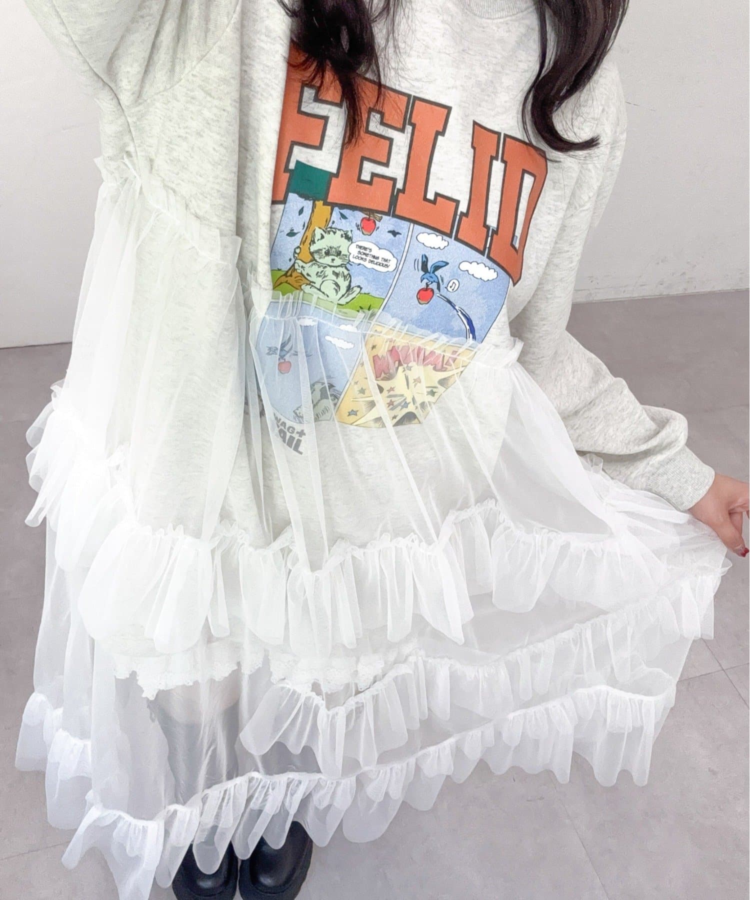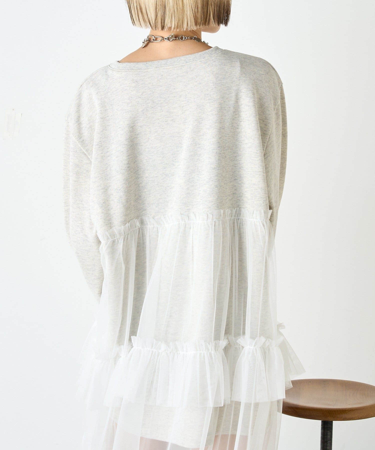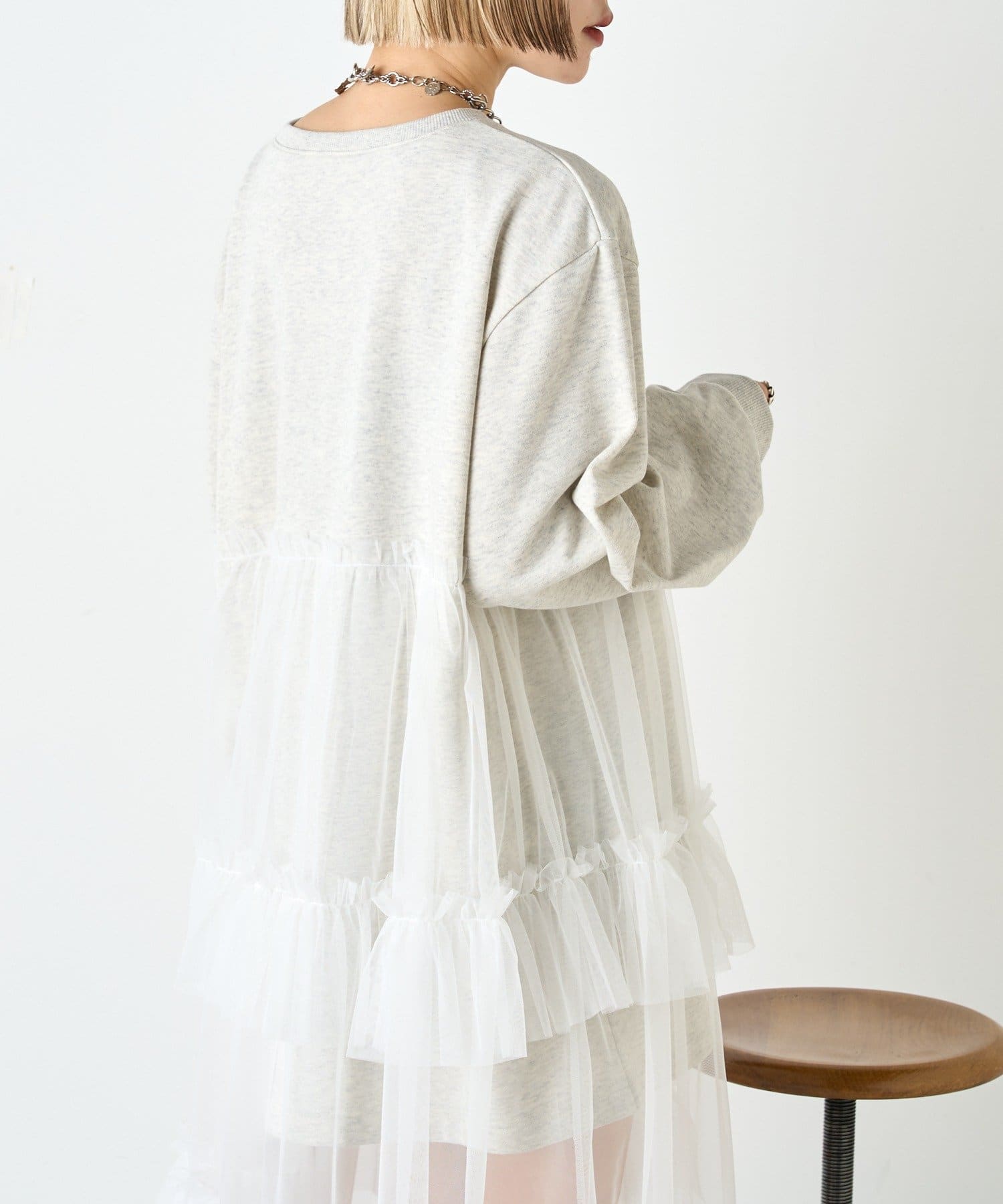 ・スウェットの上からチュールをドッキングしたワンピース