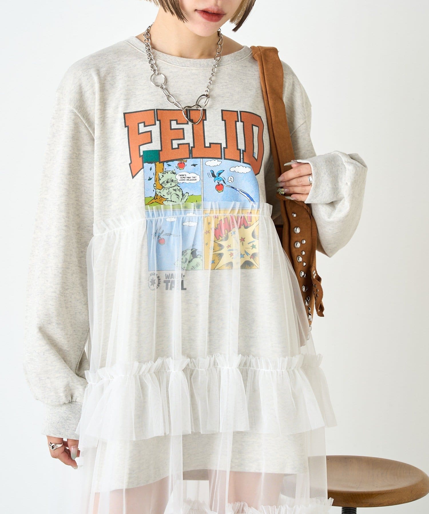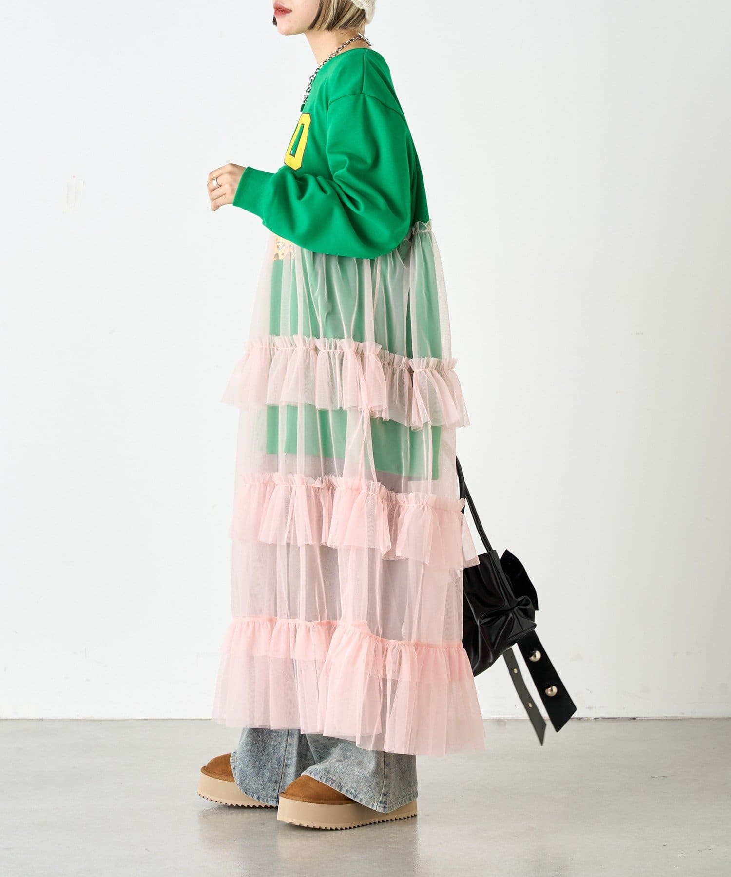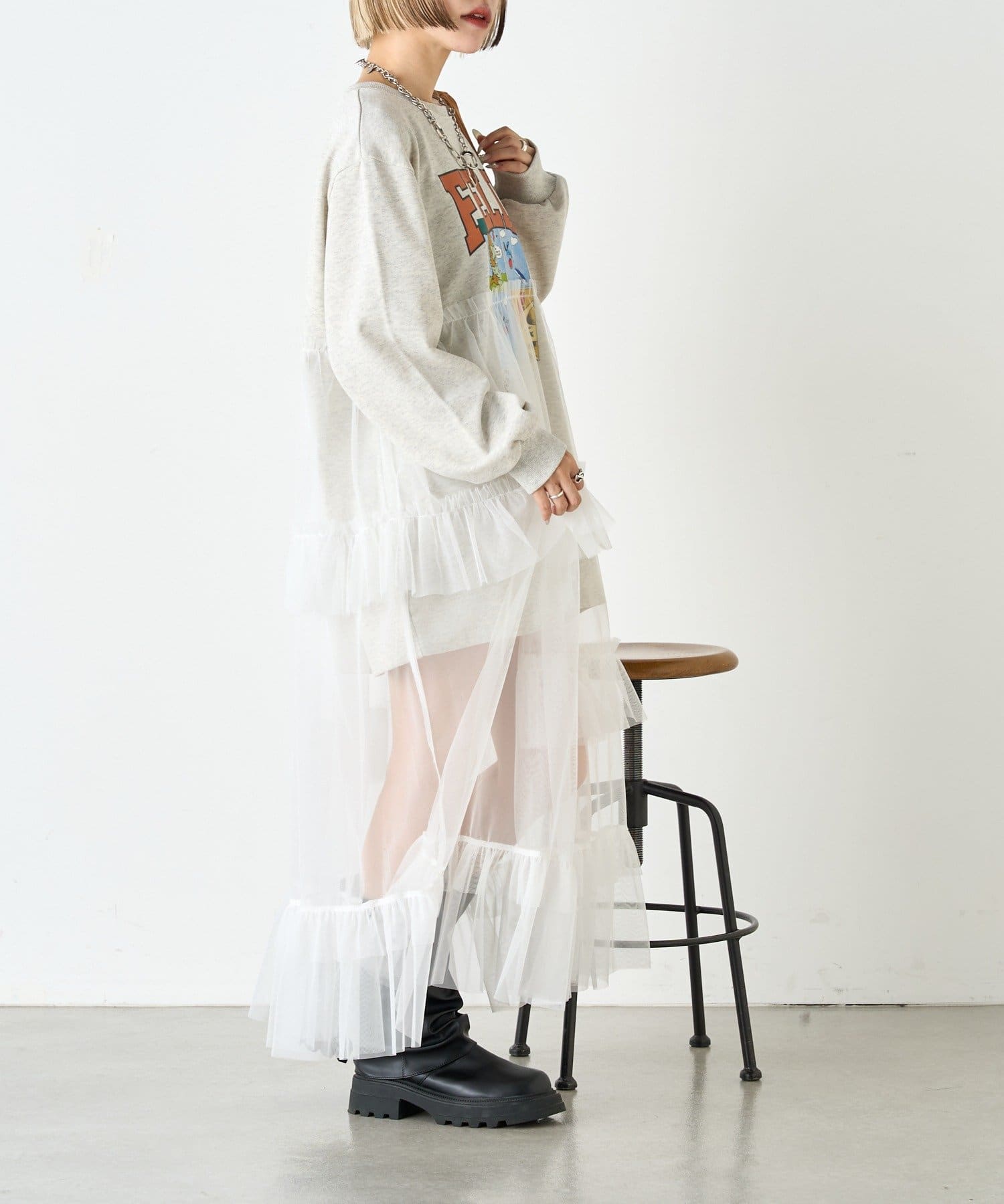 ・スウェットの上からチュールをドッキングしたワンピース