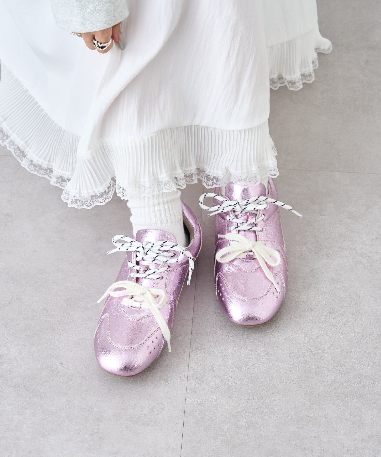 レースアップフラットスニーカー