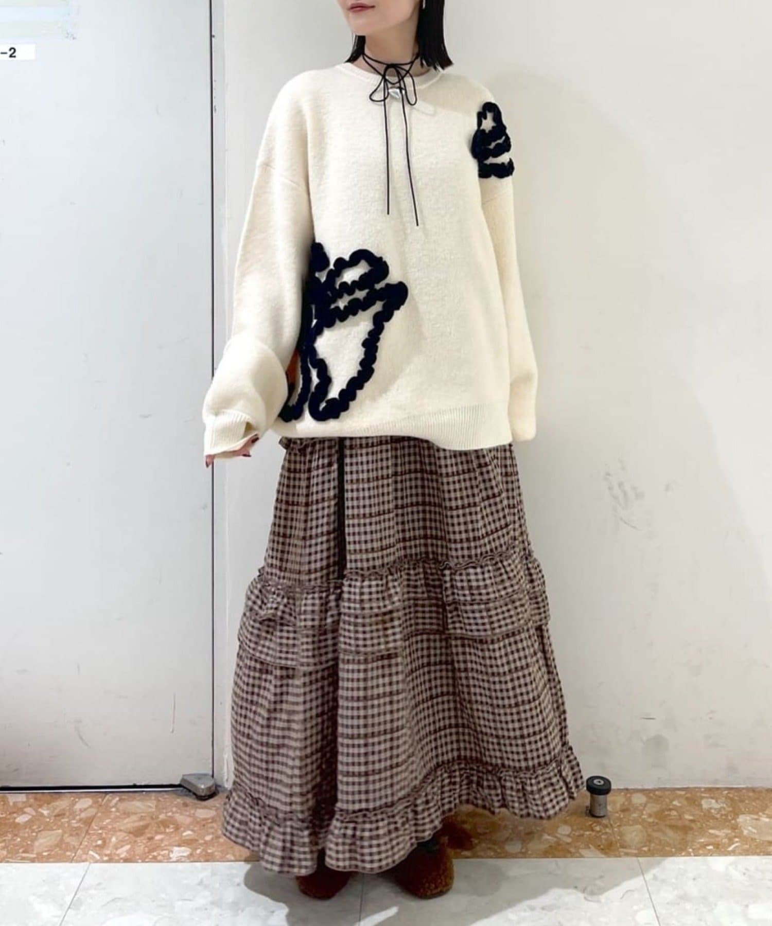 ・フリルのラインで作られたフラワーモチーフがかわいいニット♡