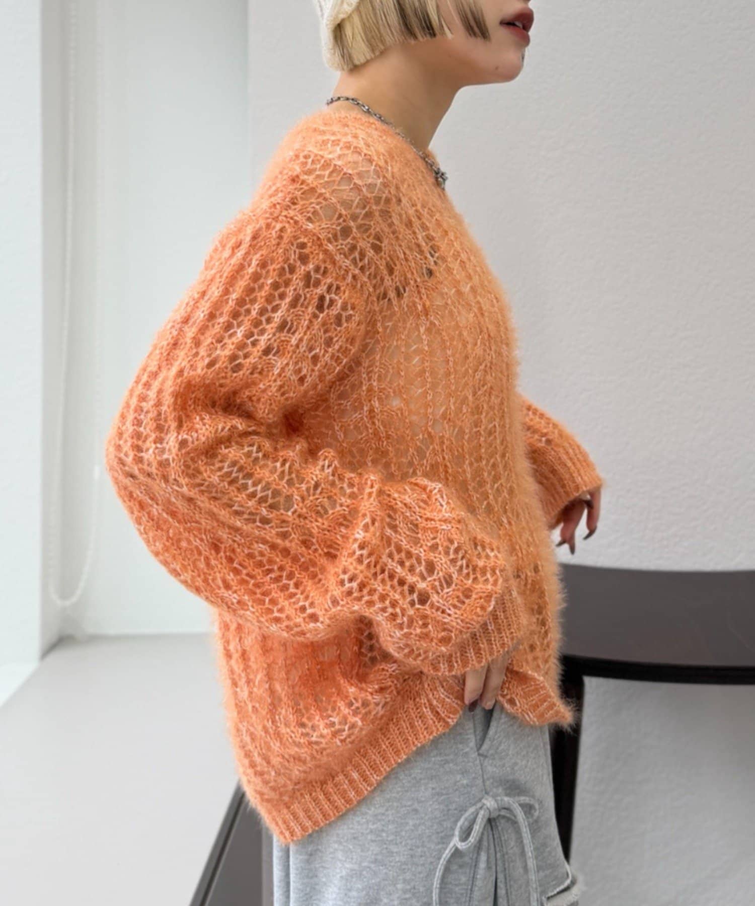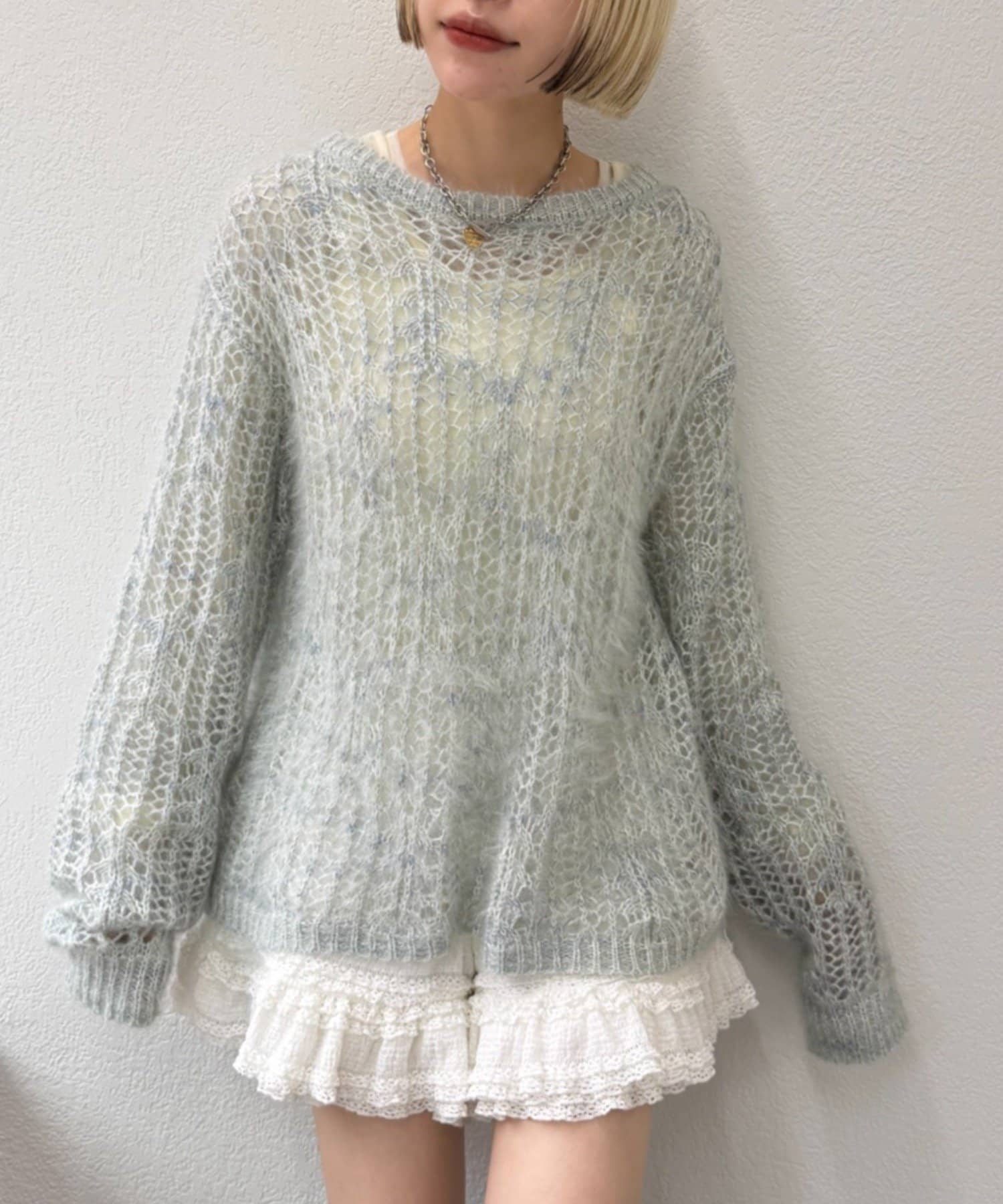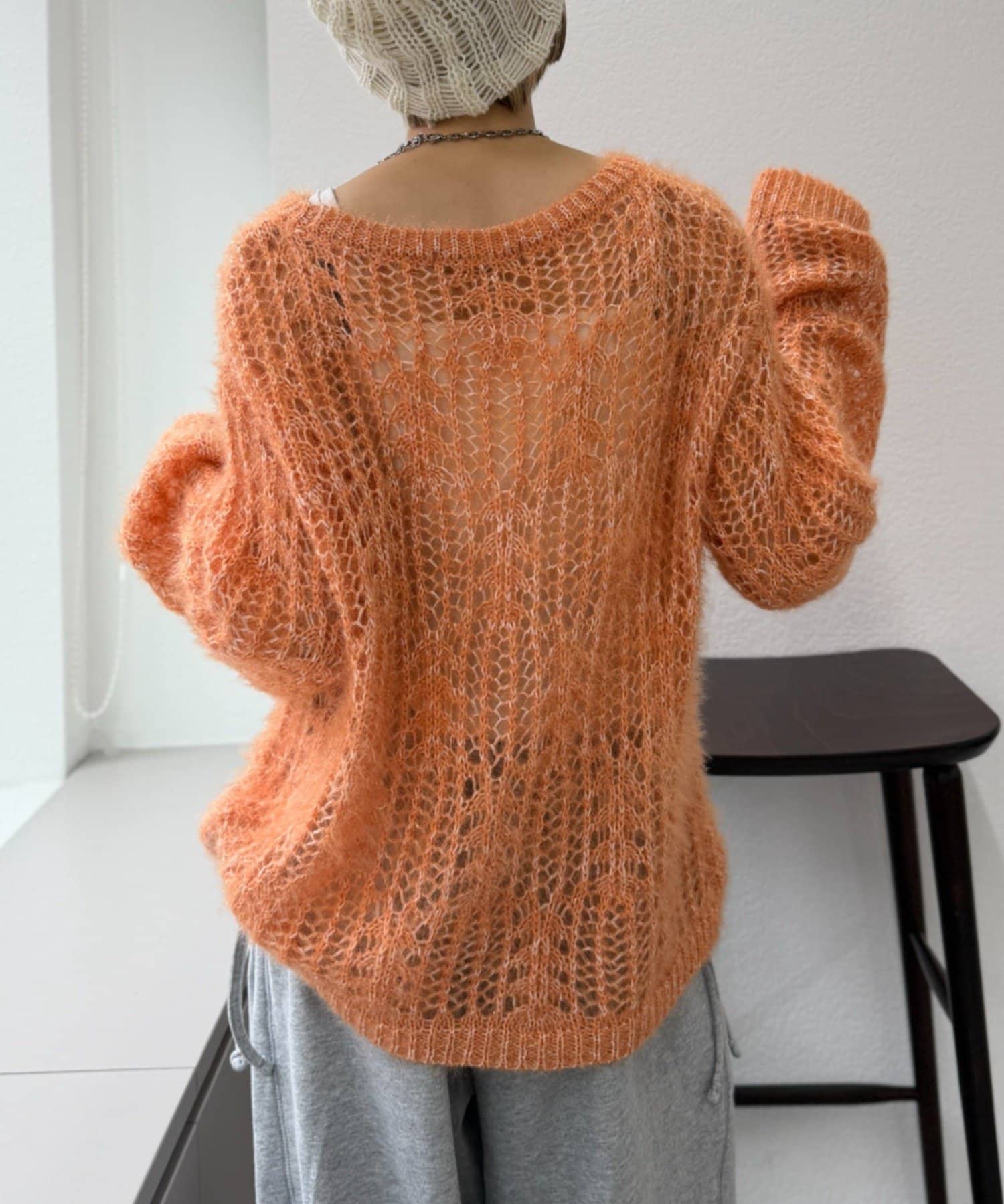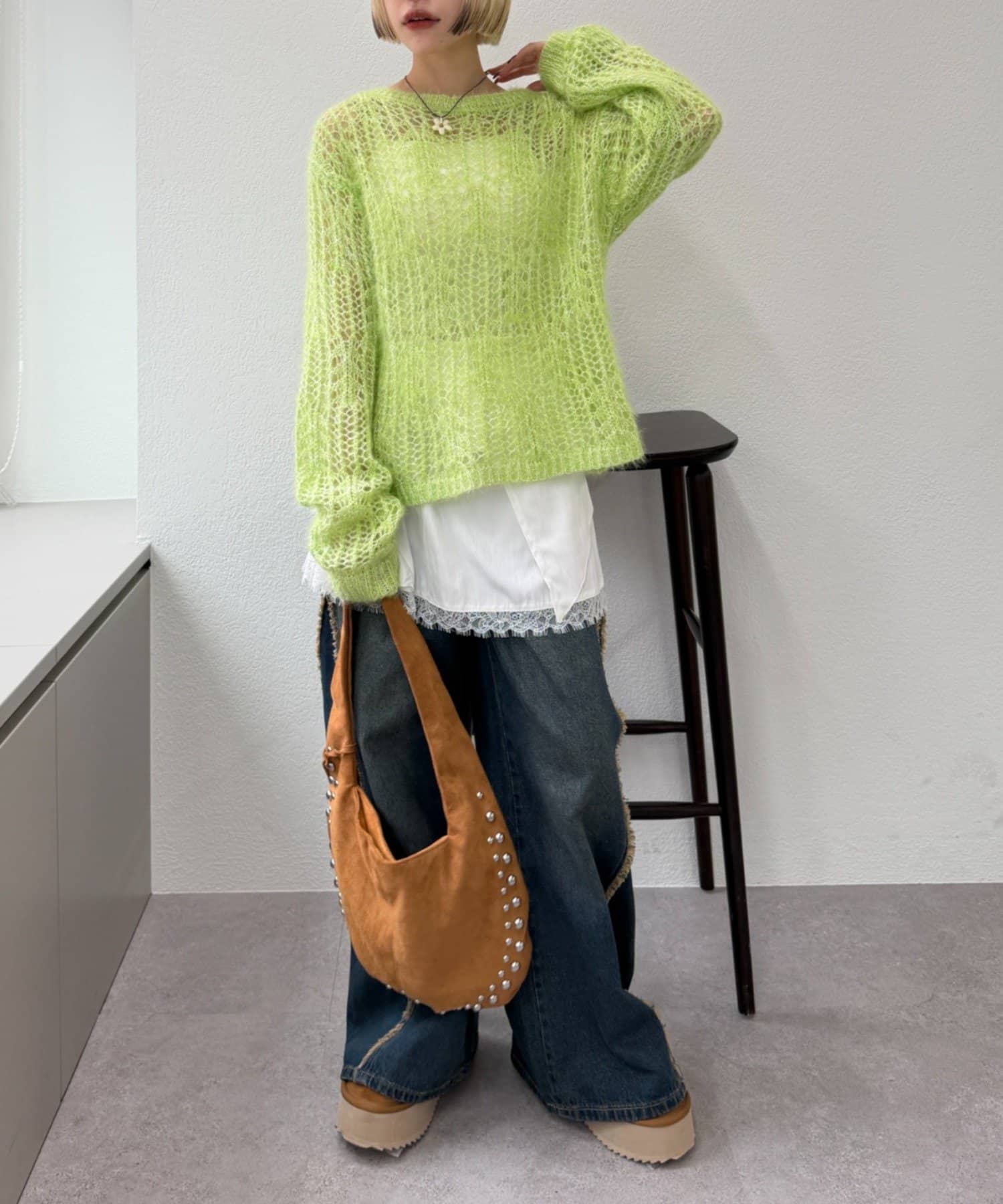 ・透け感のある大きめに編まれたざっくり感が可愛いニット
