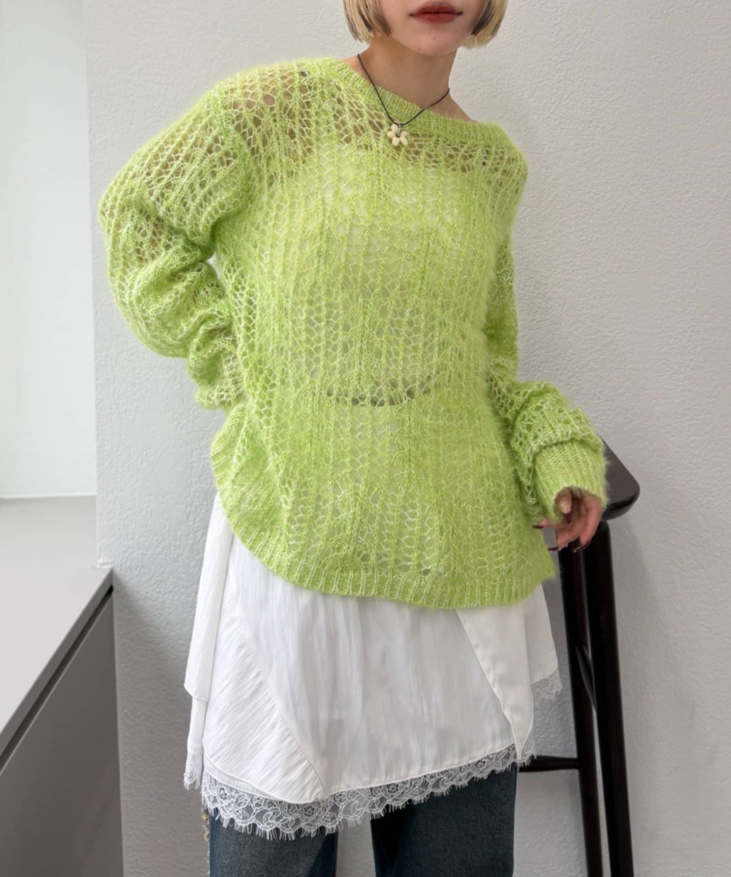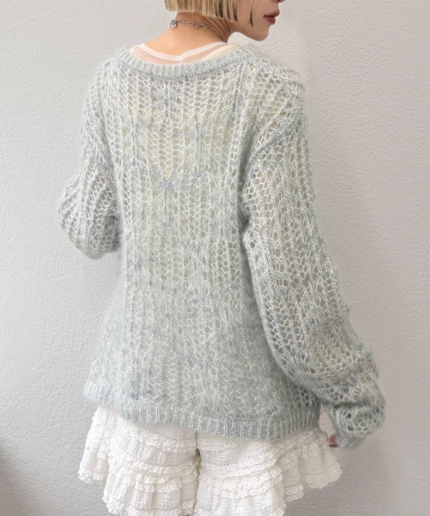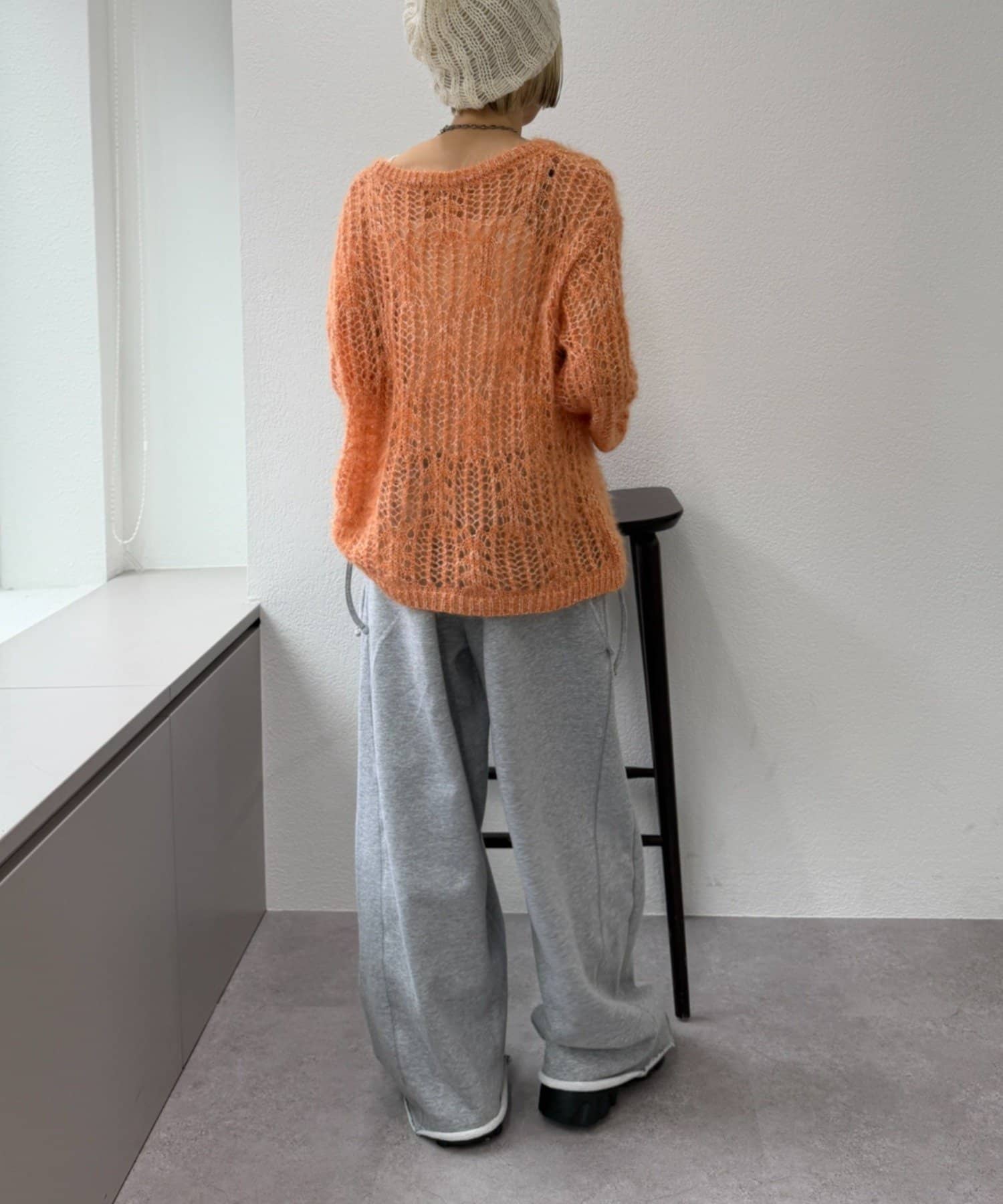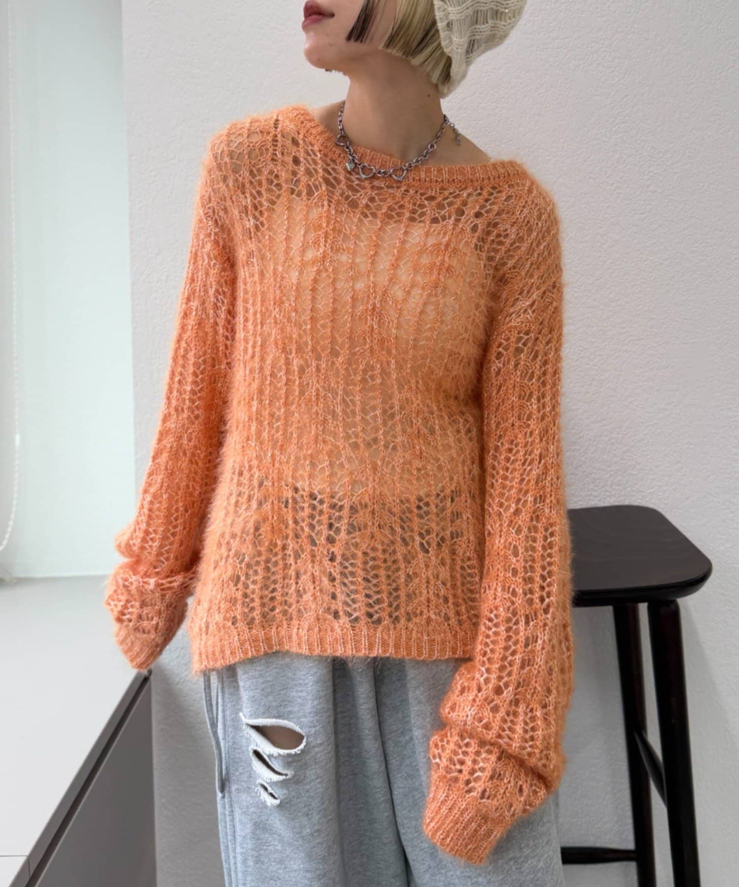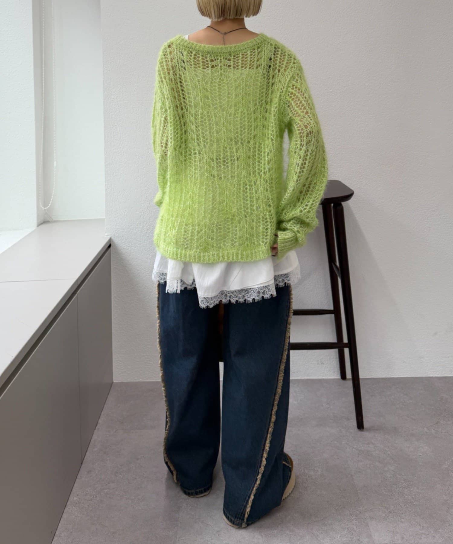 ・透け感のある大きめに編まれたざっくり感が可愛いニット