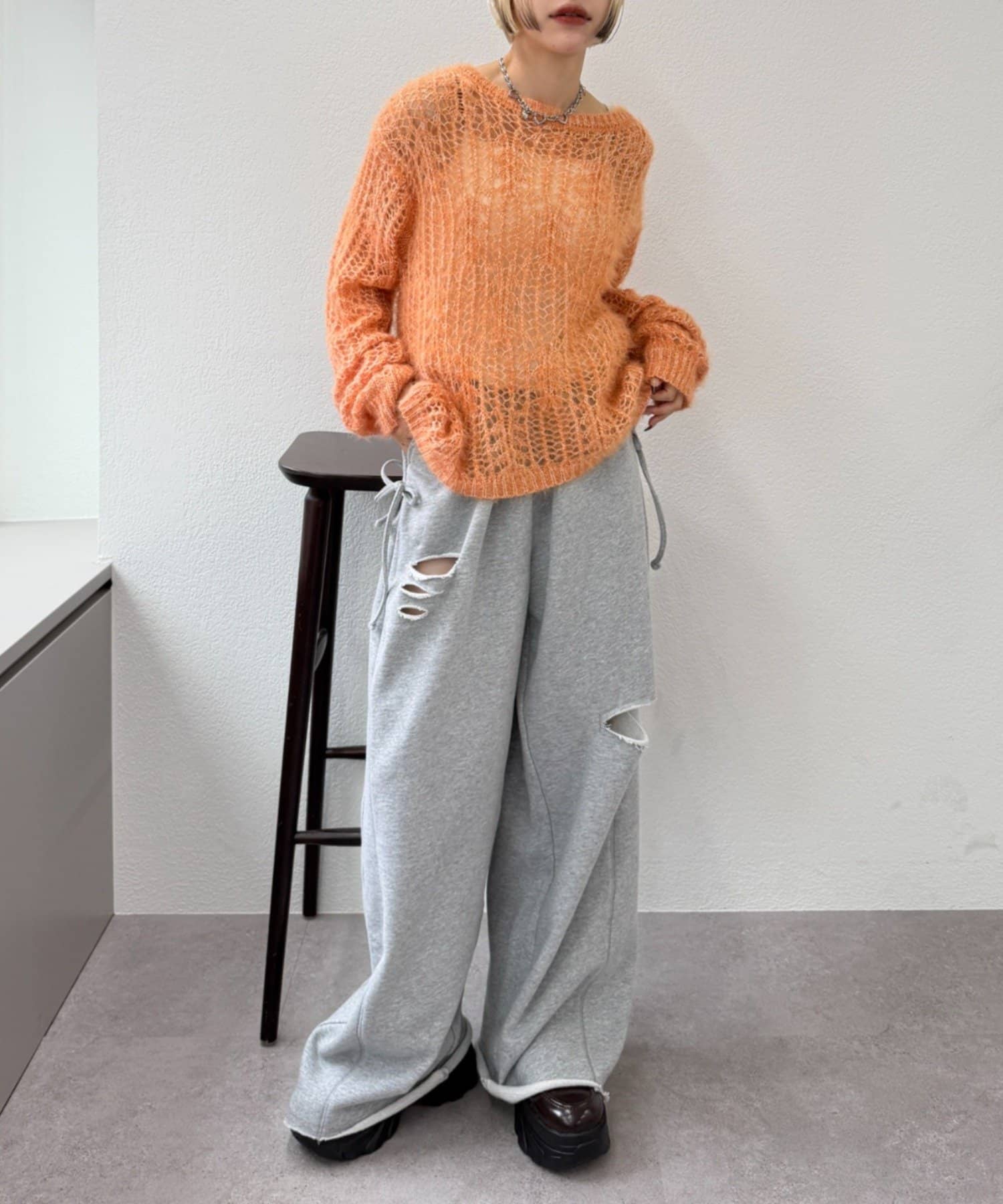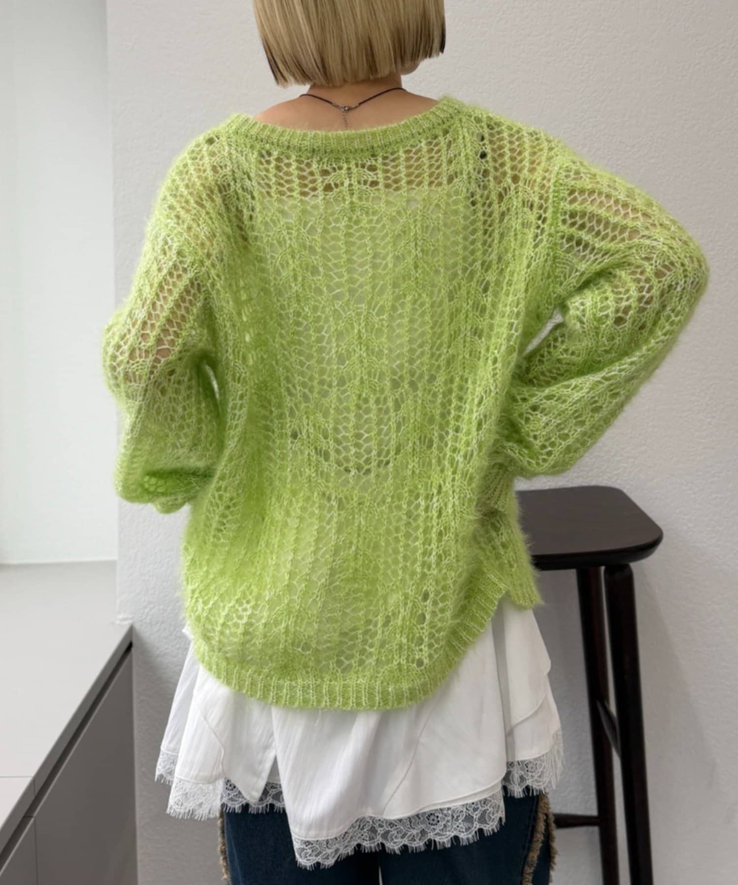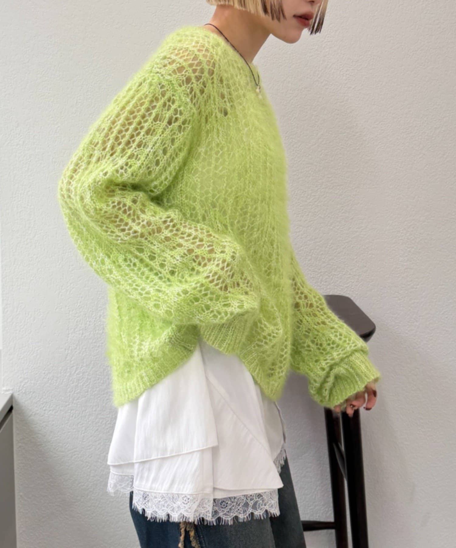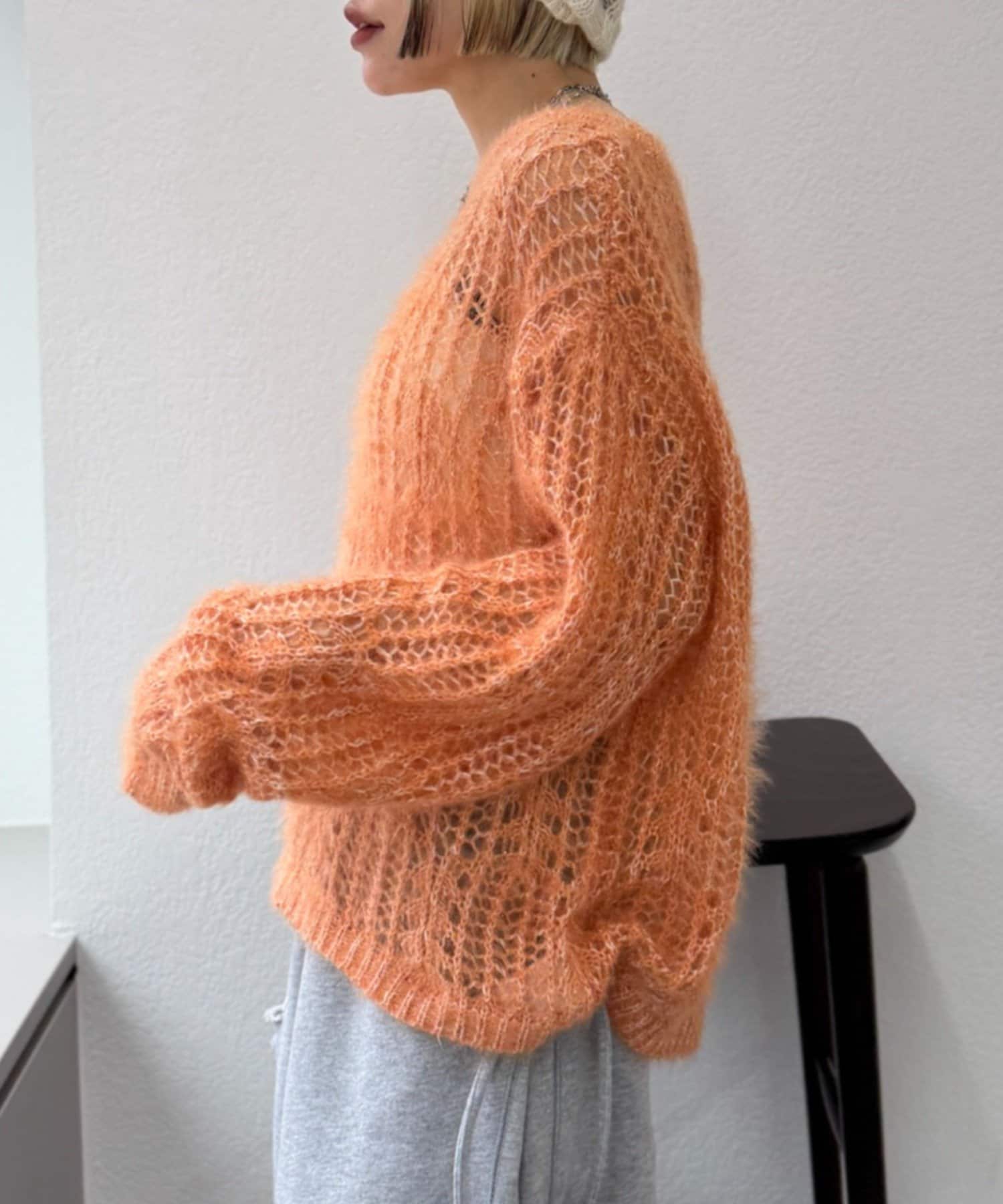 ・透け感のある大きめに編まれたざっくり感が可愛いニット