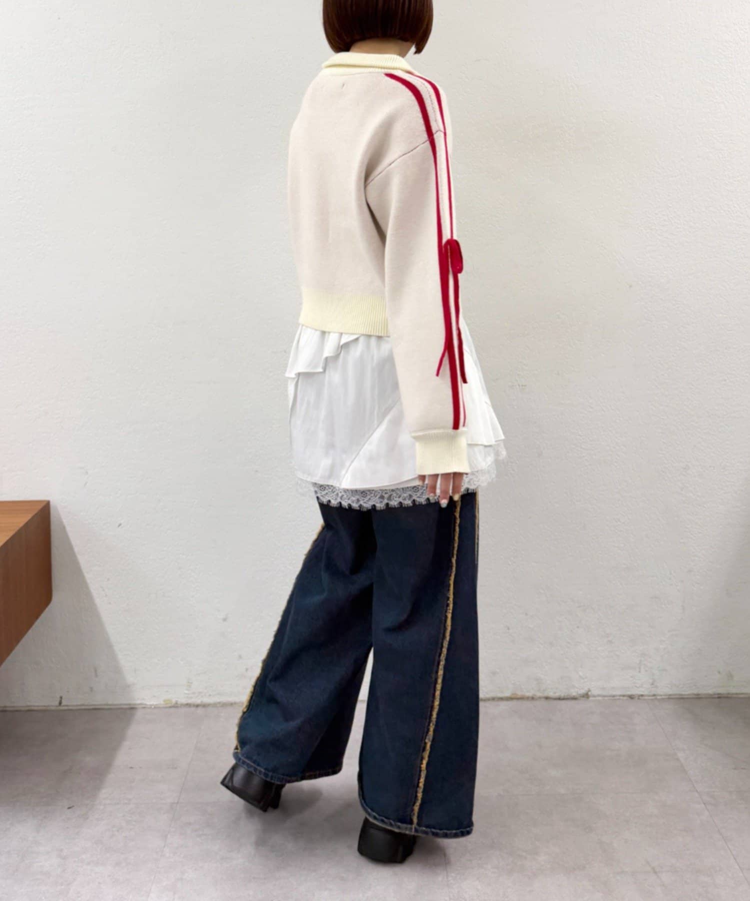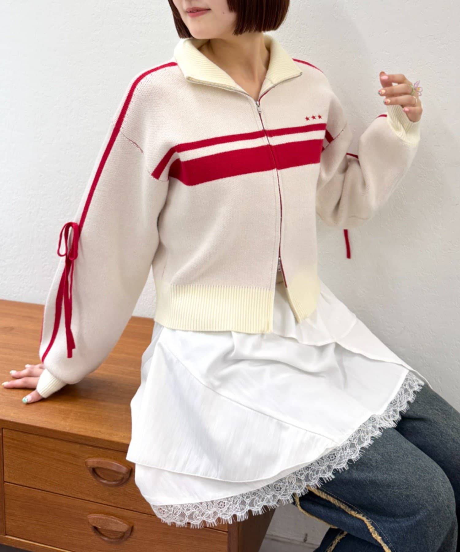TOP > w closet > レディース > ジャケット/アウター > その他ジャケット/ブルゾン > ラインニットZIPブルゾン