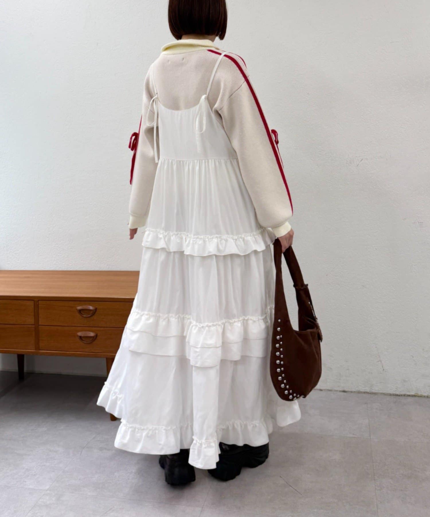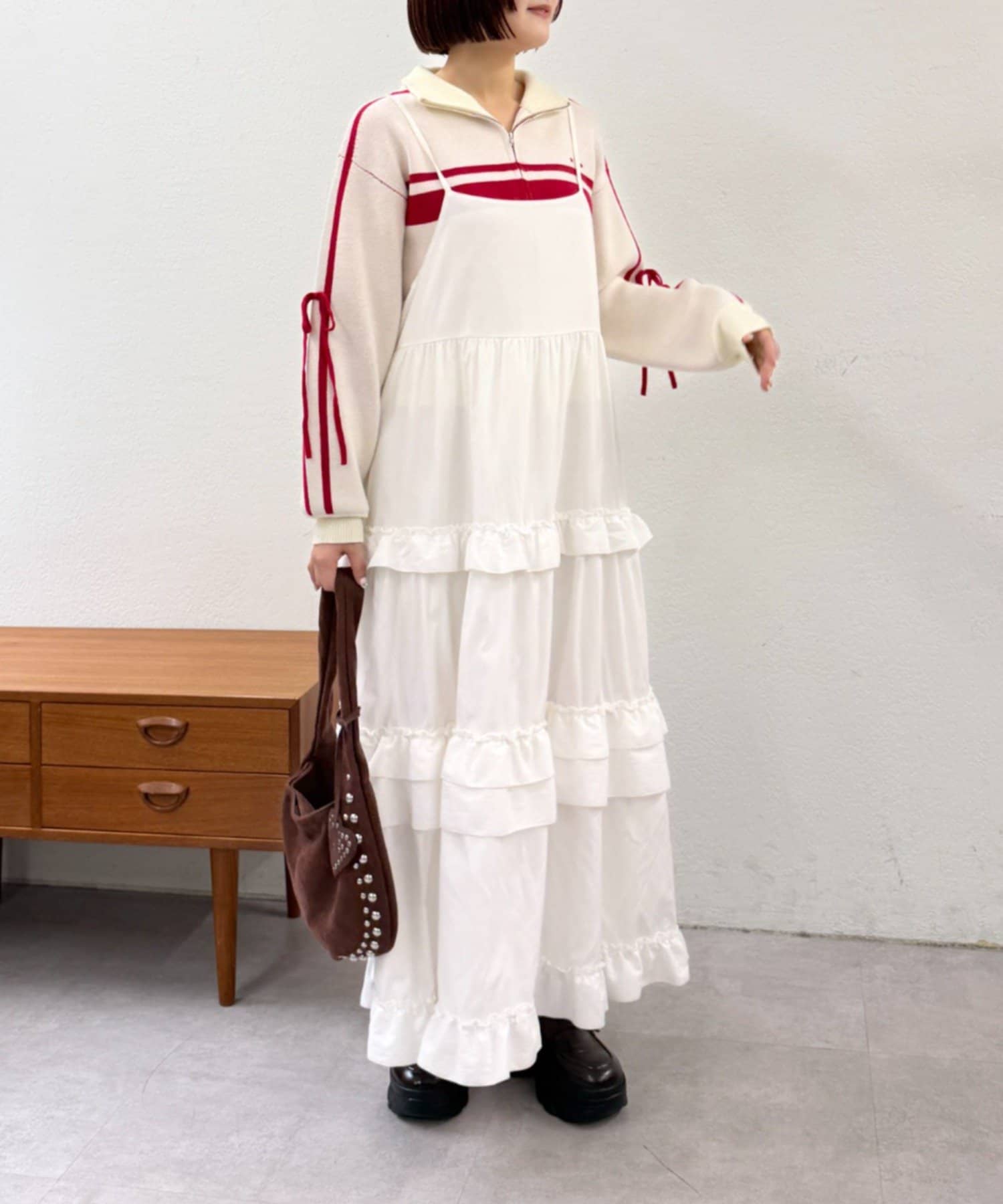 ・程よい厚さのニットで着ぶくれしないので上からキャミワンピを着ても◎