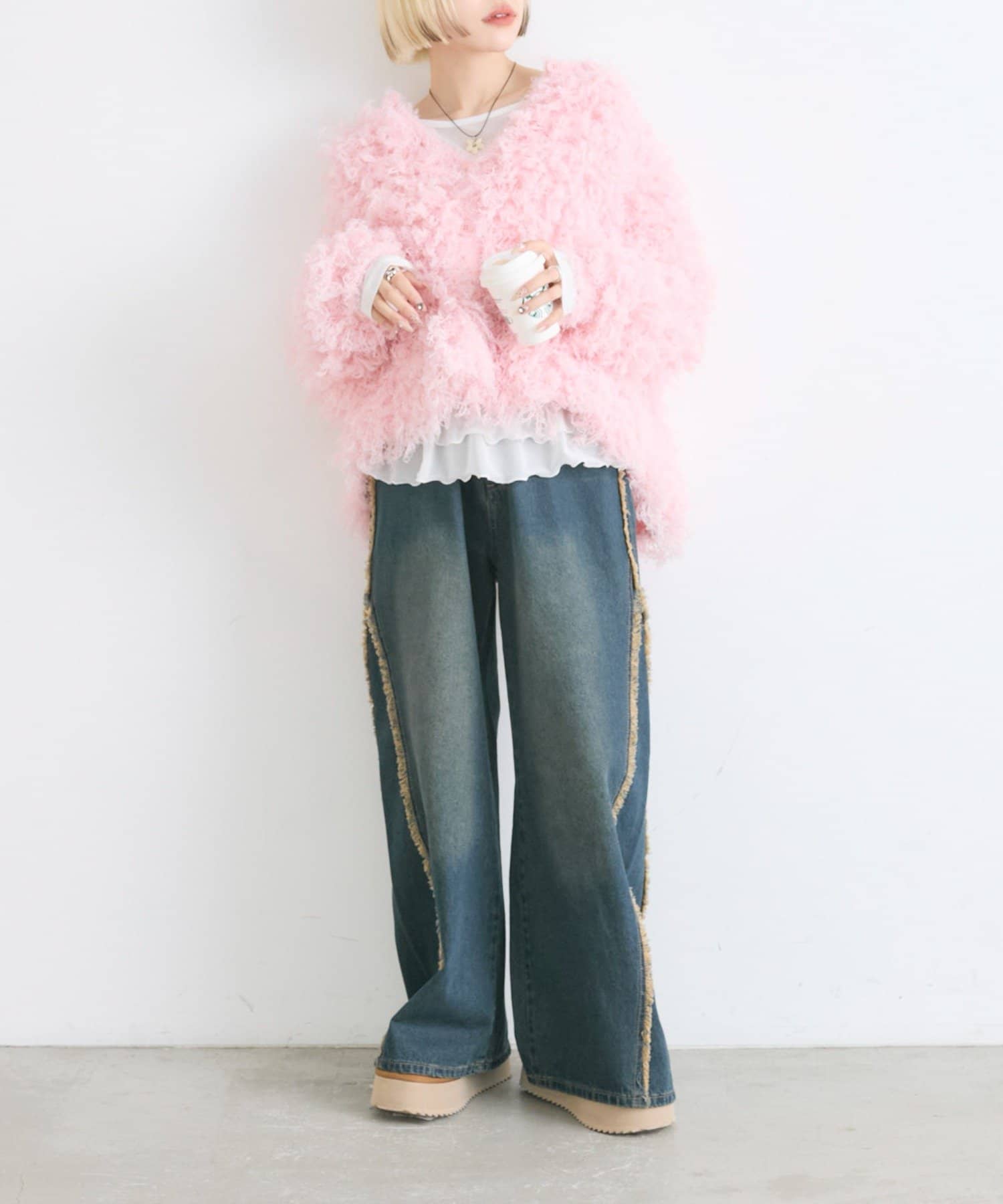 w closet(ダブルクローゼット) モシャモシャニットアウター