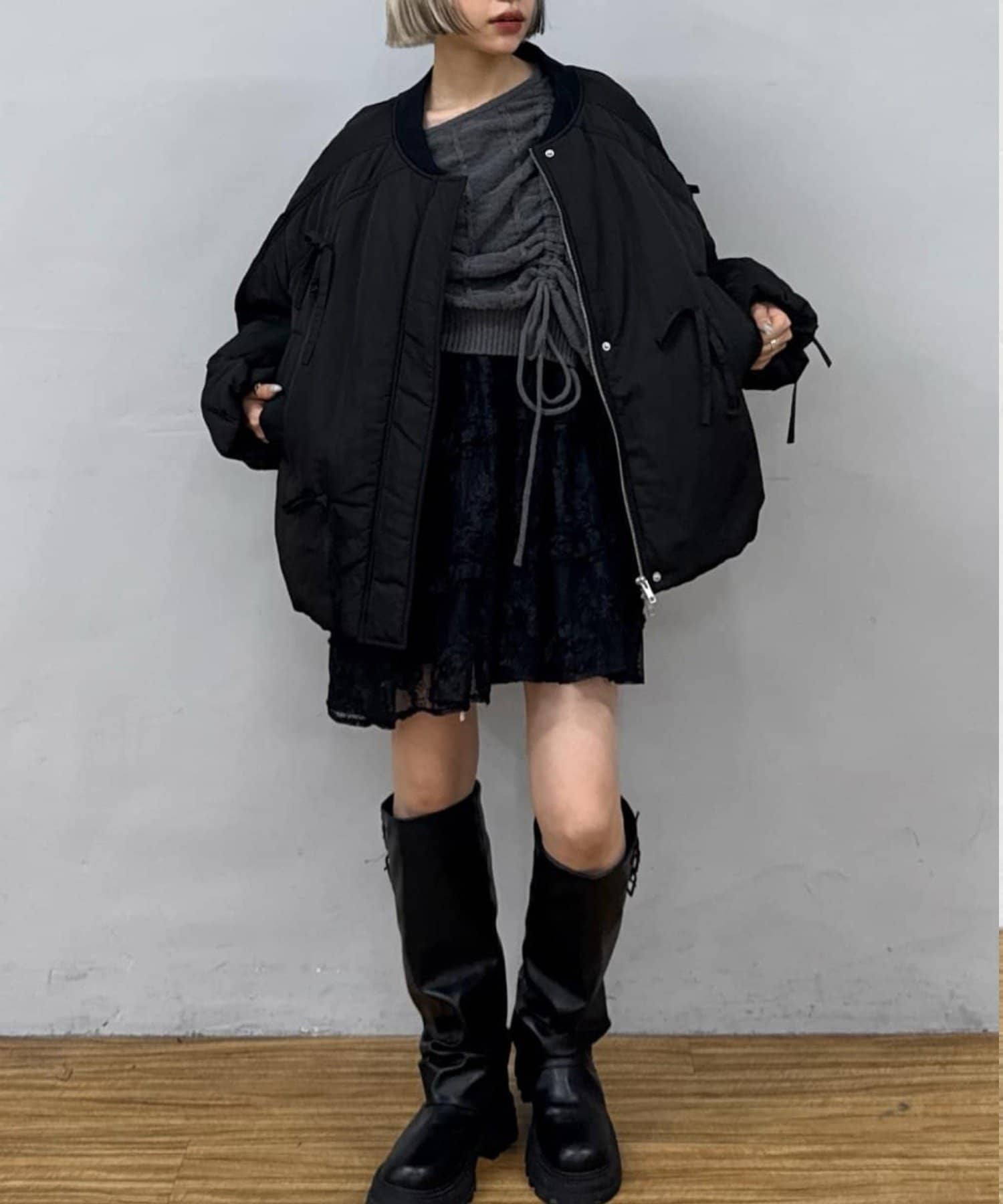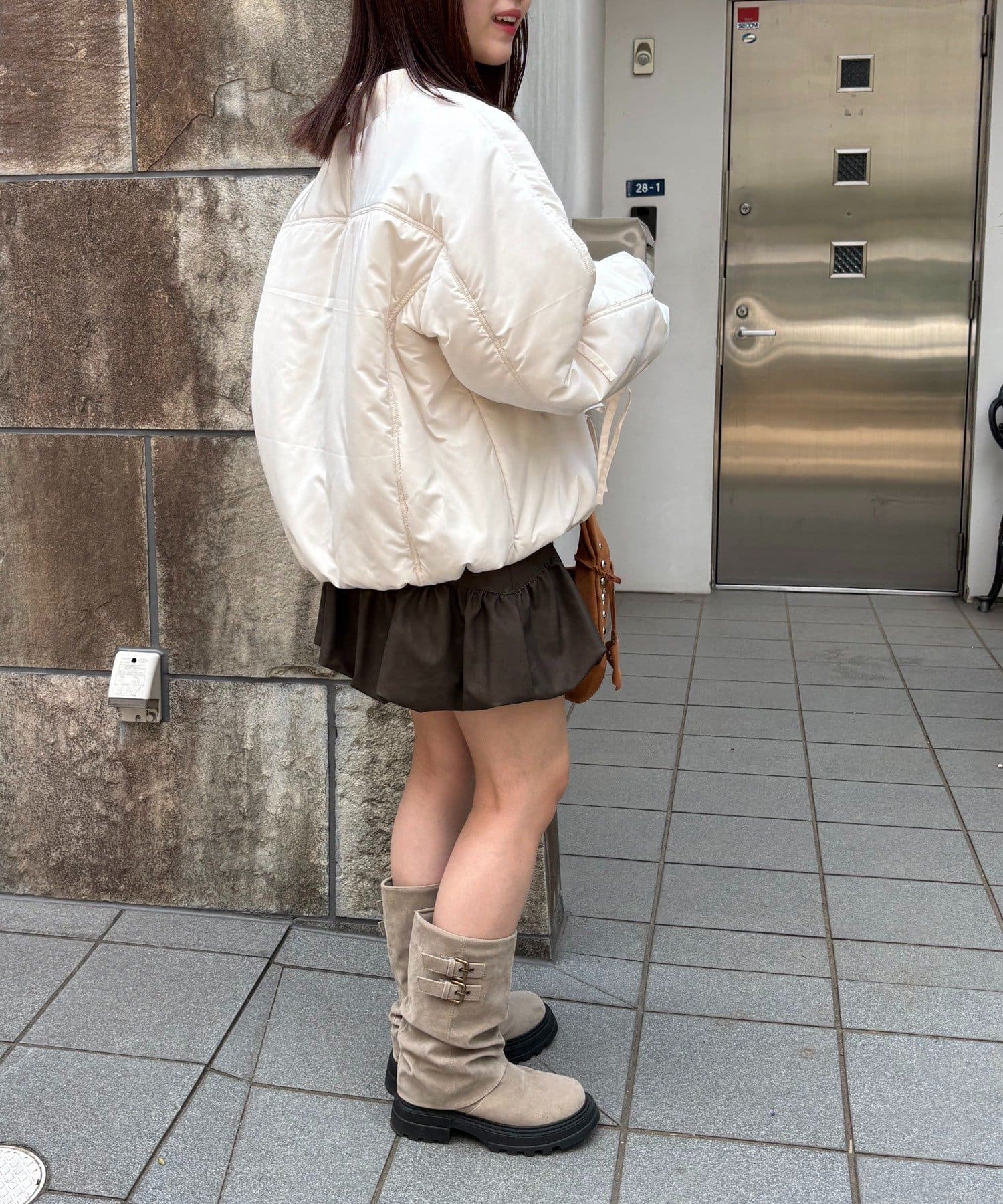 ・今っぽいスタイリングはミニボトムとロングブーツがおすすめ♡