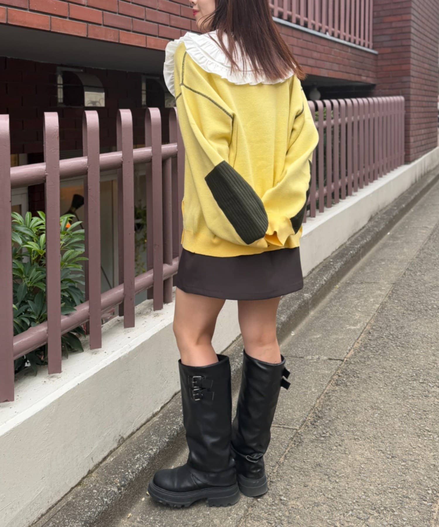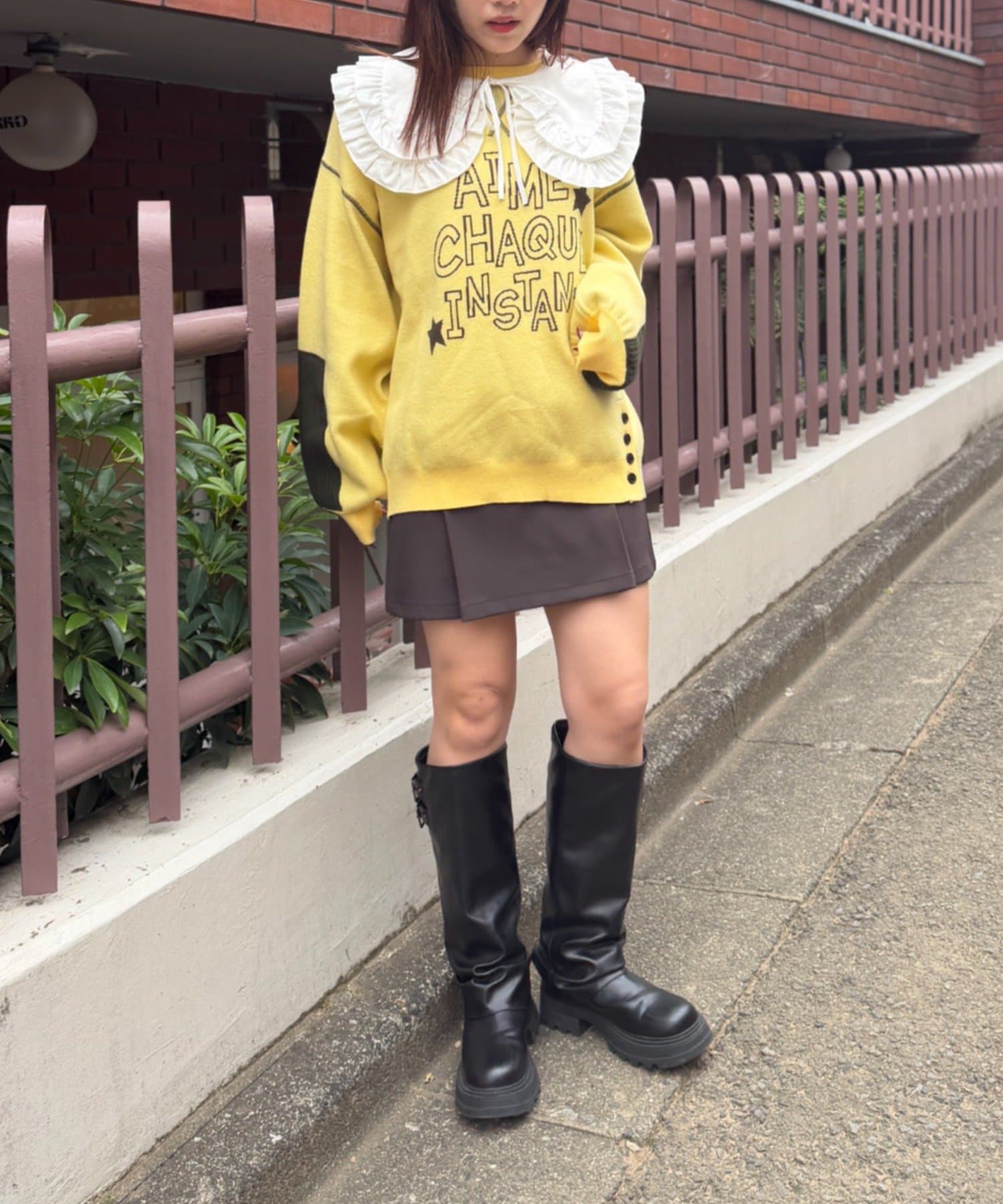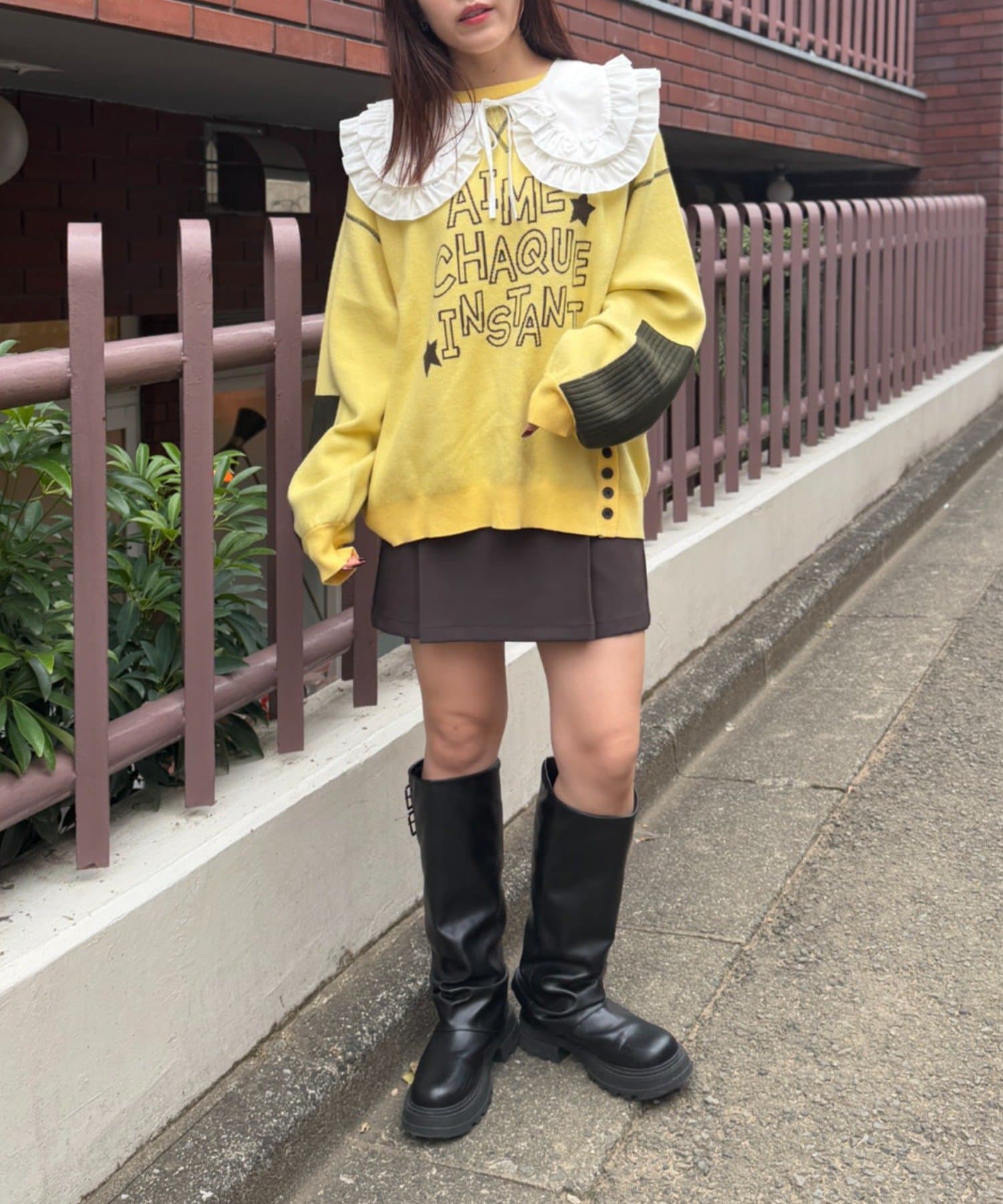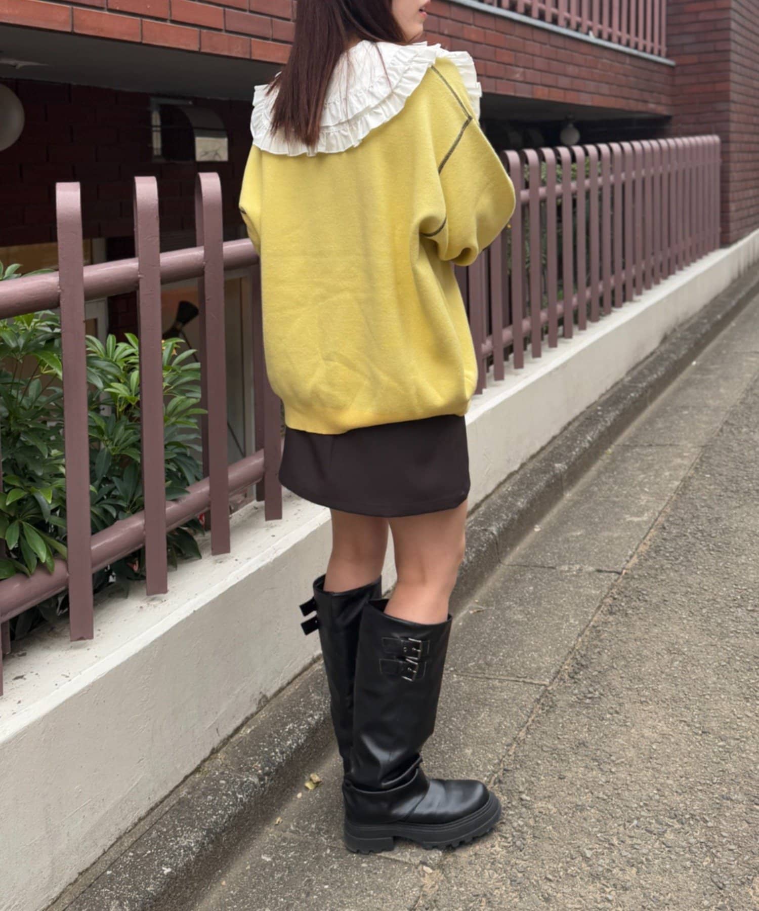 ・ふわっとしたショート丈ニットと合わせてバランスのいいコーデに◎