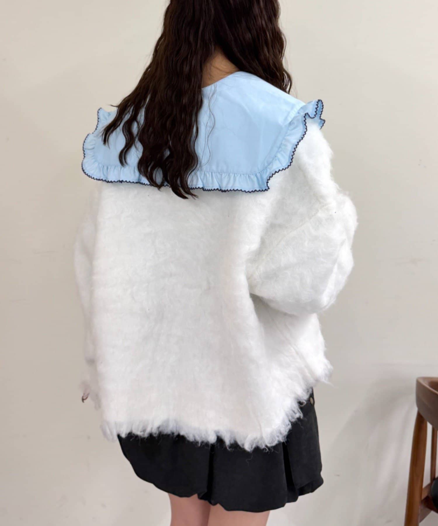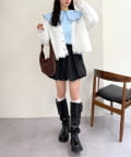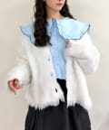 ・大きめの襟を生かしたカーディガンとの合わせがオススメ!