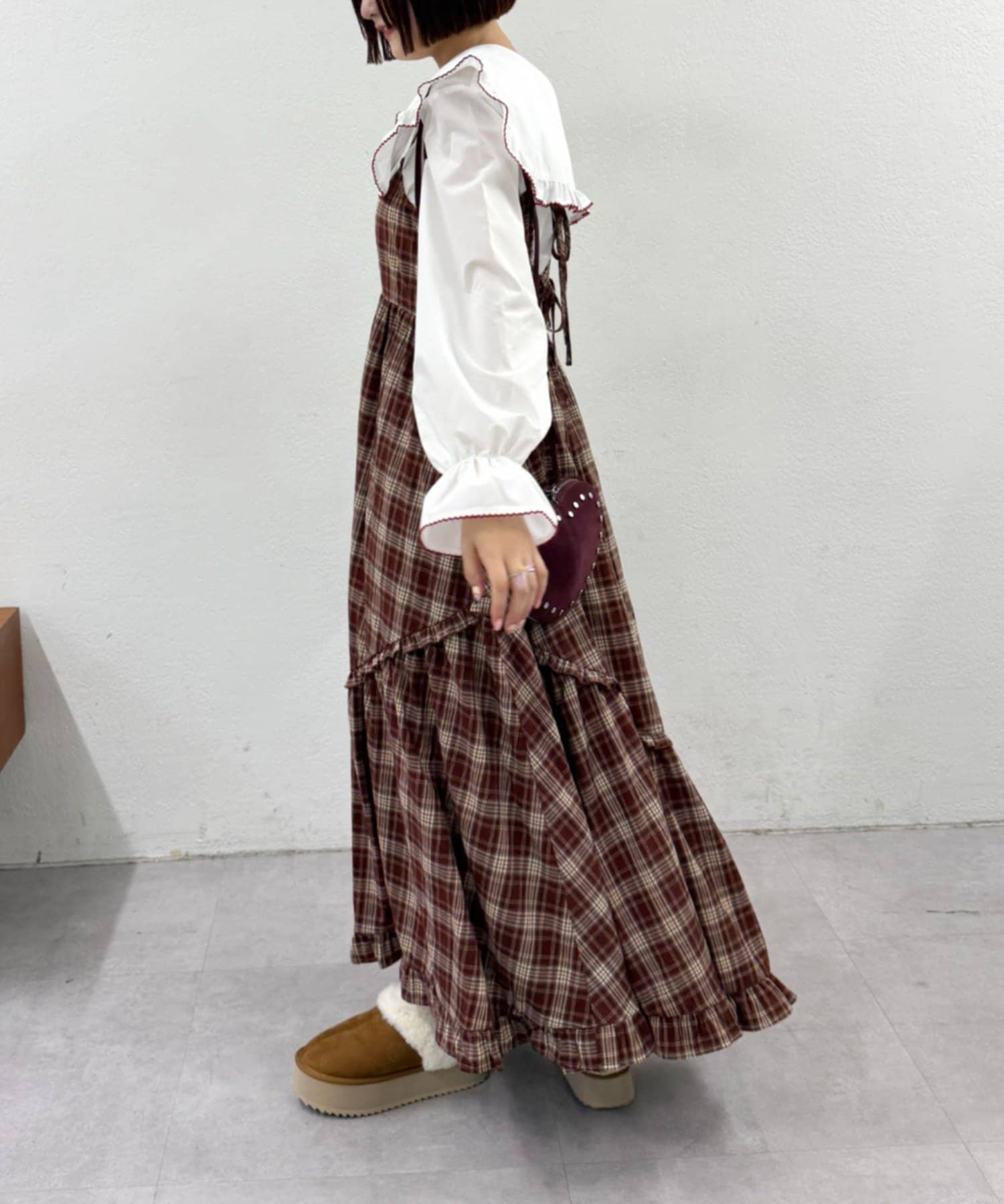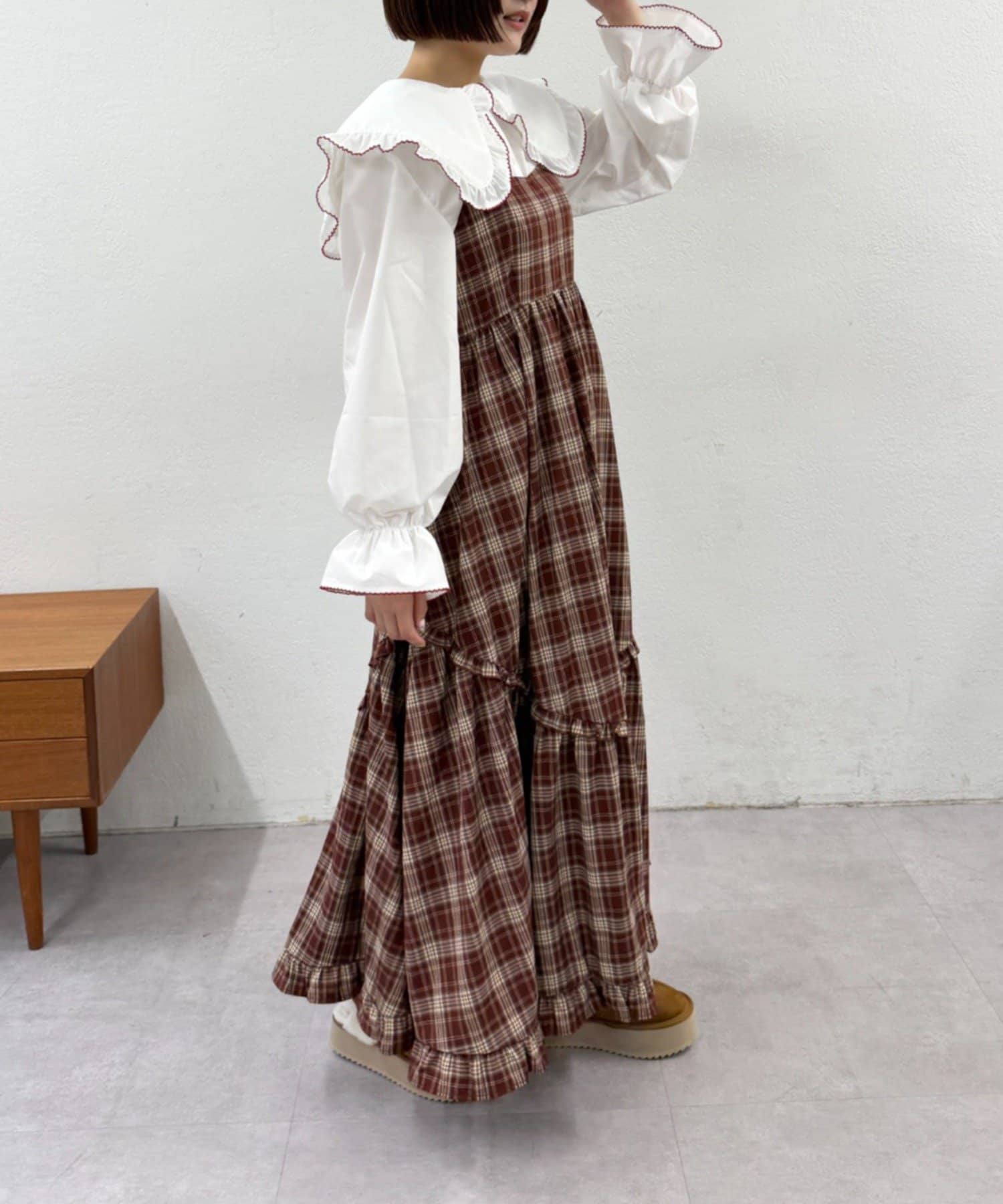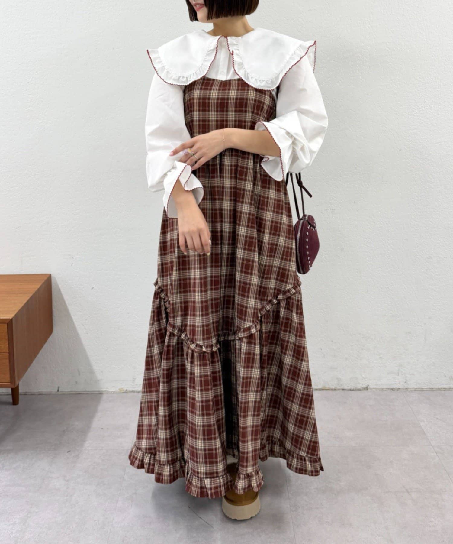 ・キャミワンピースを重ねて、クラシカルな雰囲気ので秋らしい甘めコーデに♪