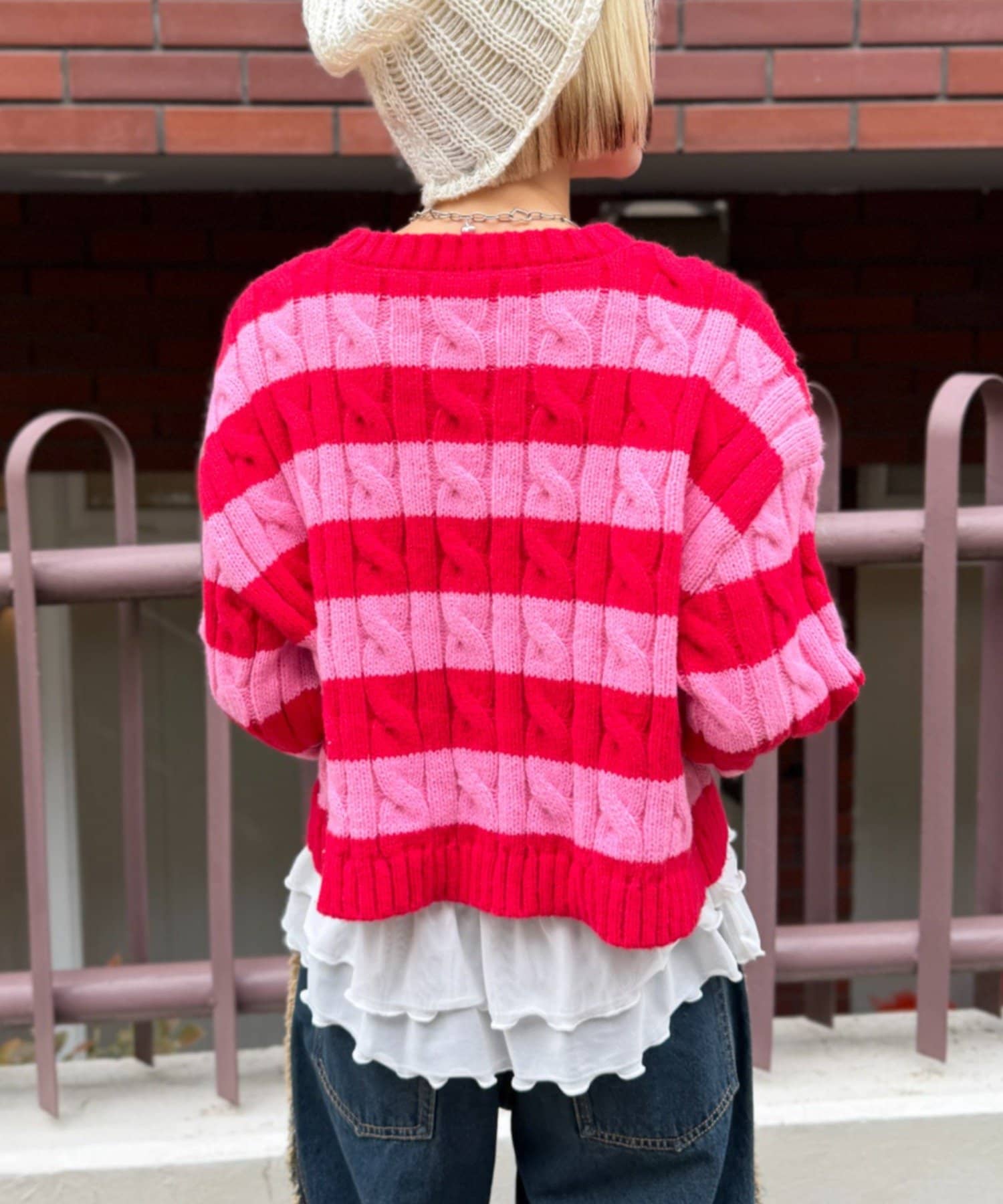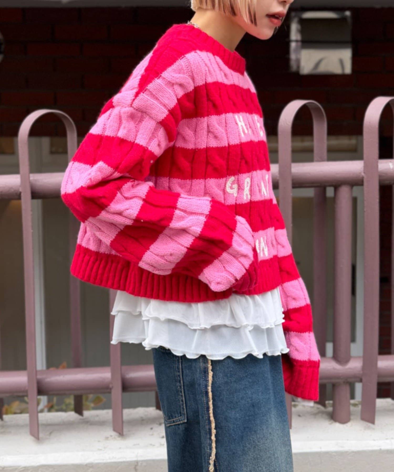 TOP > OUTLET > レディース > トップス > ニット/セーター > 【w closet】ボーダーアランニット