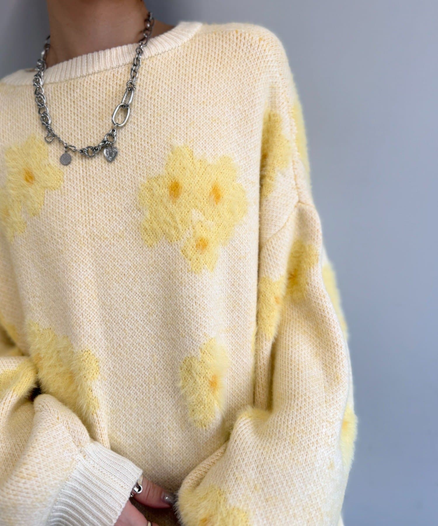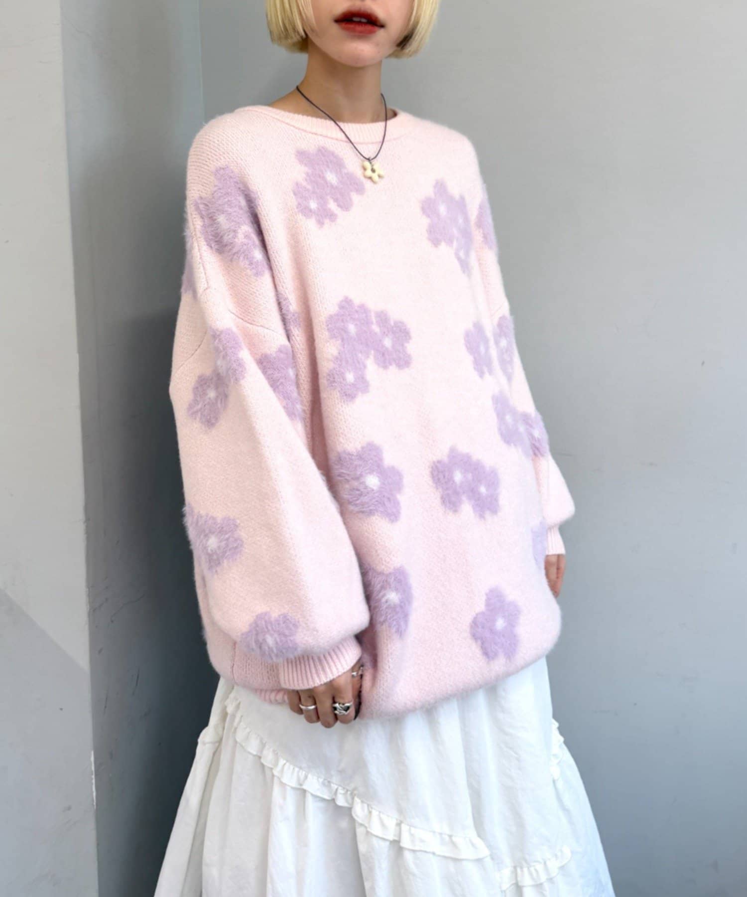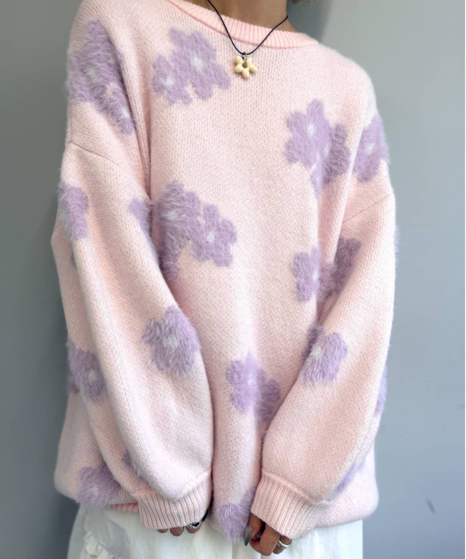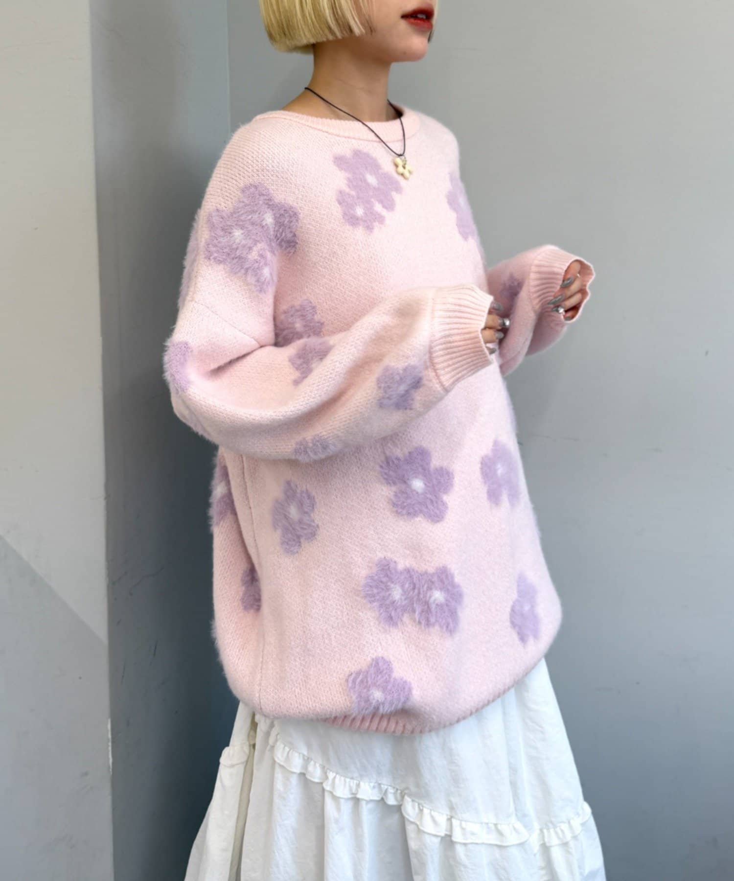 1枚で可愛いをつくる、ふわもち花柄ニット♪