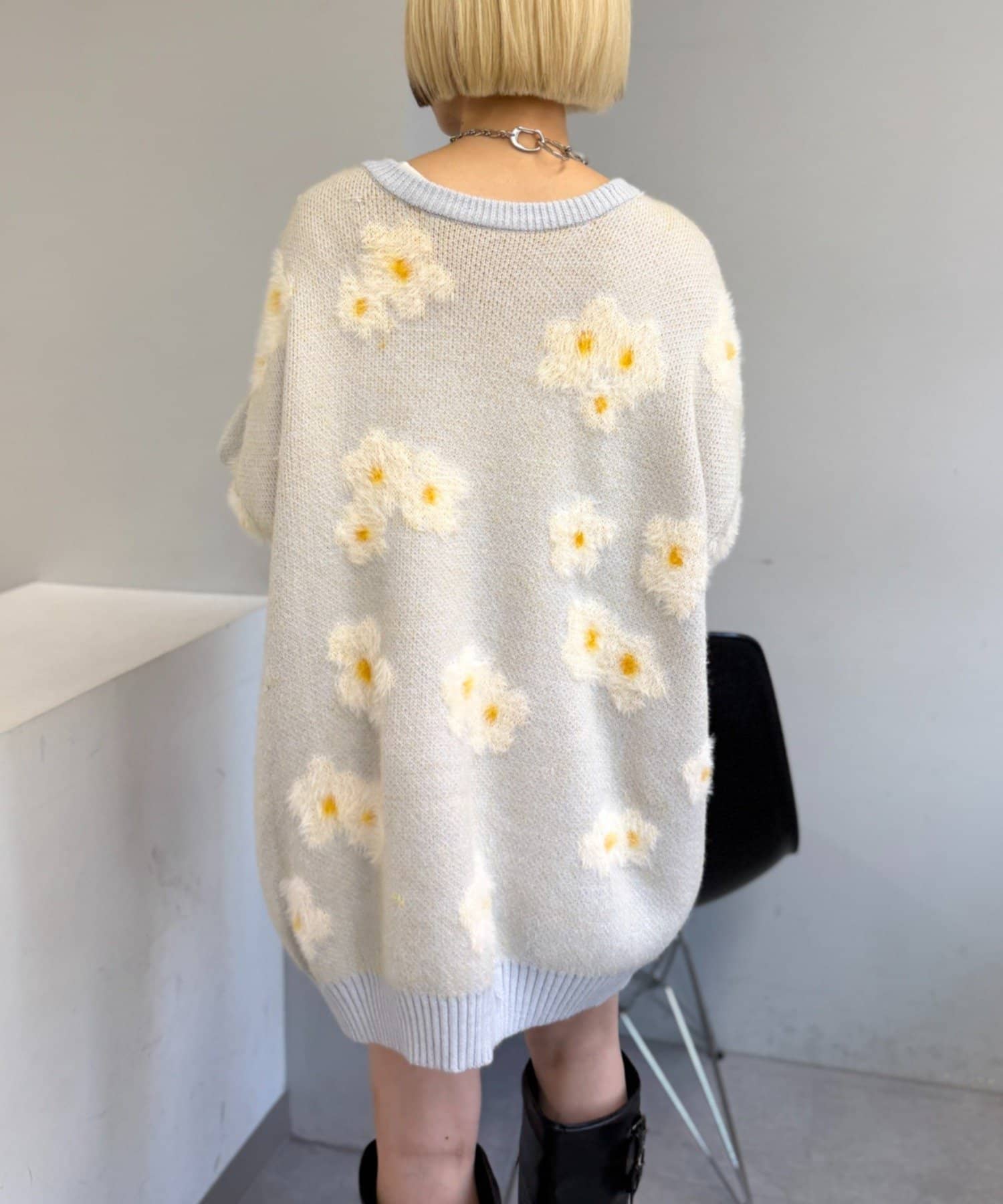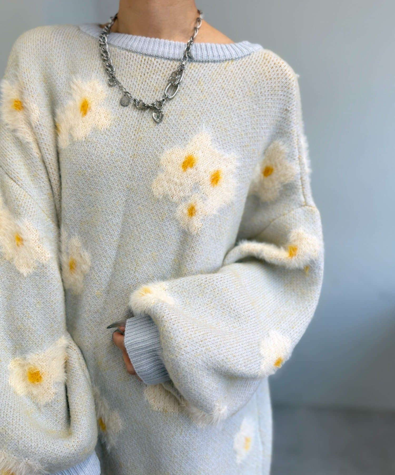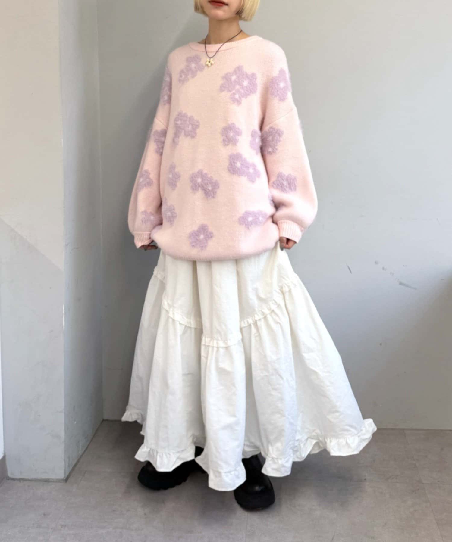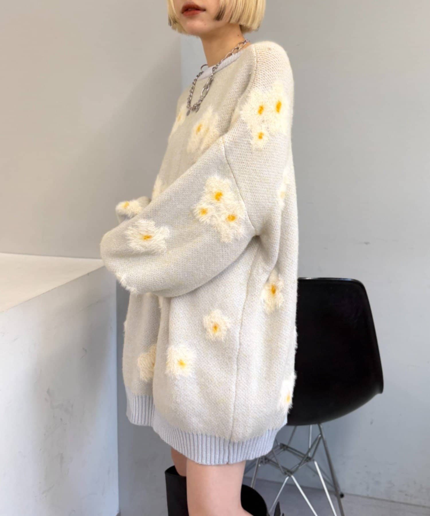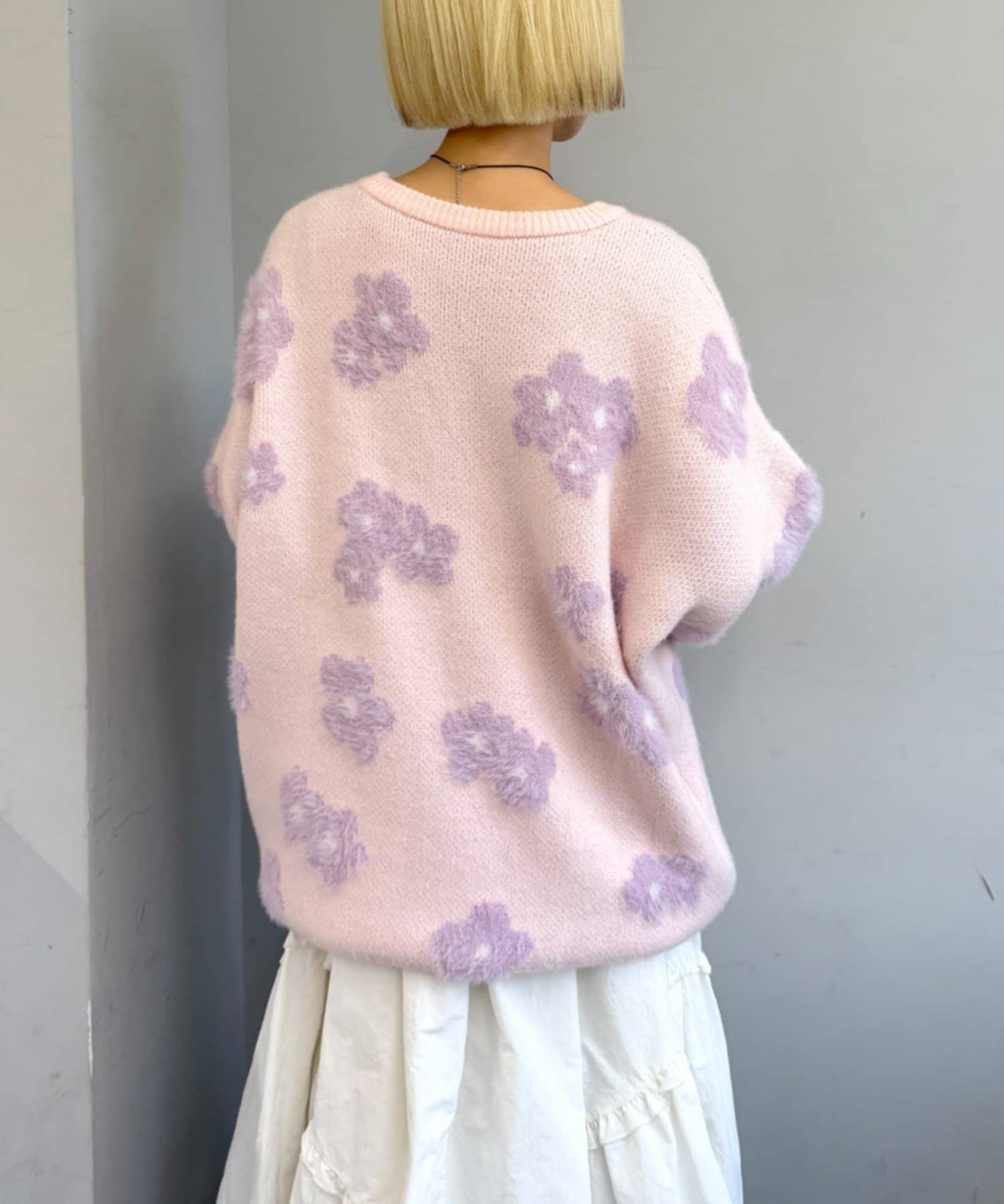 1枚で可愛いをつくる、ふわもち花柄ニット♪