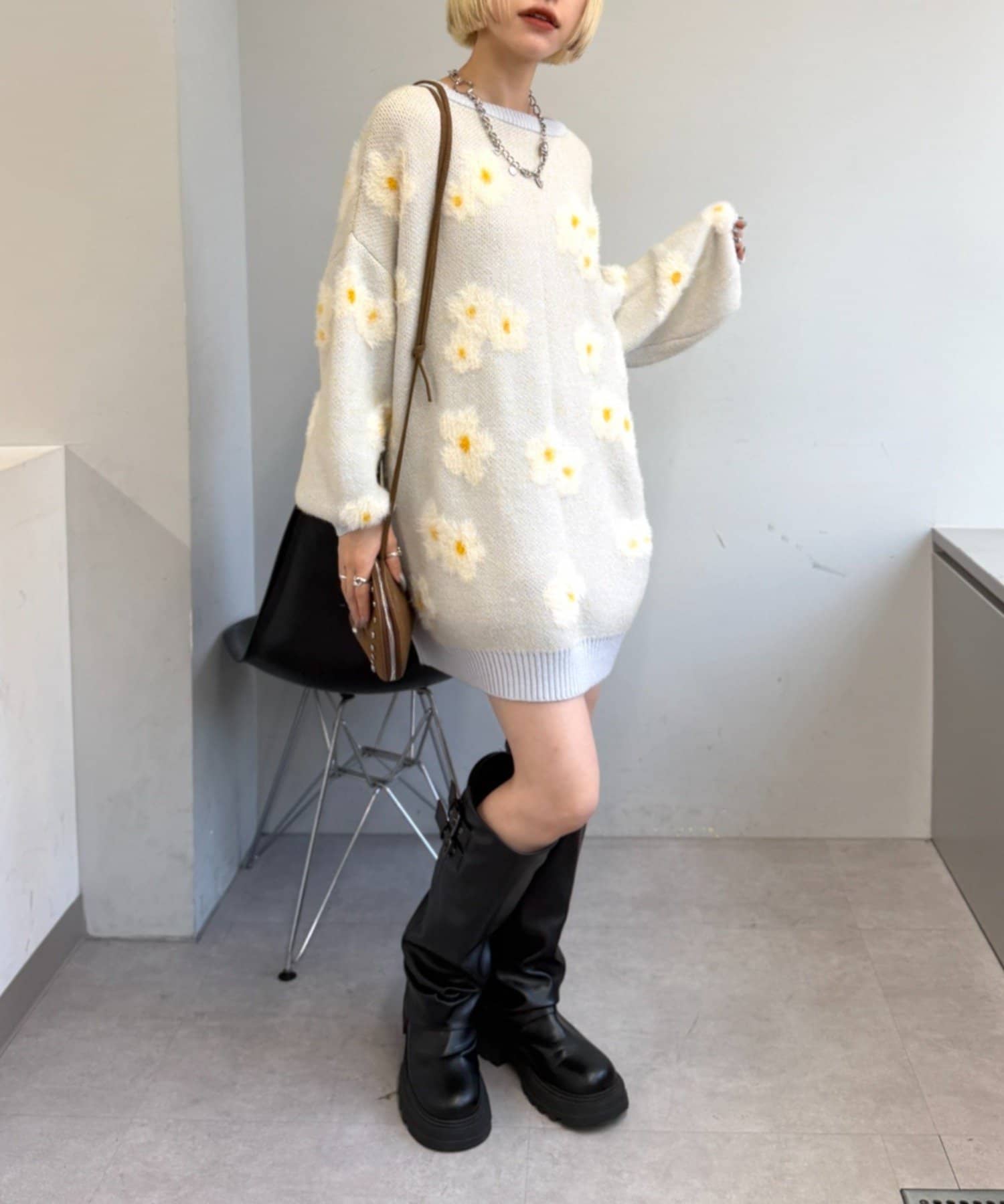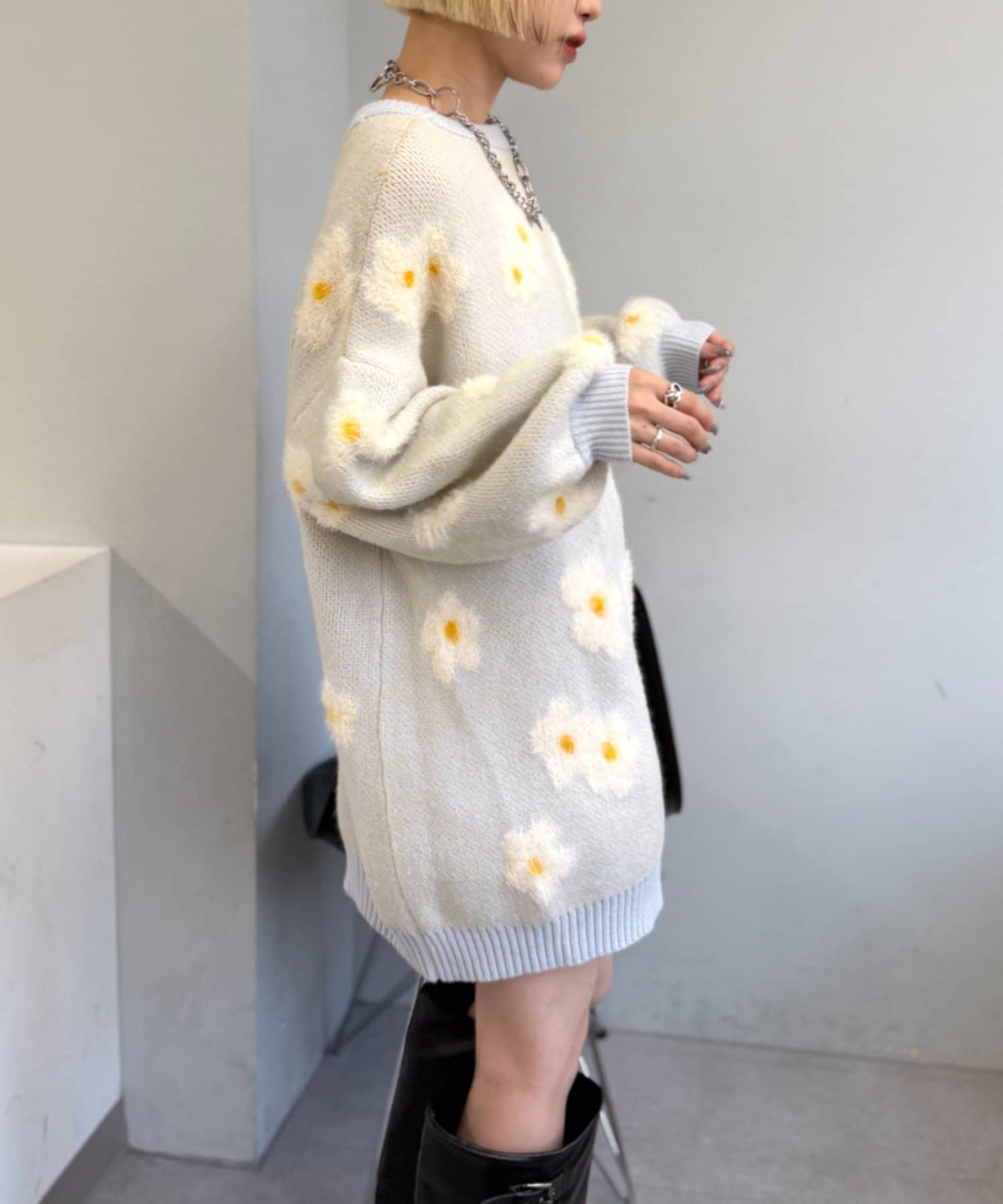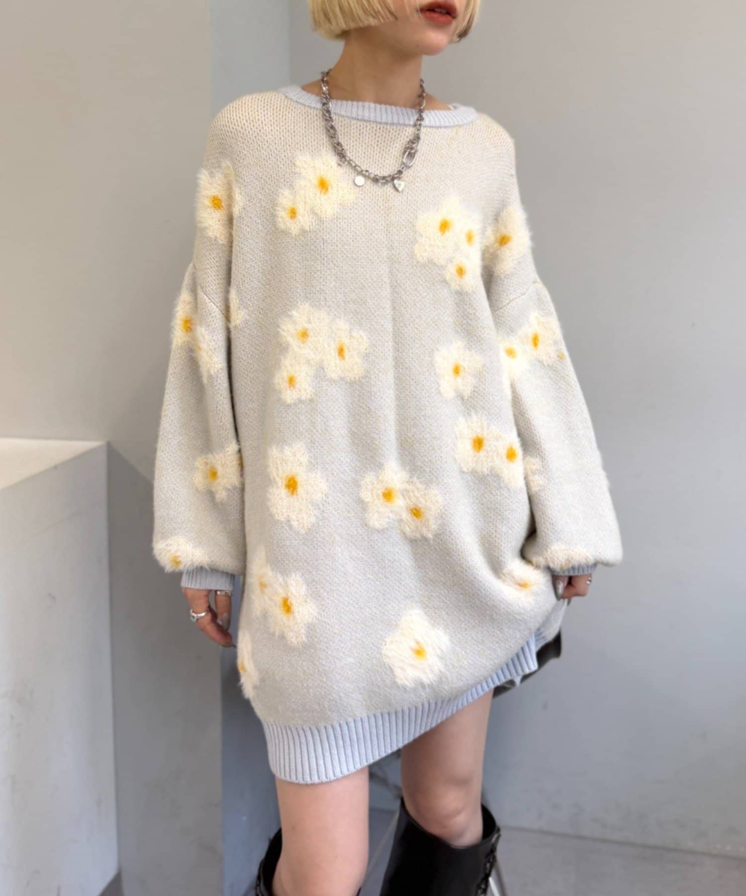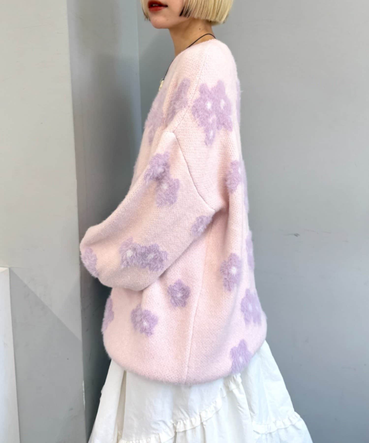 1枚で可愛いをつくる、ふわもち花柄ニット♪