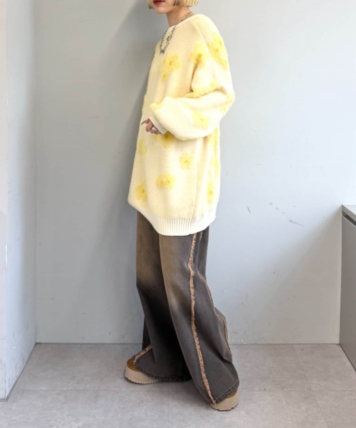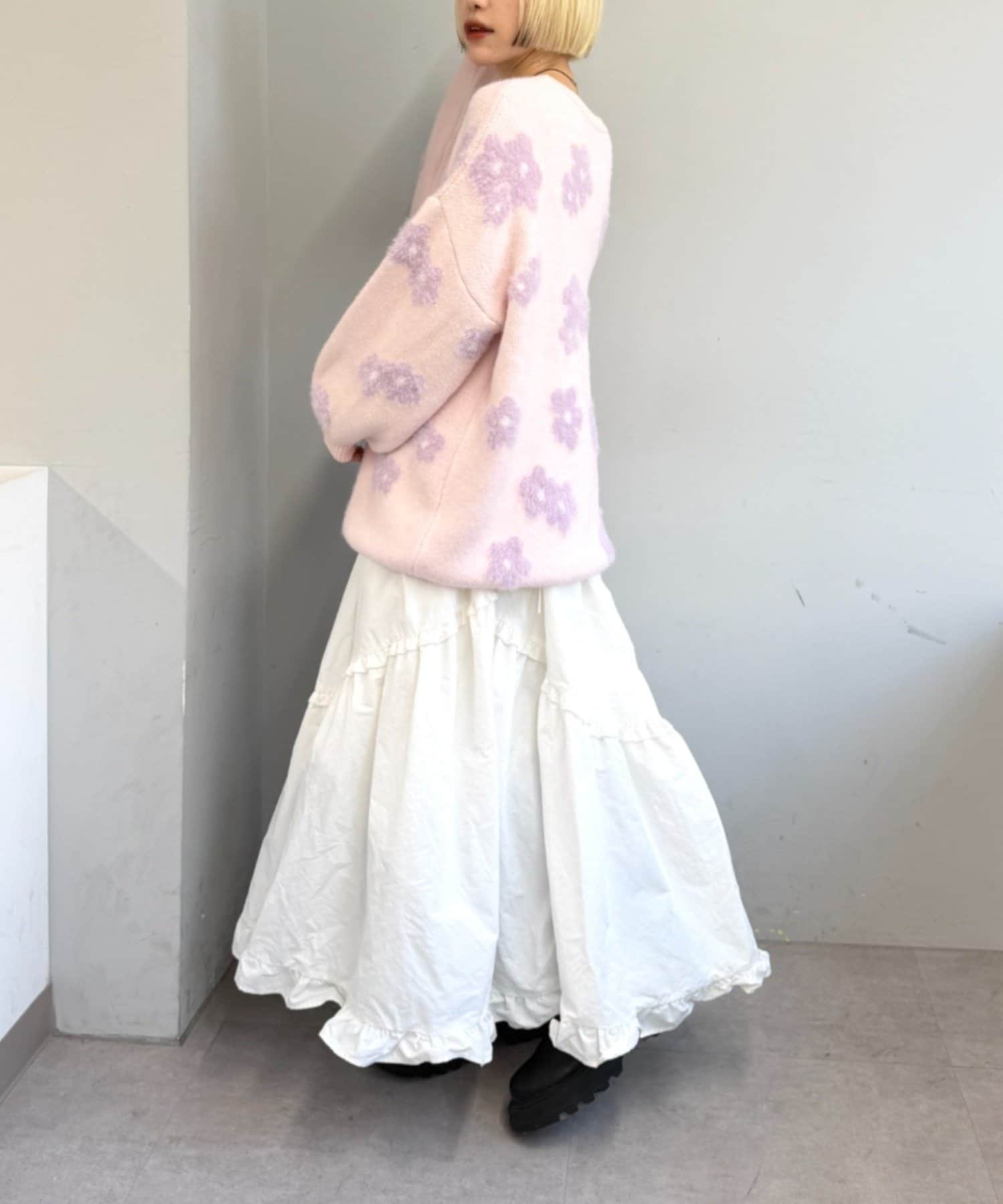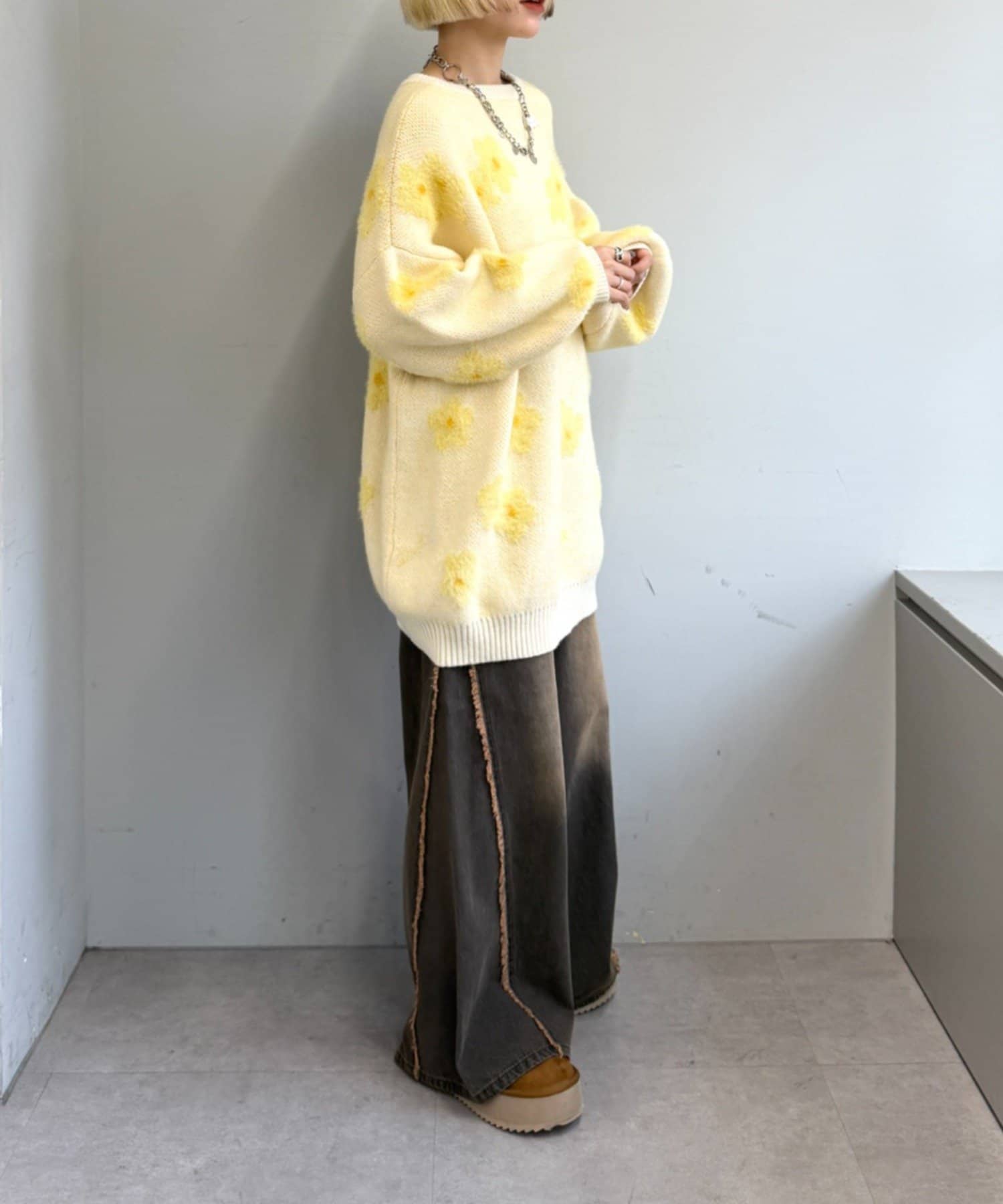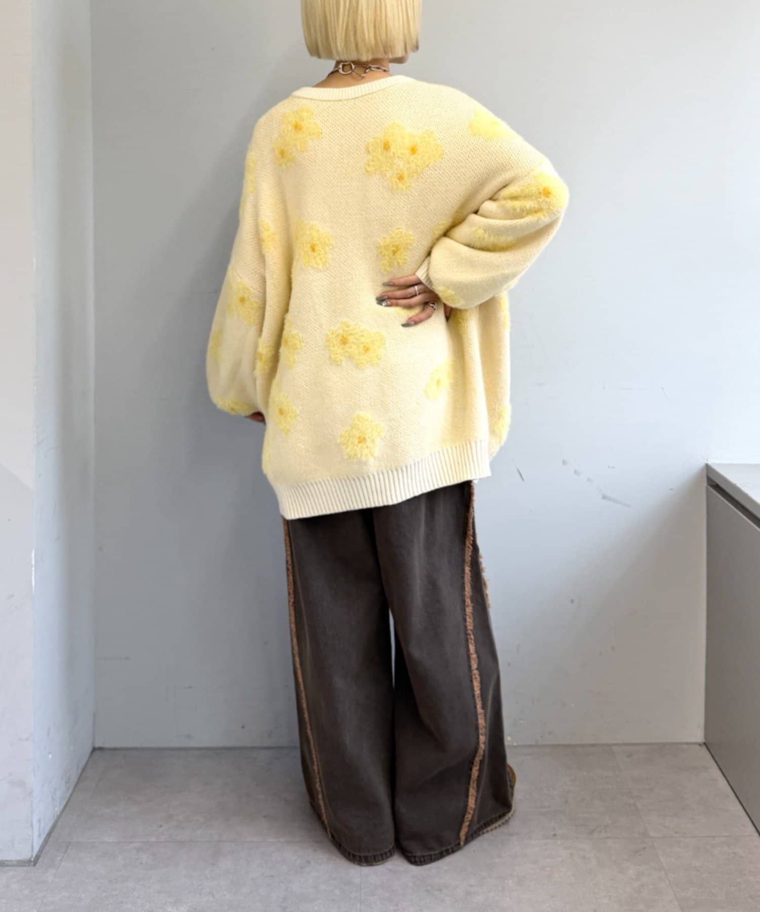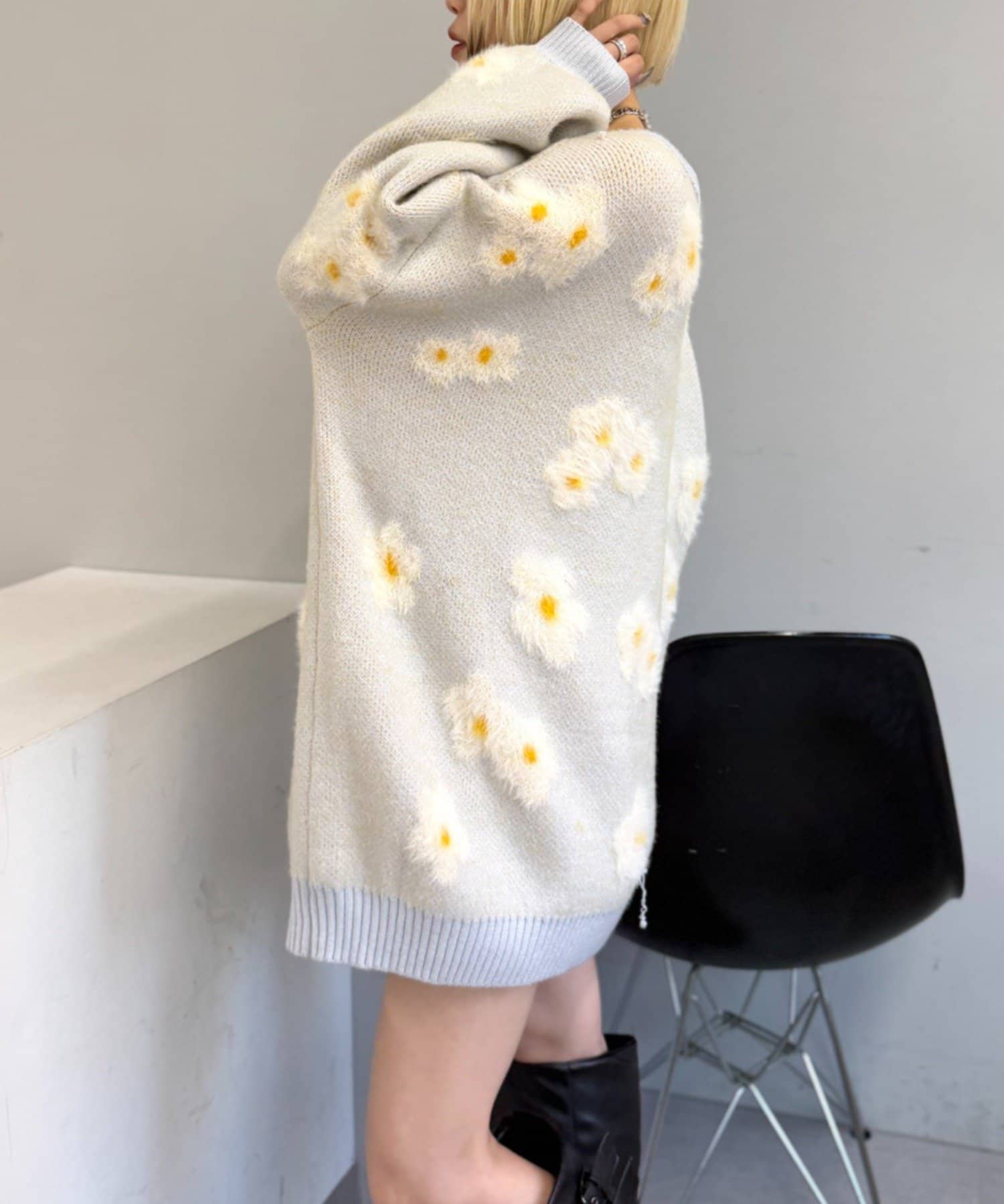 1枚で可愛いをつくる、ふわもち花柄ニット♪