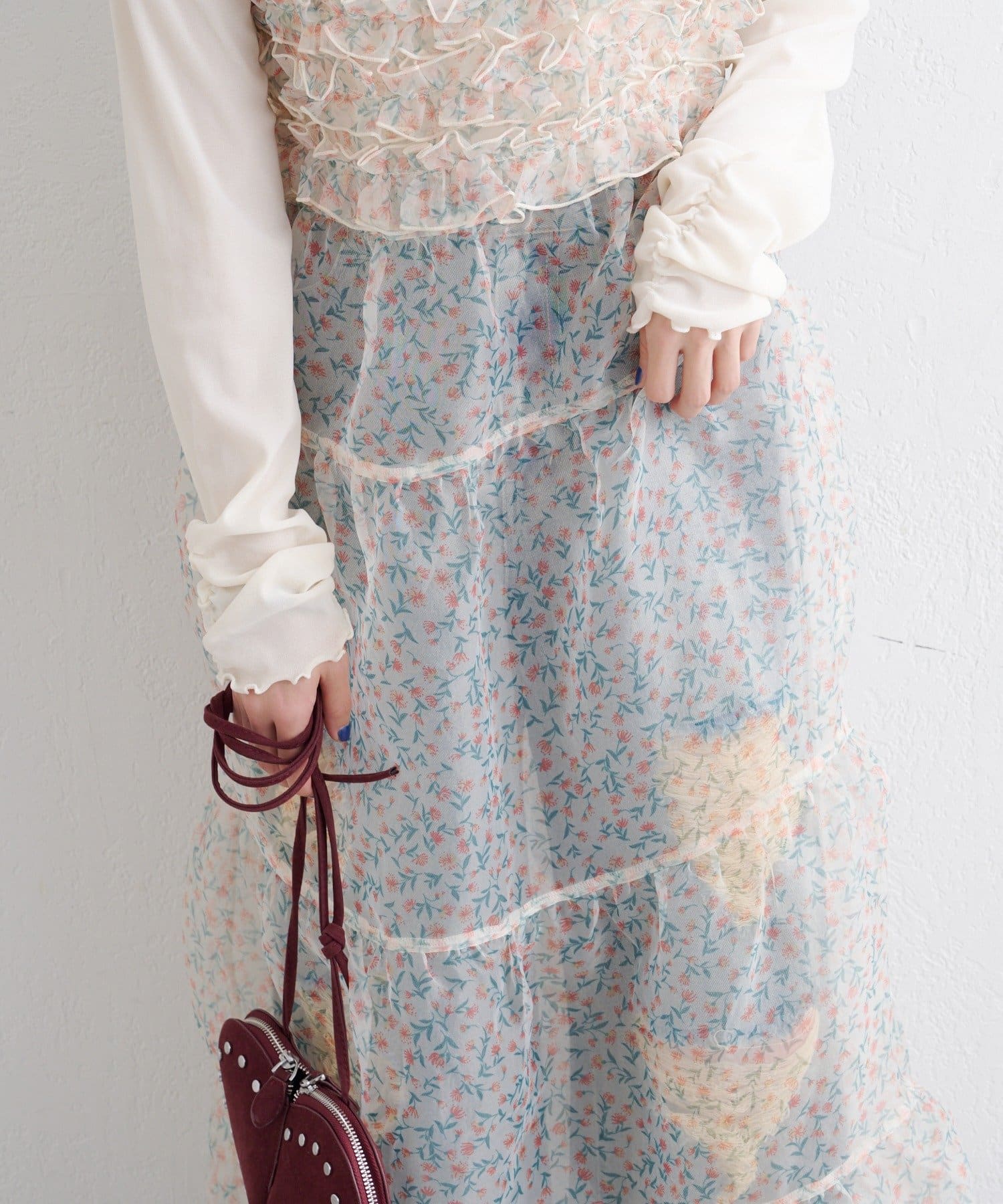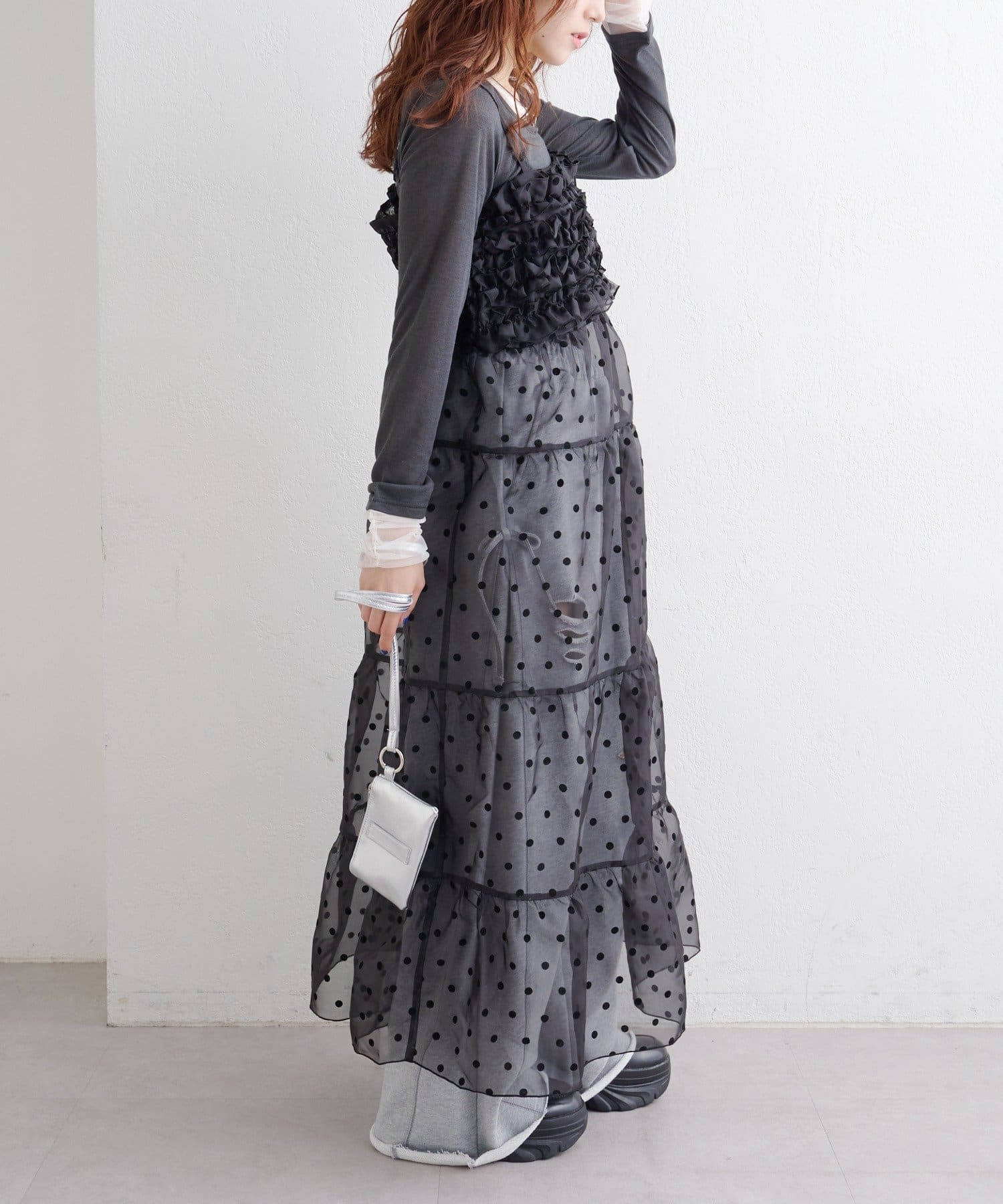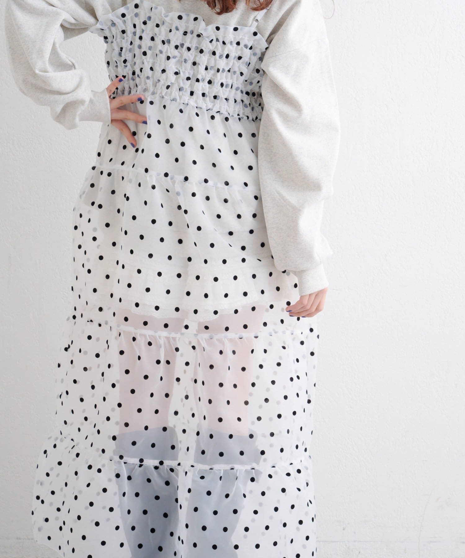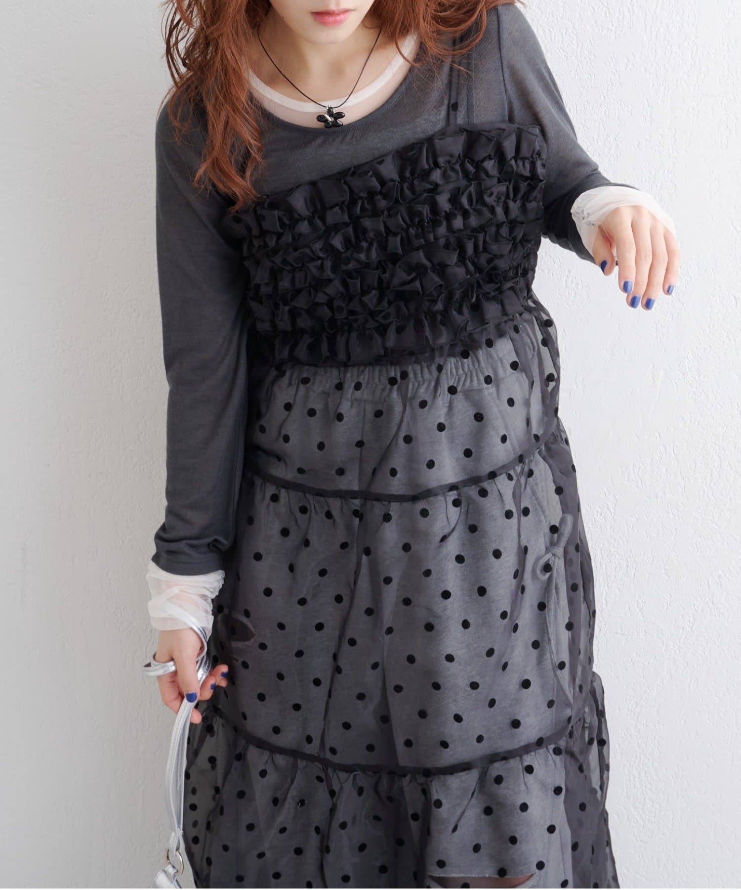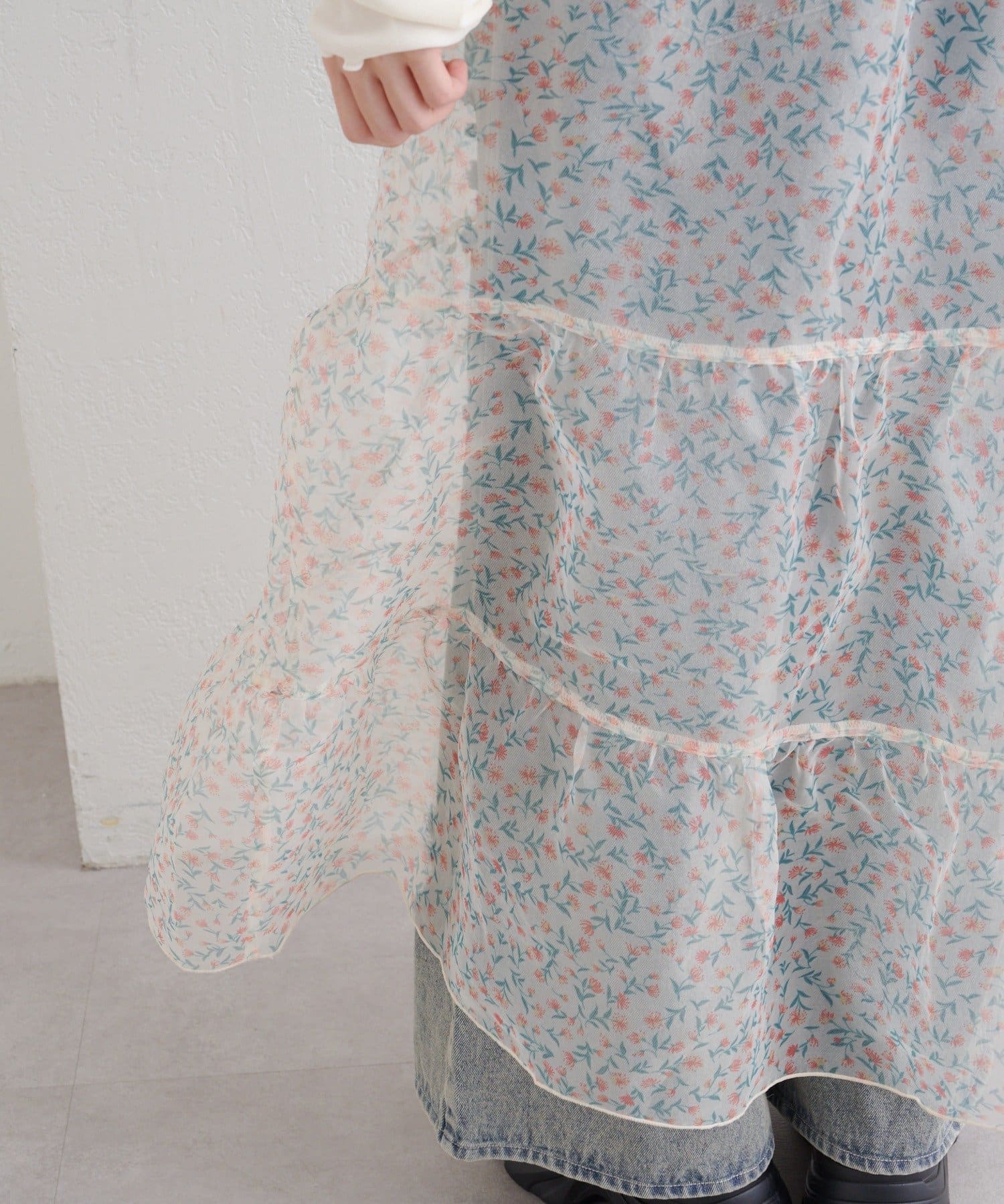 レイヤードで楽しむ オーガンジーティアードワンピース