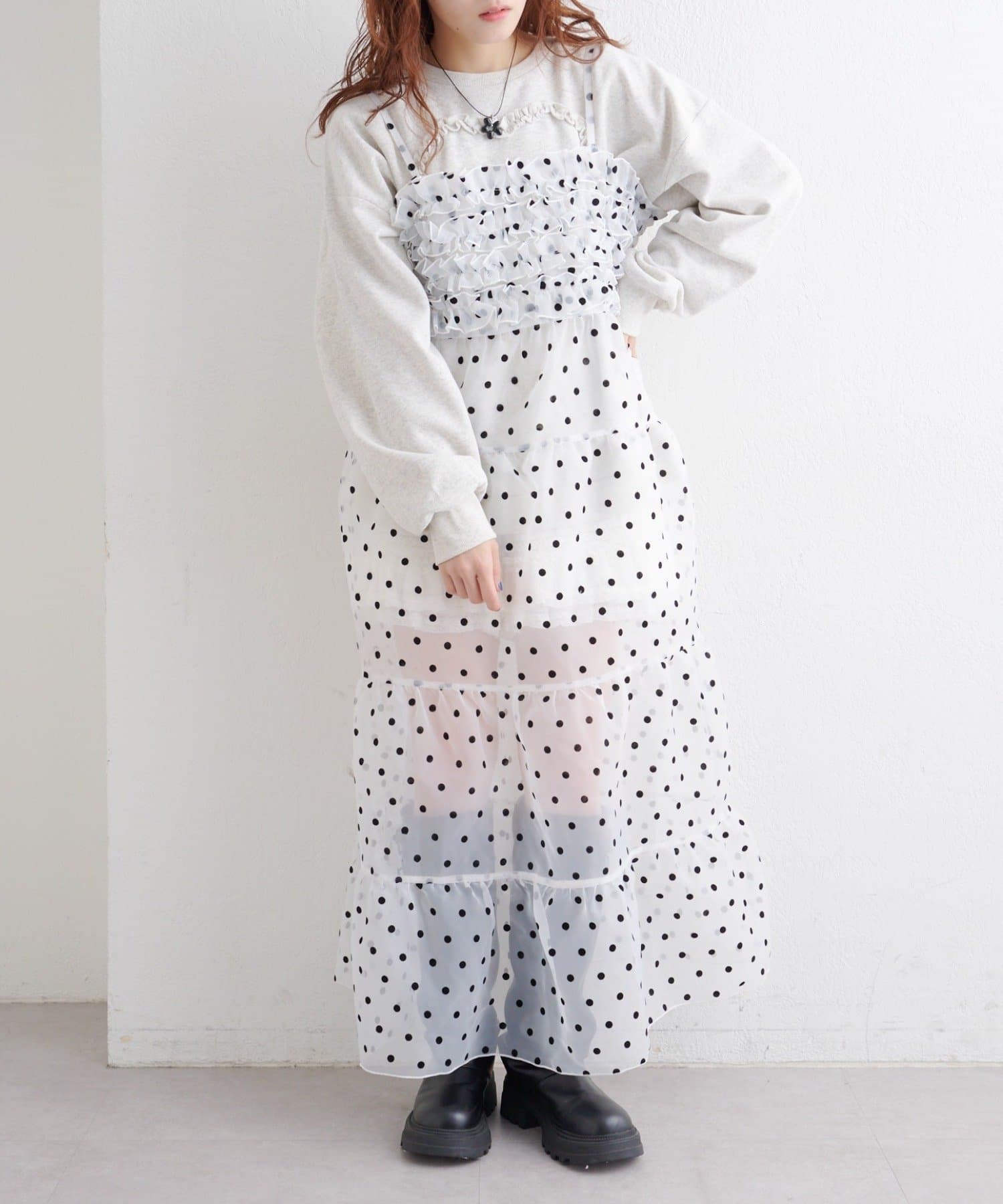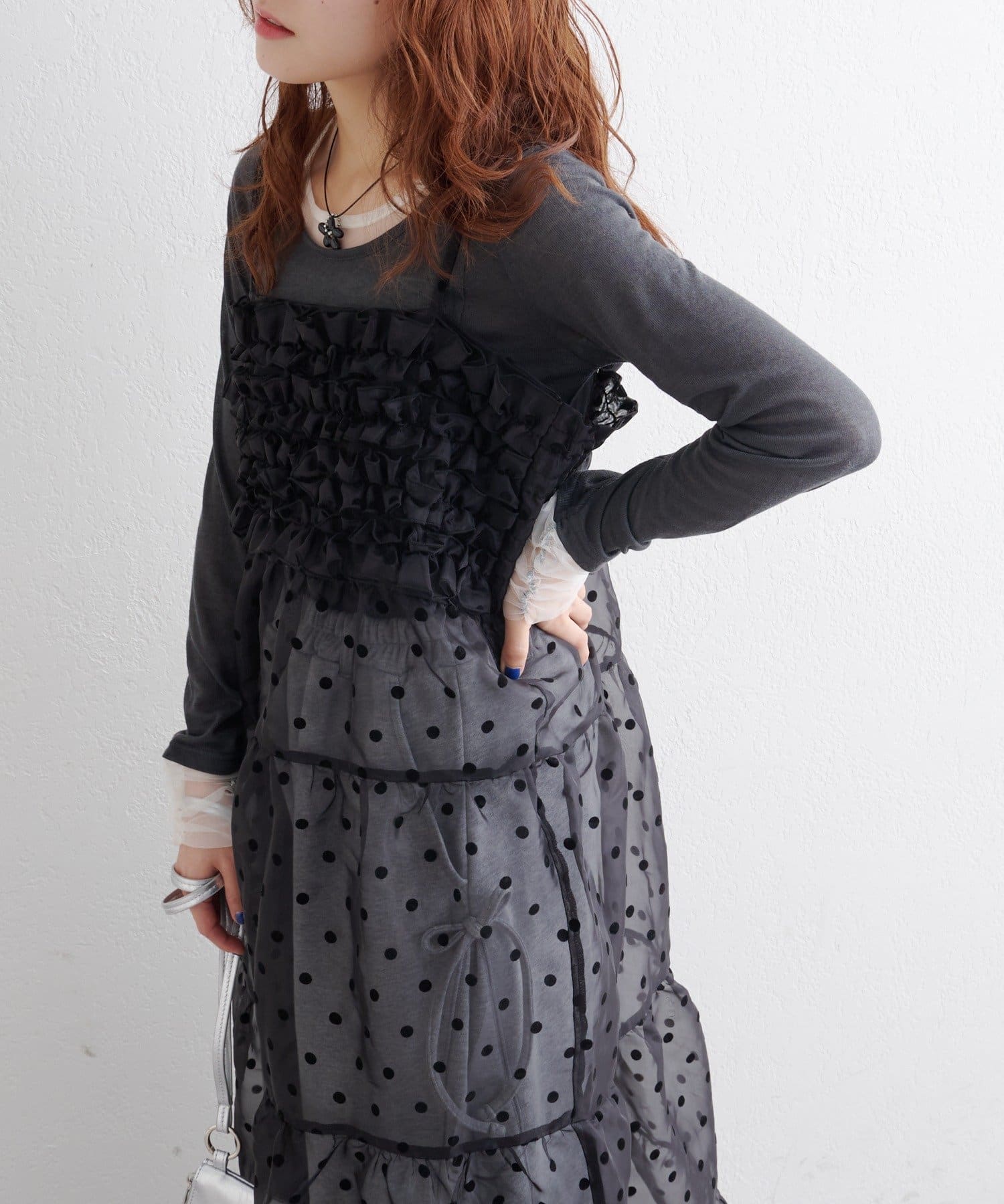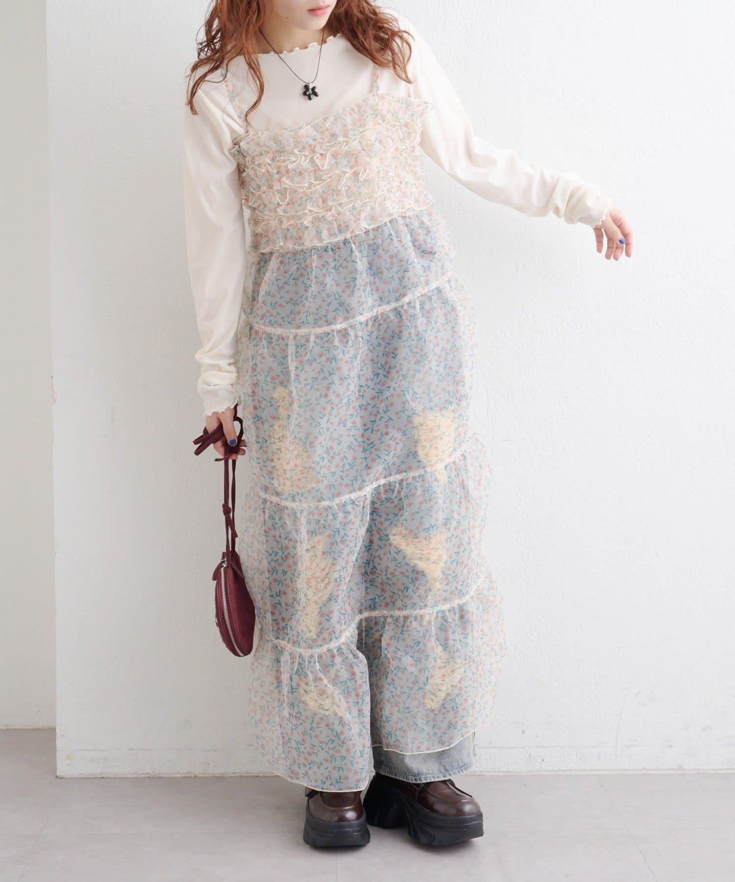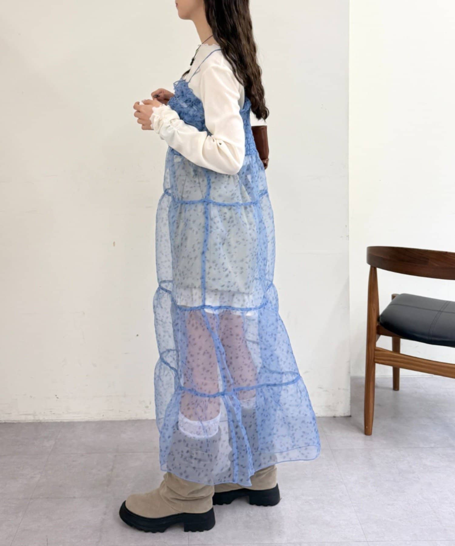 レイヤードで楽しむ オーガンジーティアードワンピース