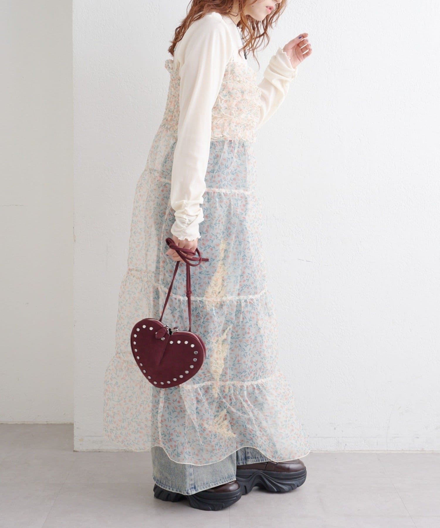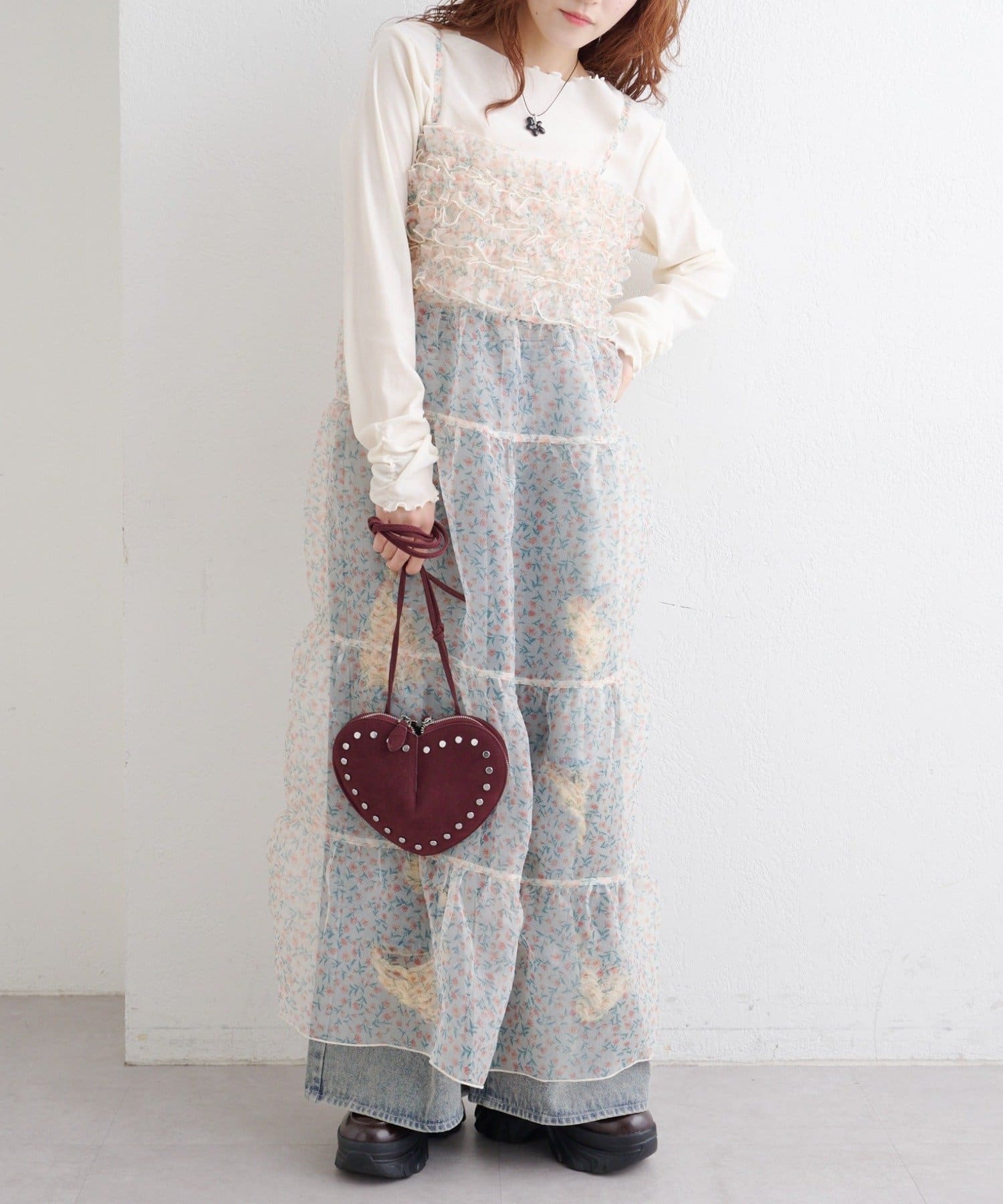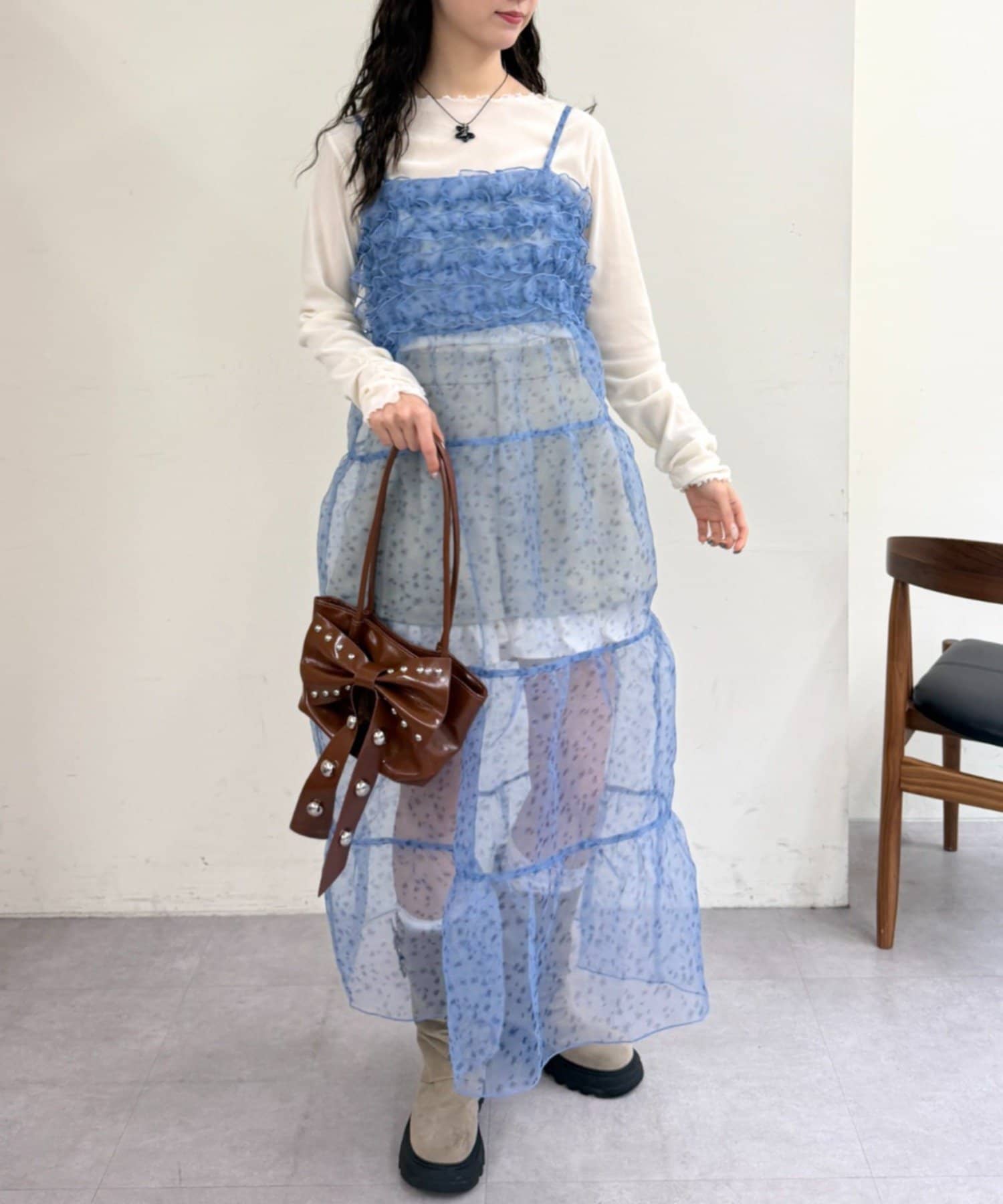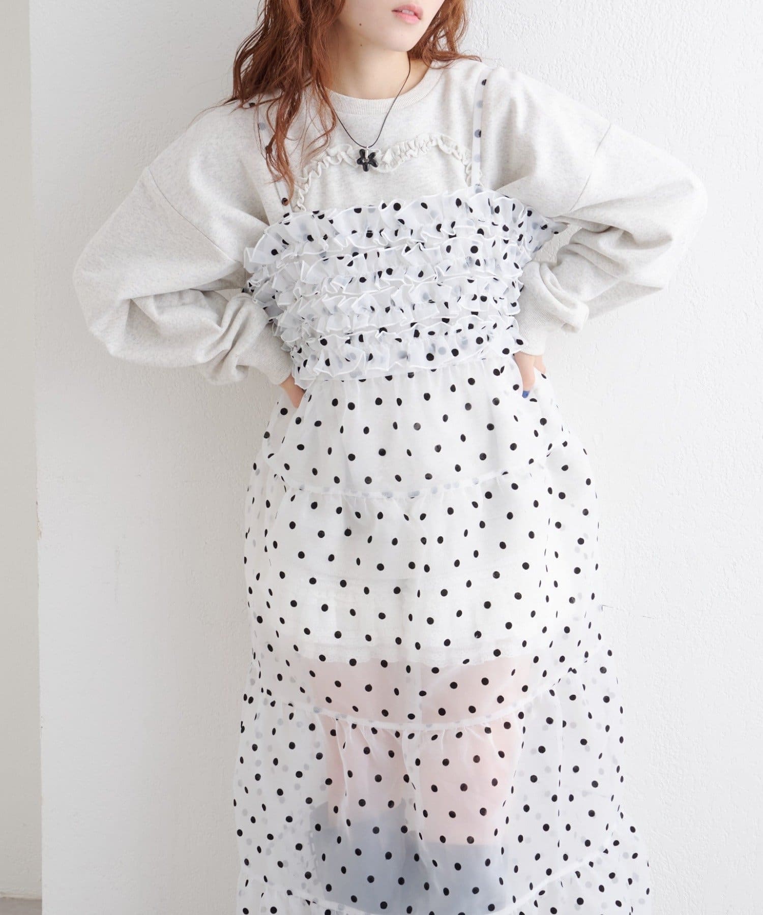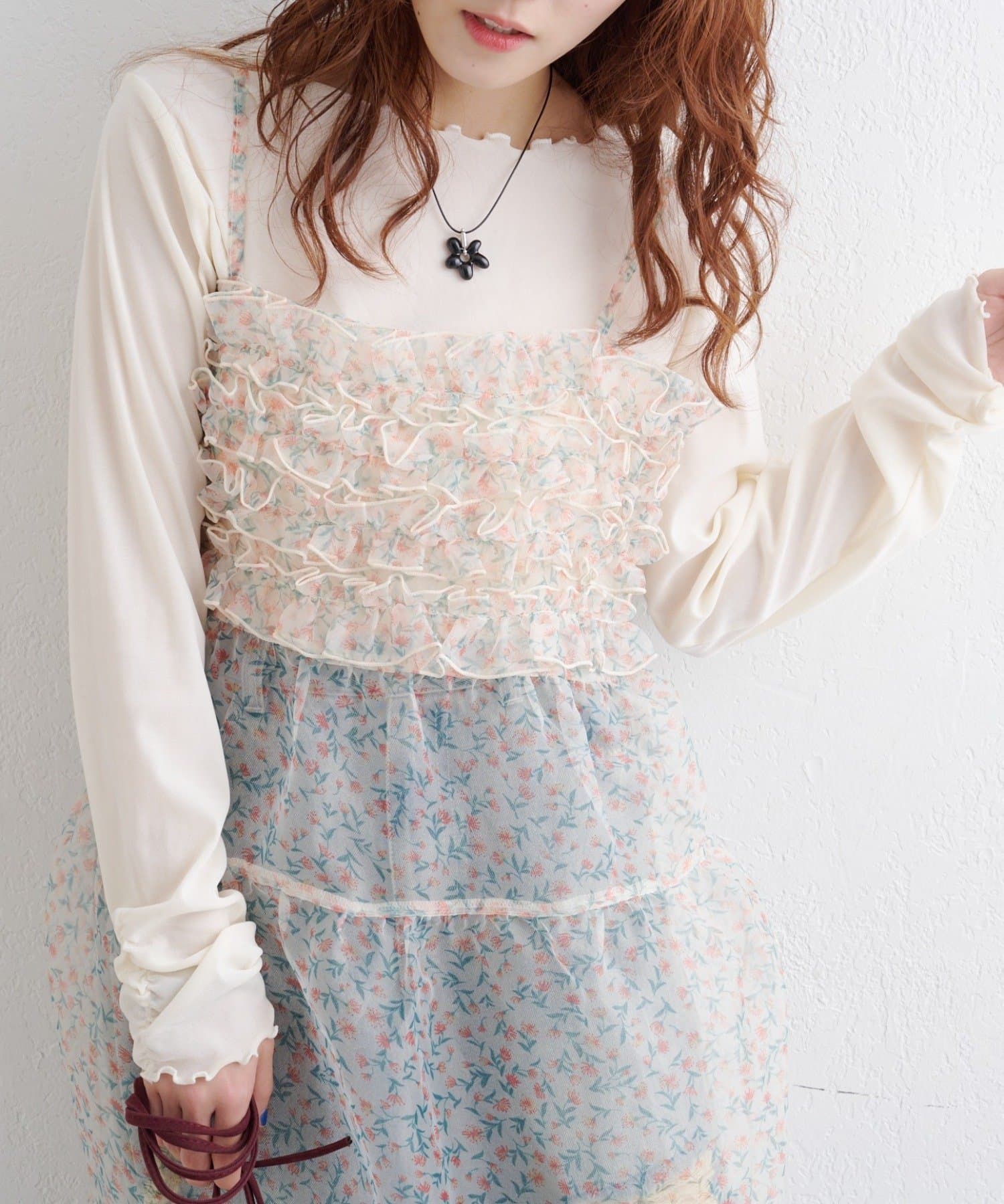 レイヤードで楽しむ オーガンジーティアードワンピース