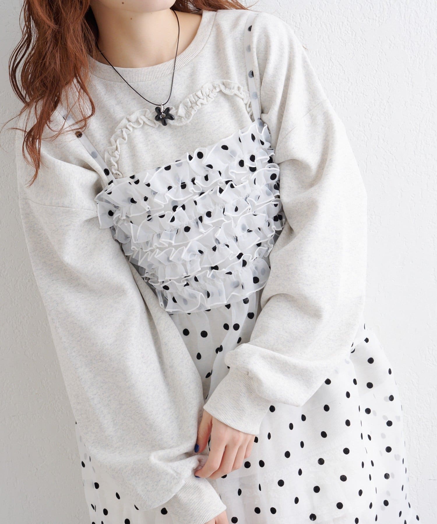 ・透け感のあるオーガンジーが軽やかなレイヤードスタイルに!