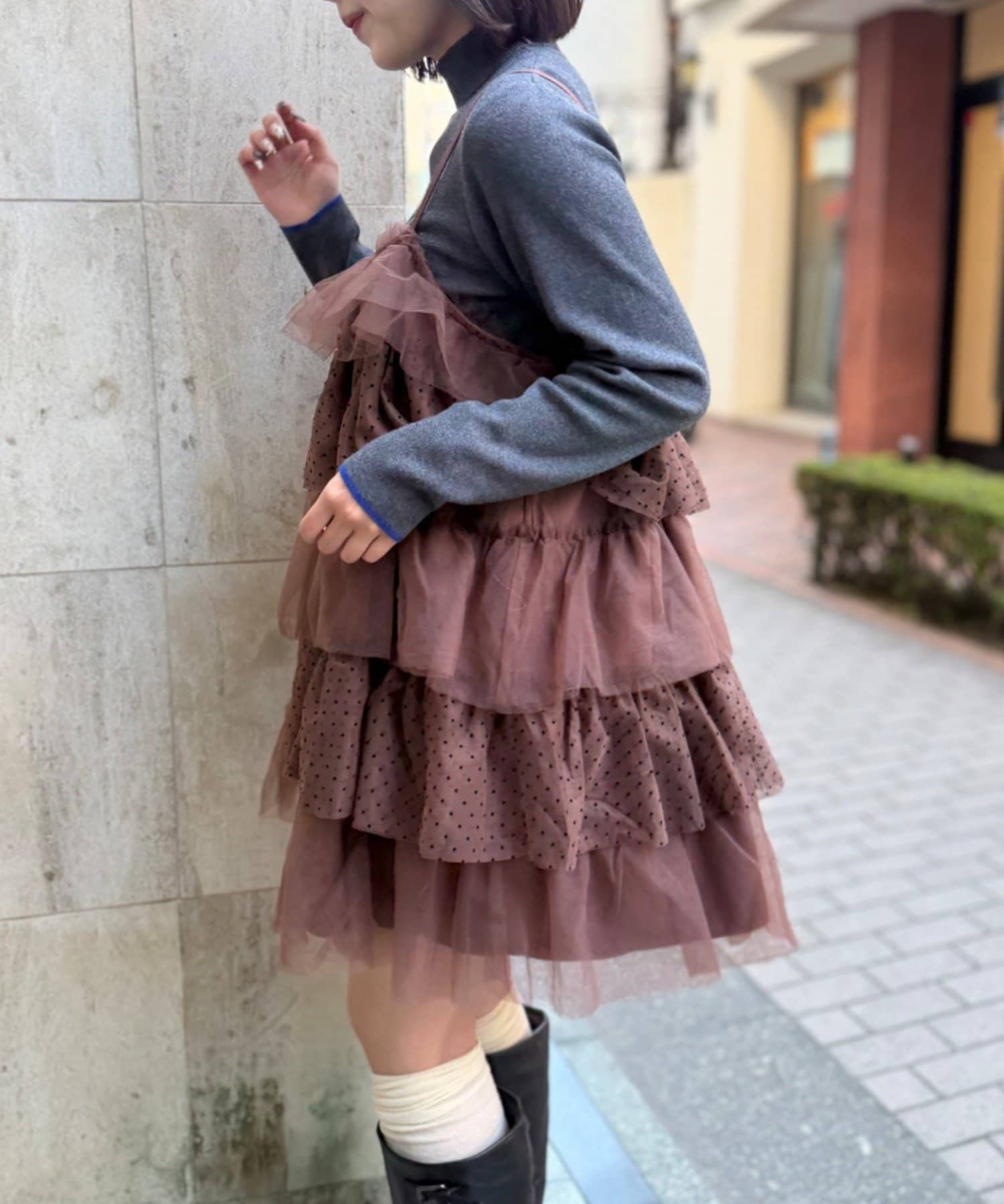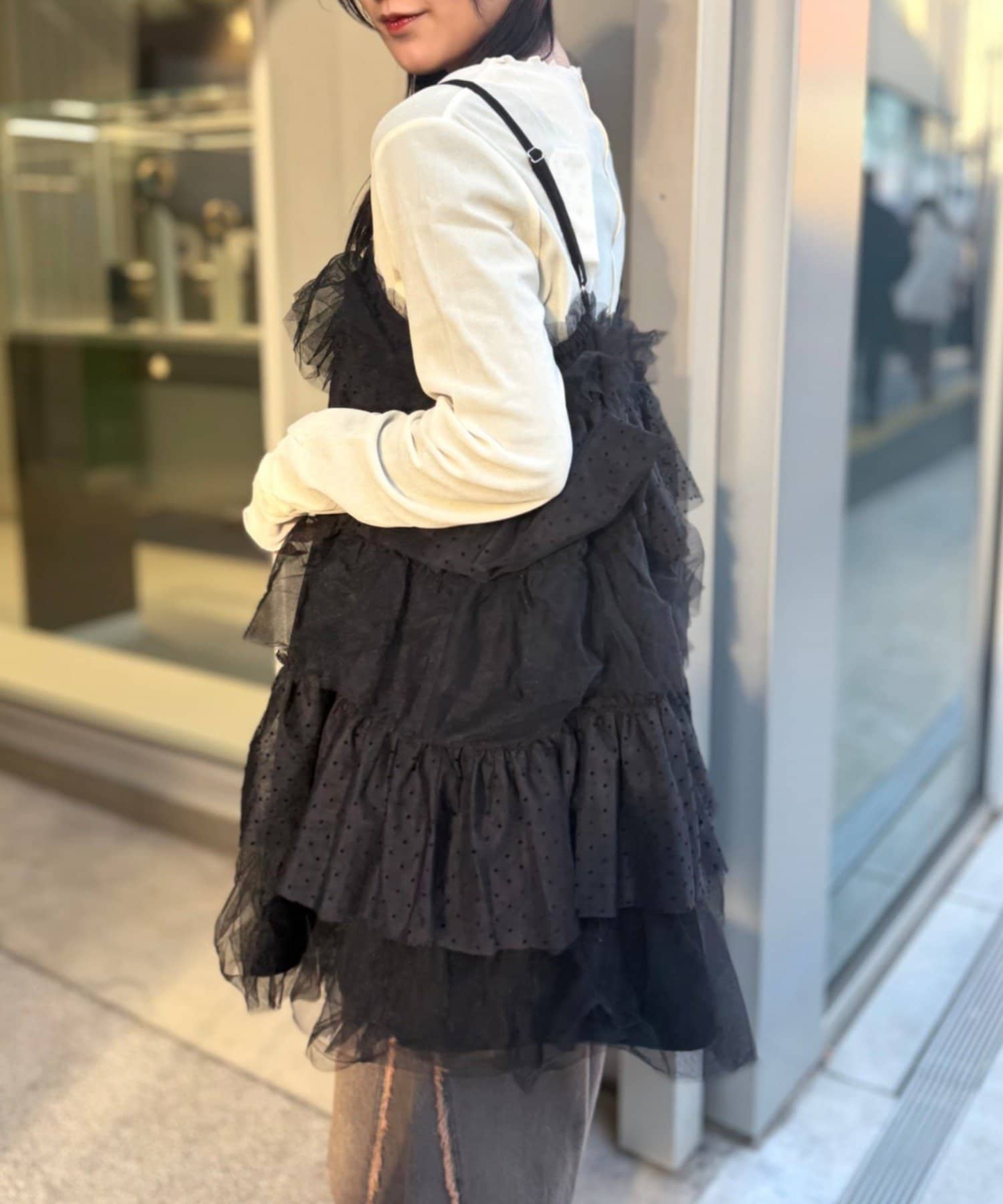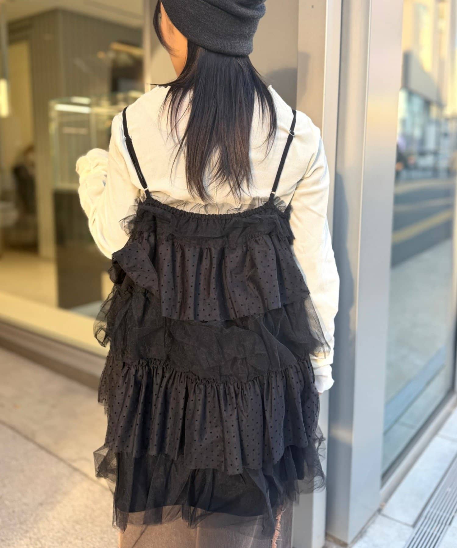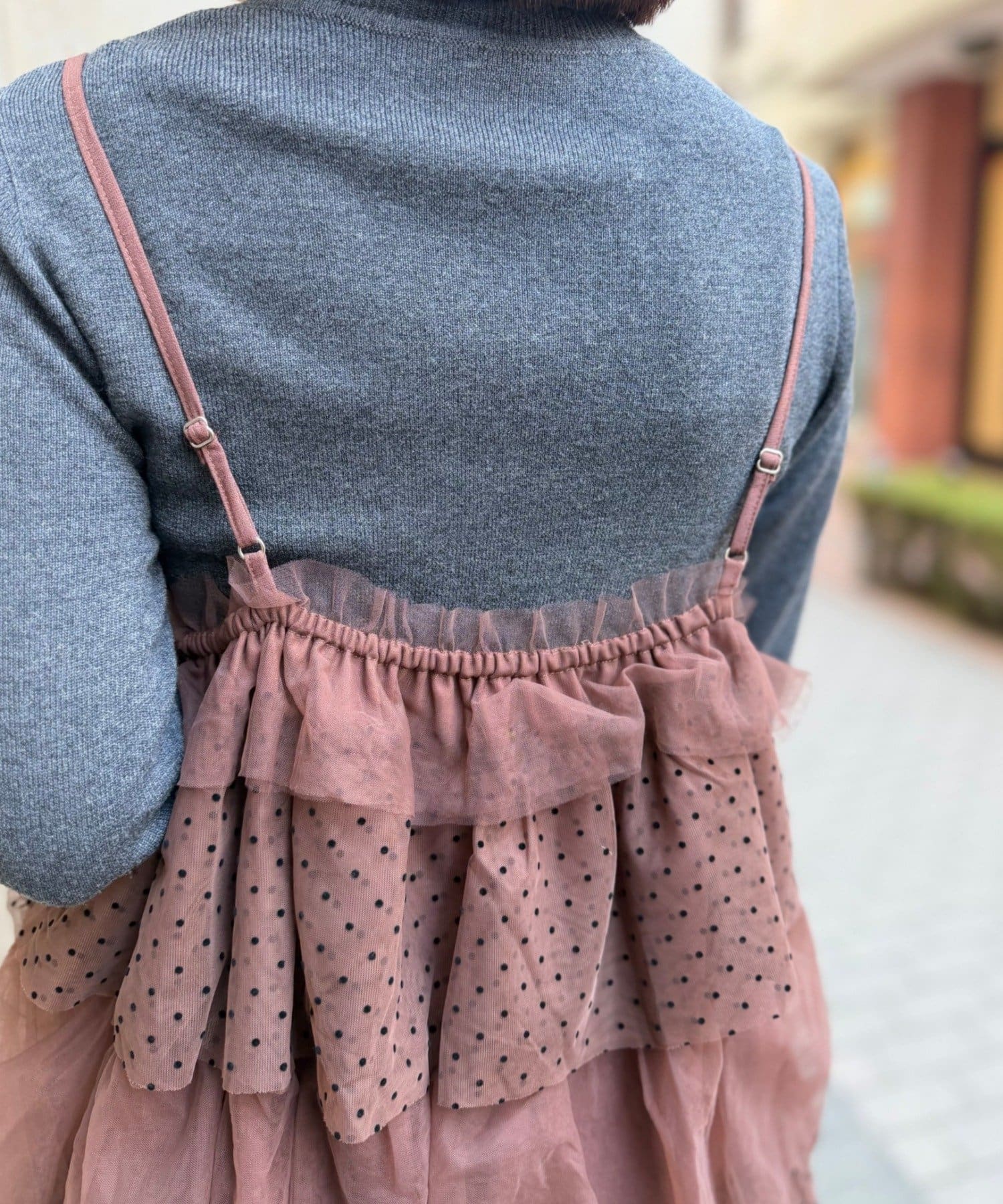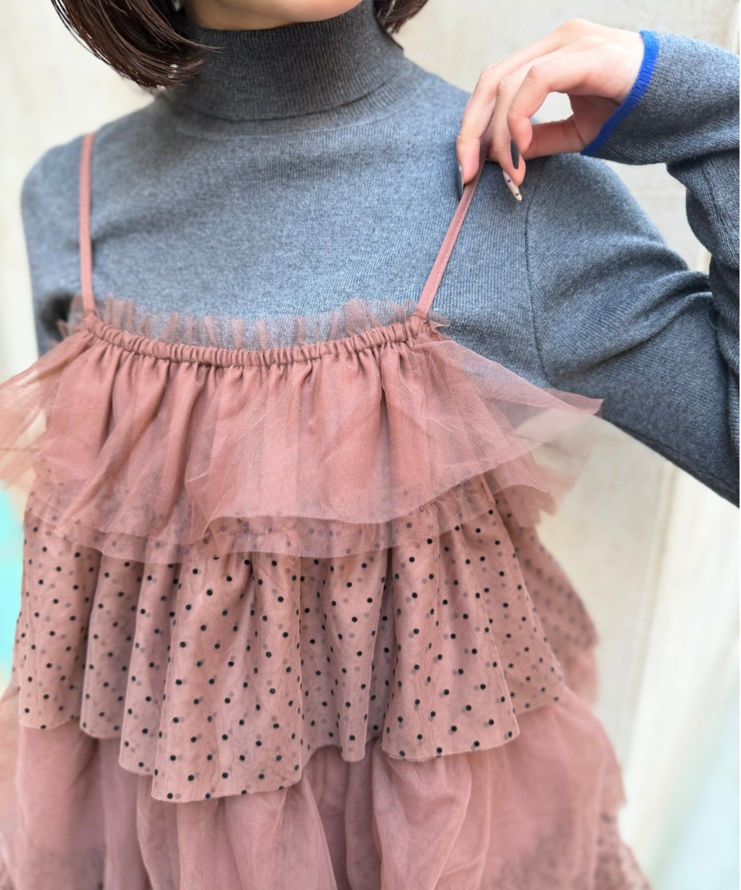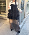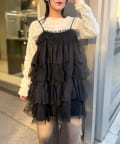 ・無地とドットのチュールが交互に重なるキャミワンピース
