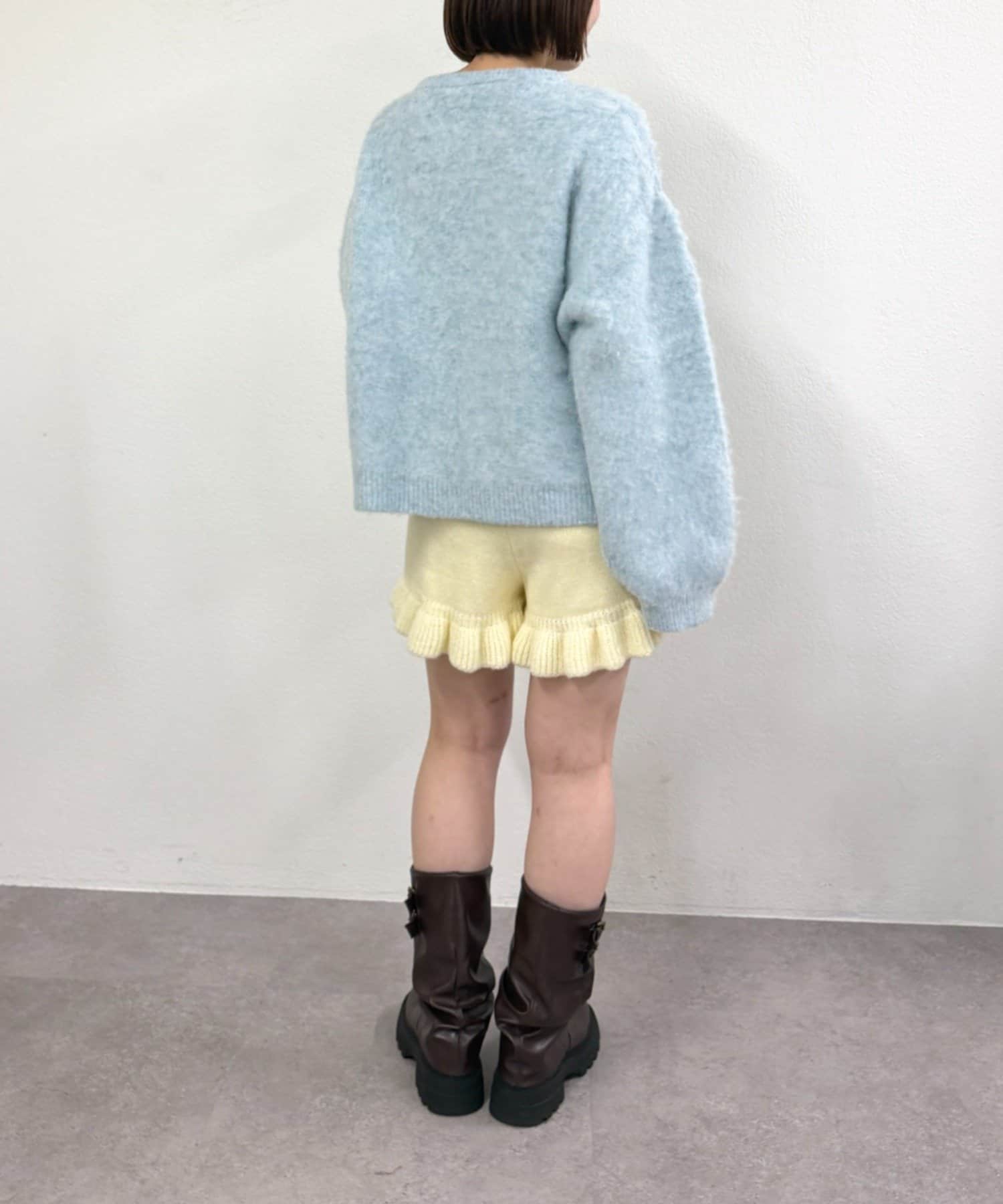 ・ニットショーパンを合わせて柔らかな質感の優しい雰囲気のコーデに♪