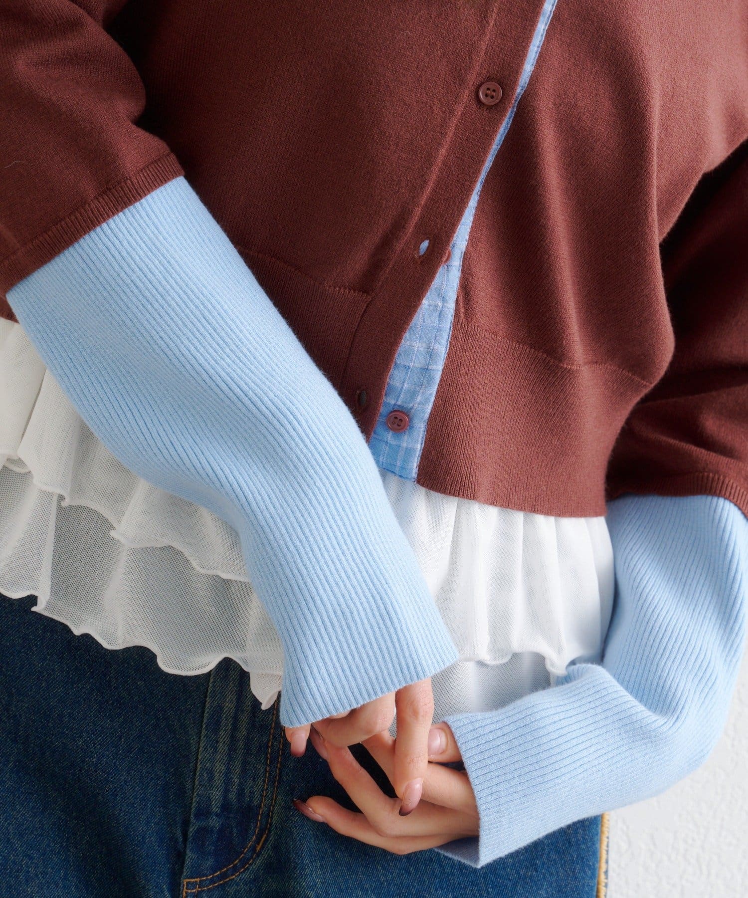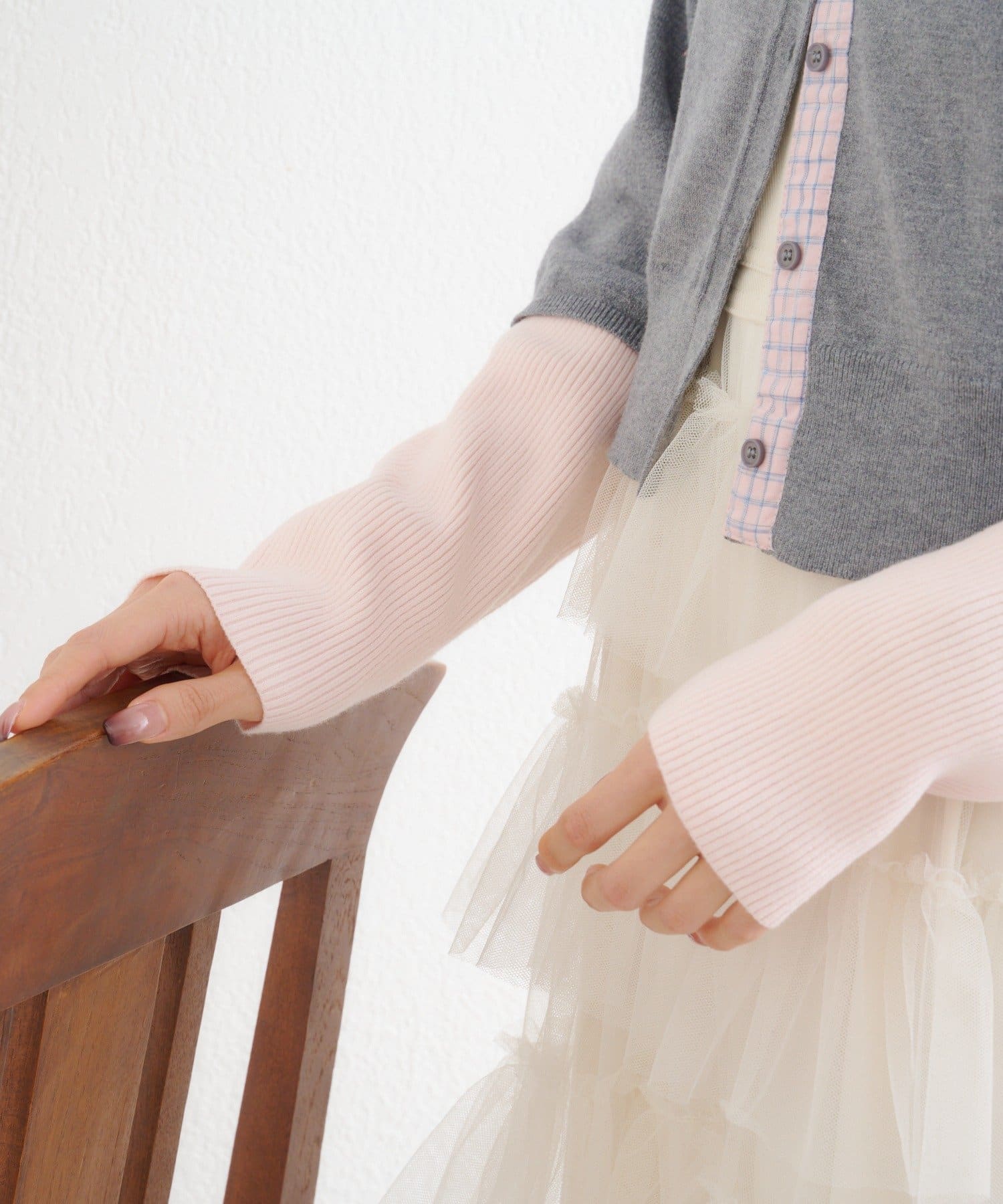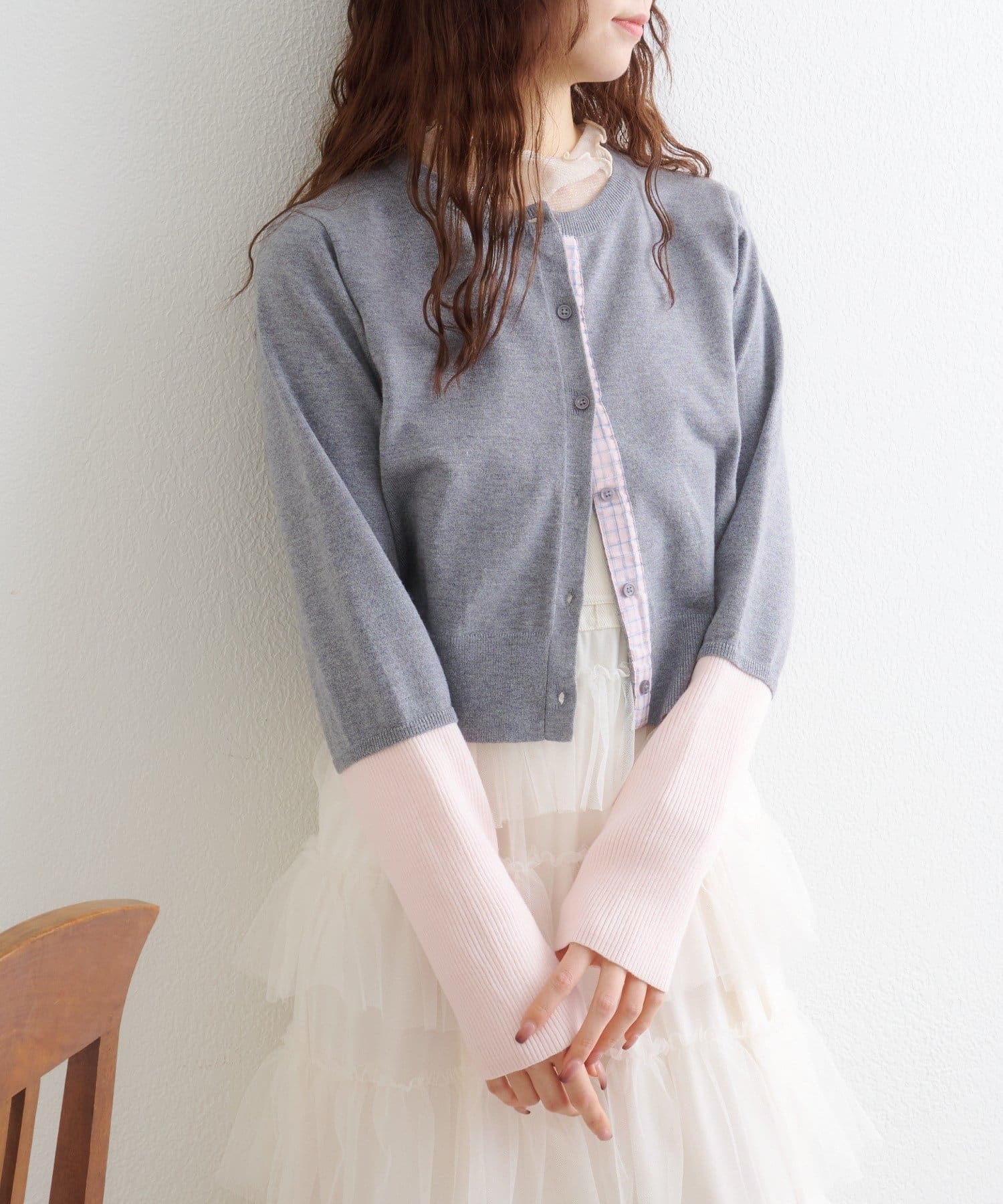 アーム部分の配色とチェックシャツデザインがかわいいカーディガン♪