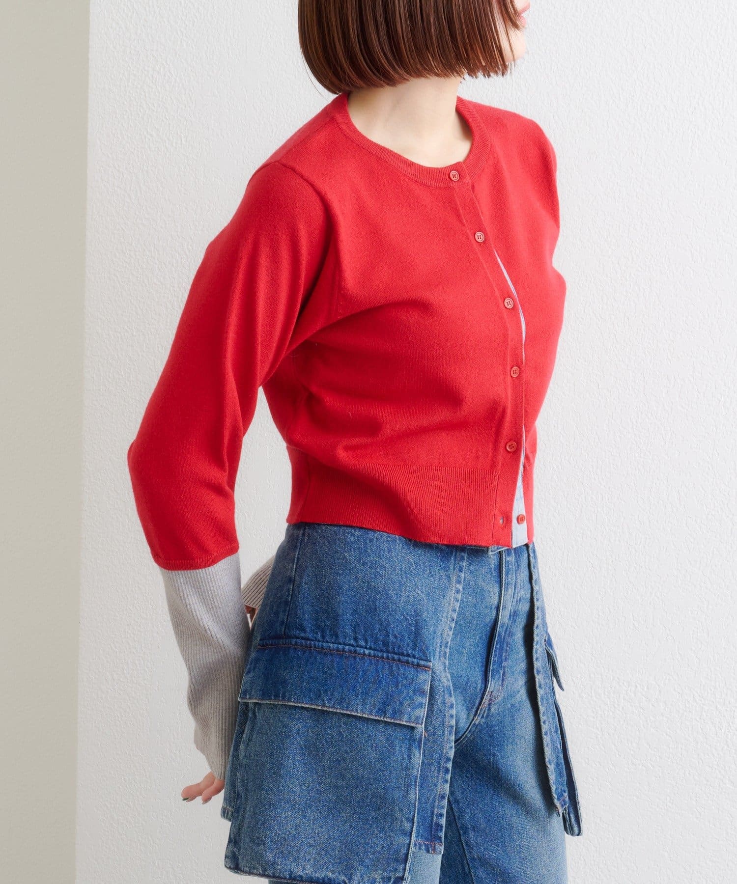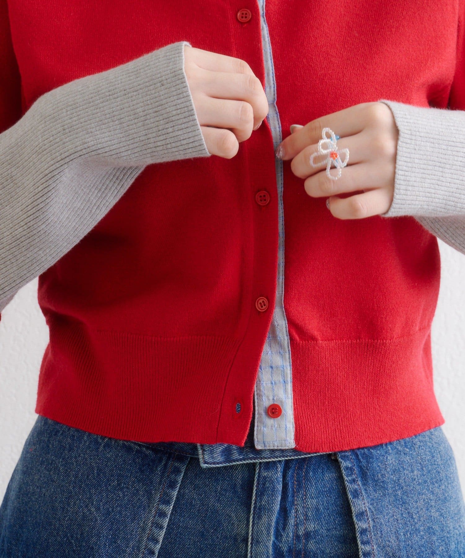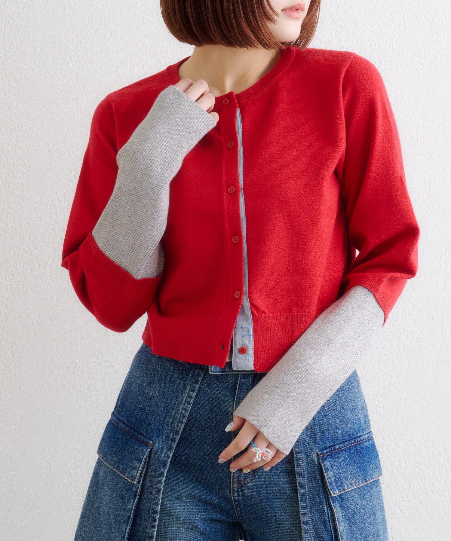 アーム部分の配色とチェックシャツデザインがかわいいカーディガン♪