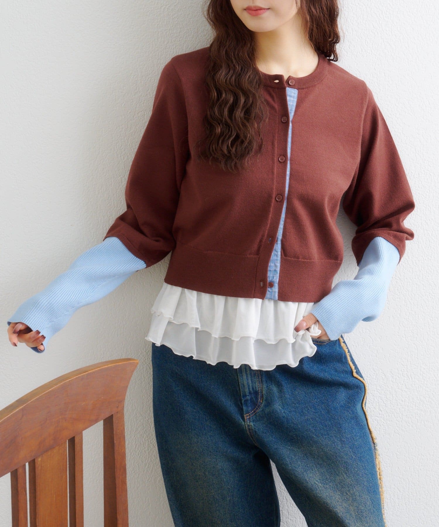 TOP > w closet > レディース > トップス > カーディガン/ボレロ > チェックシャツレイヤードカーディガン
