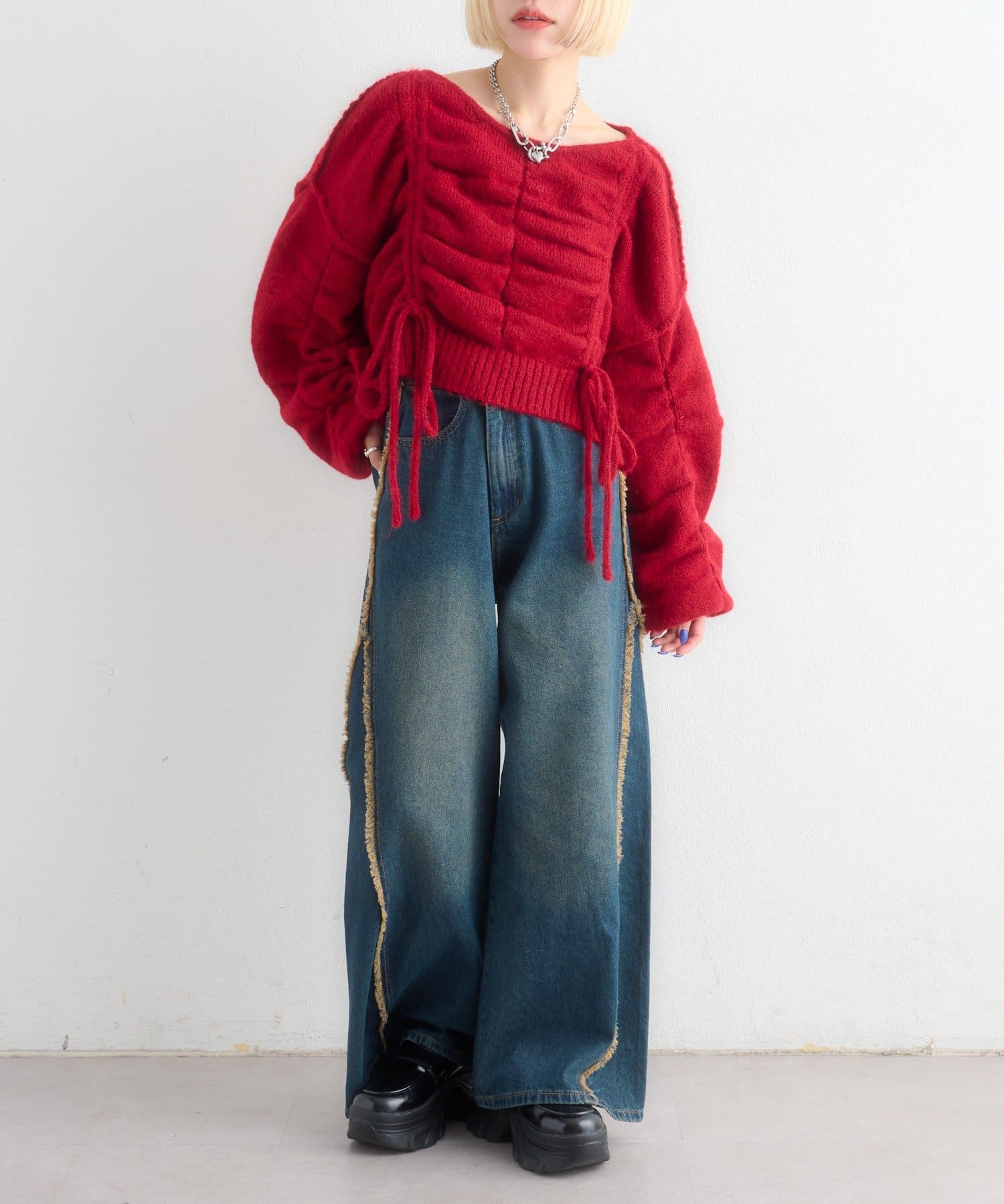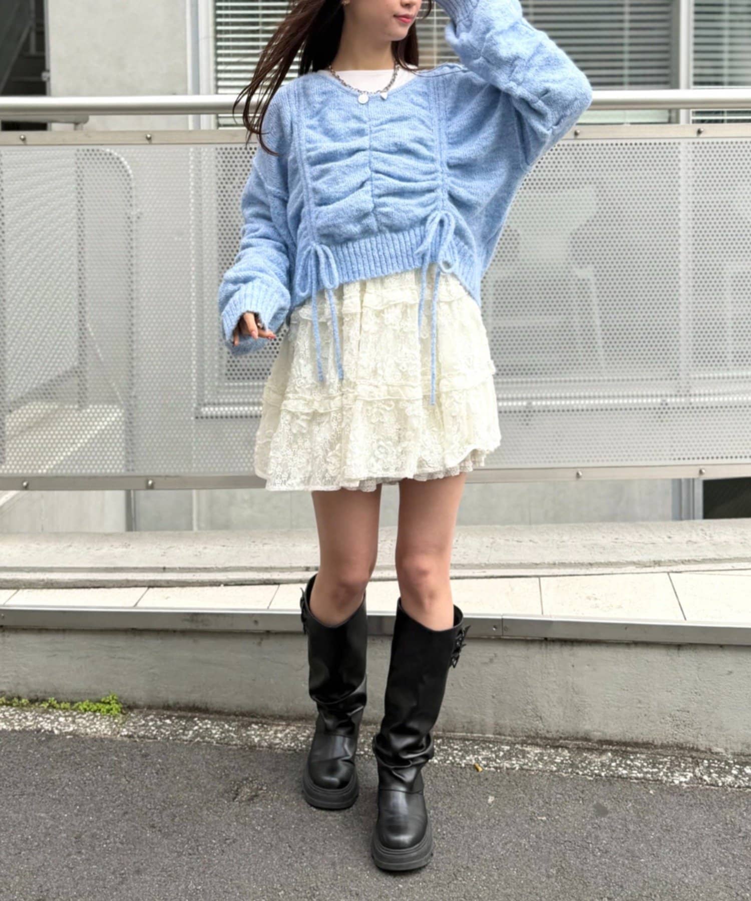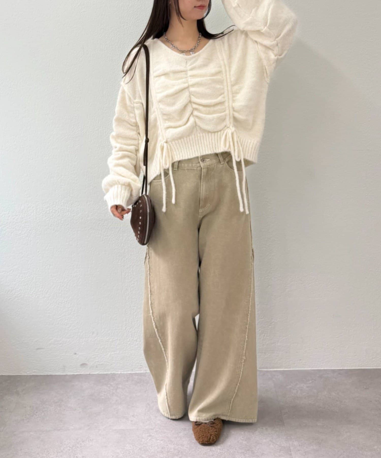 ・きゅっと絞って短い丈、伸ばして長い丈で着用できるのが嬉しいポイント♪