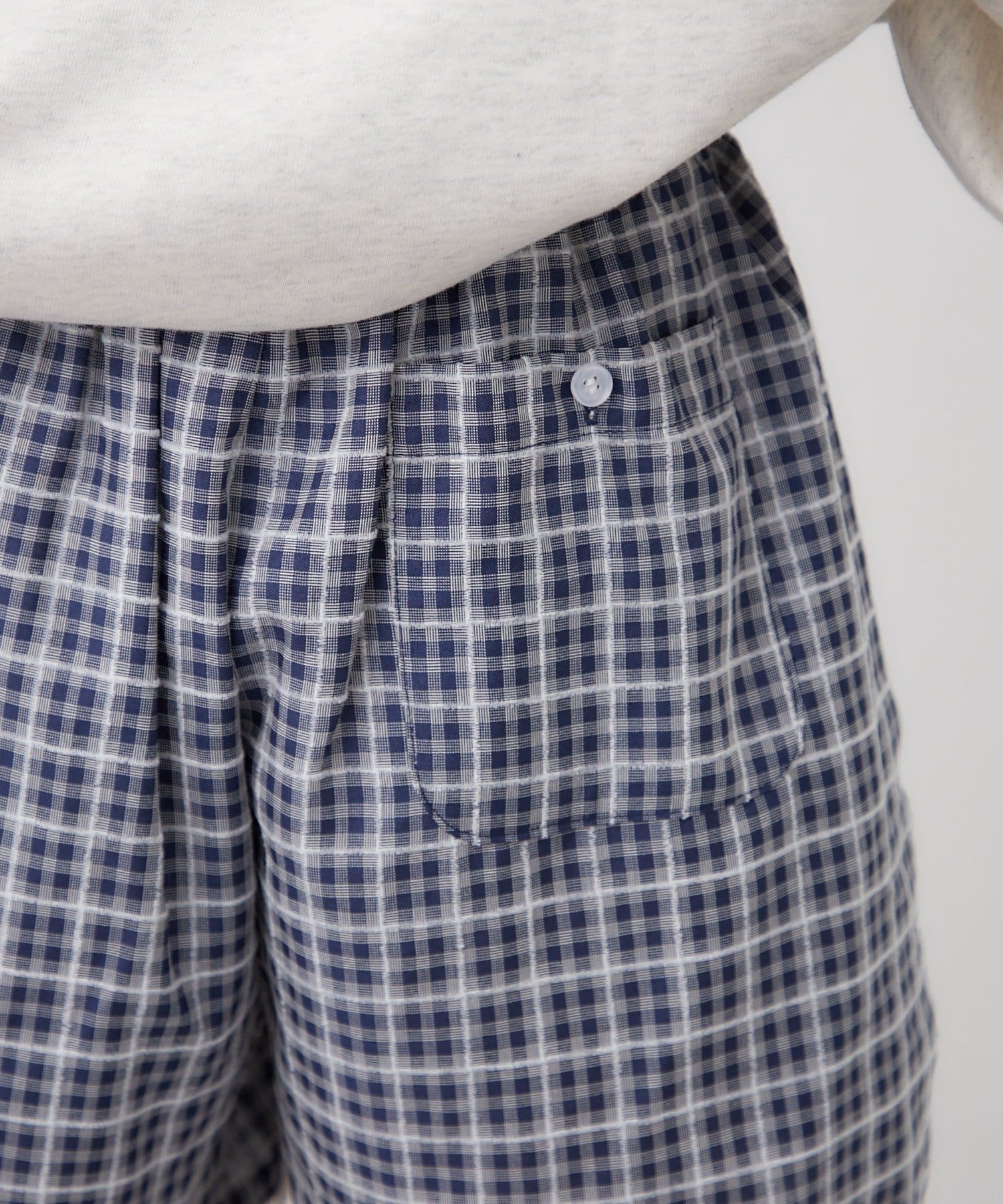 ・懐かしいギンガムチェック柄が目を引く、パジャマライクなショートパンツ