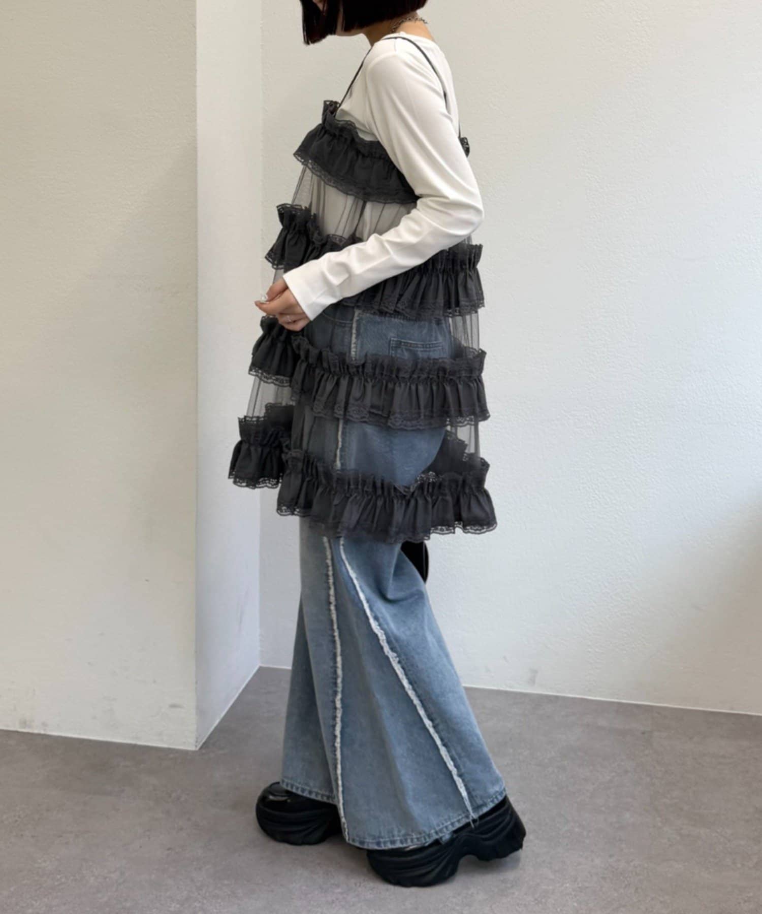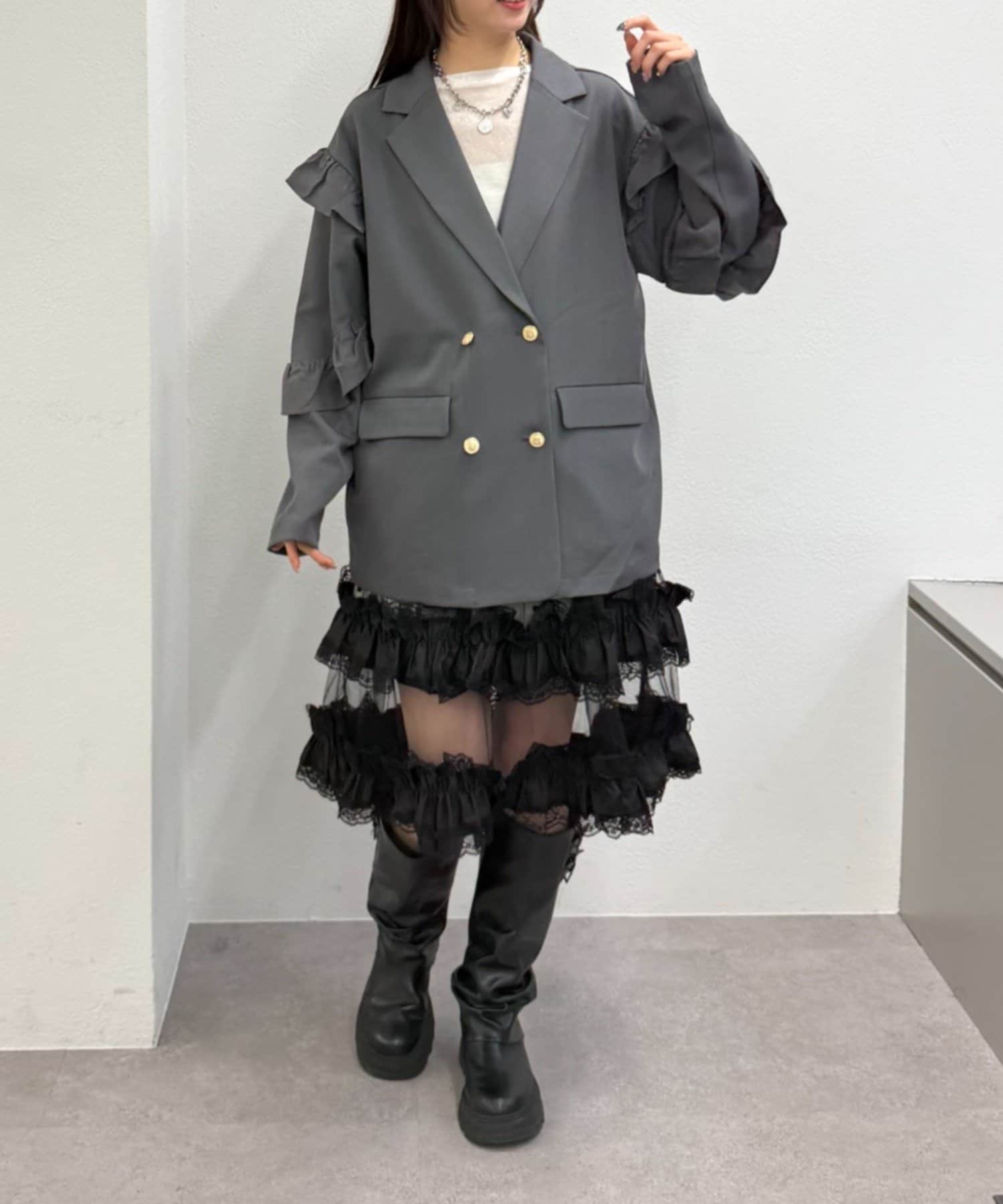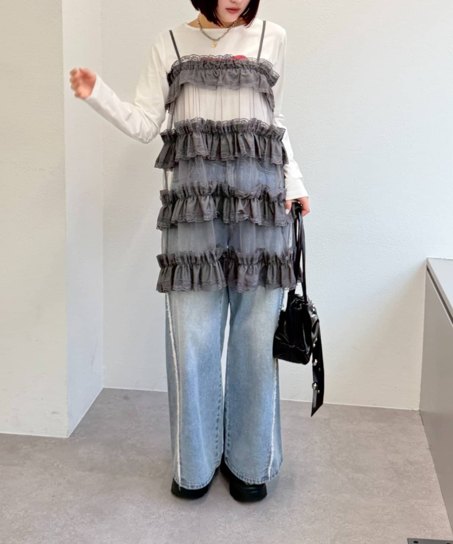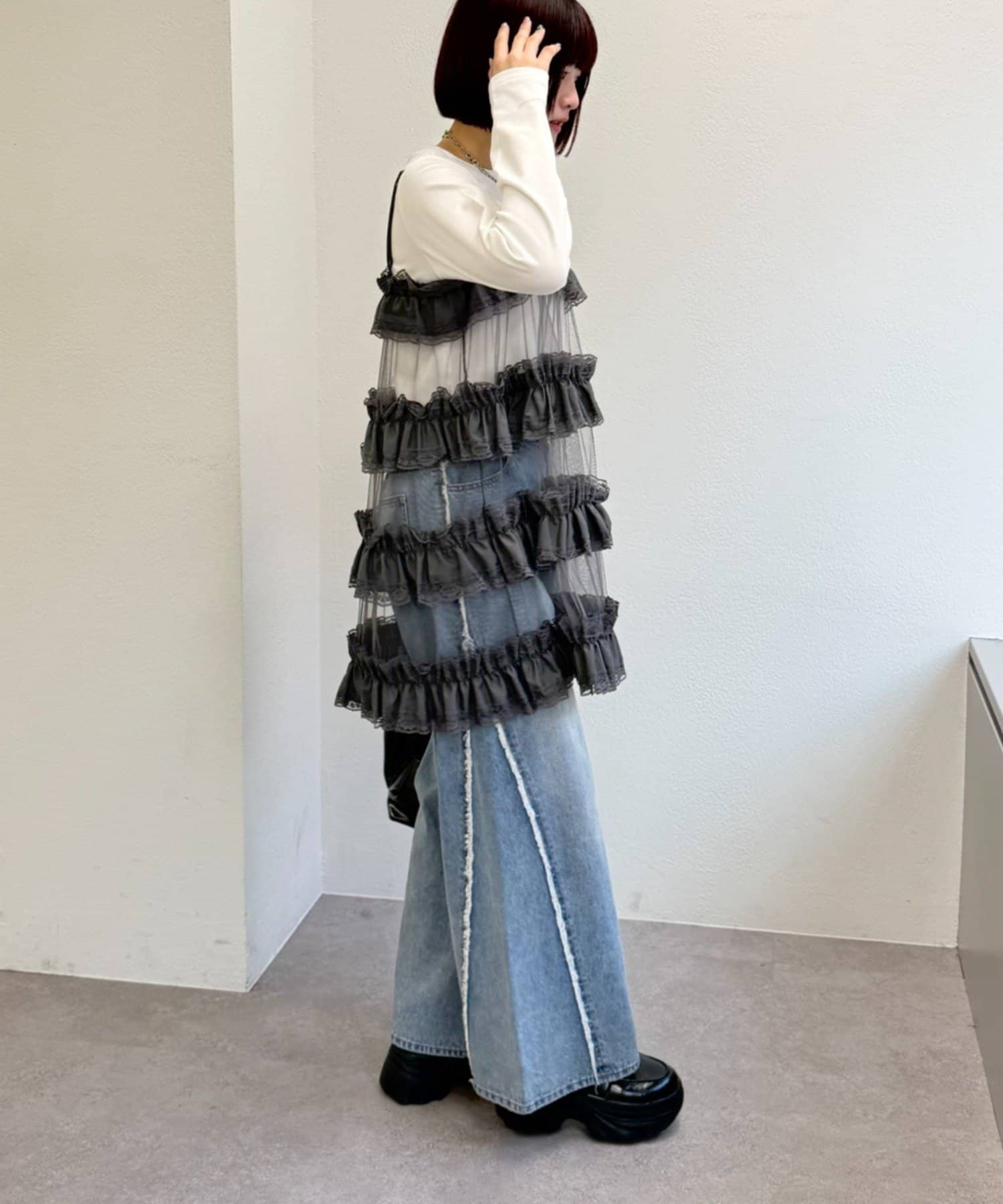 ・透け感のある生地でインナーが見えるので抜け感のあるレイヤードが叶います