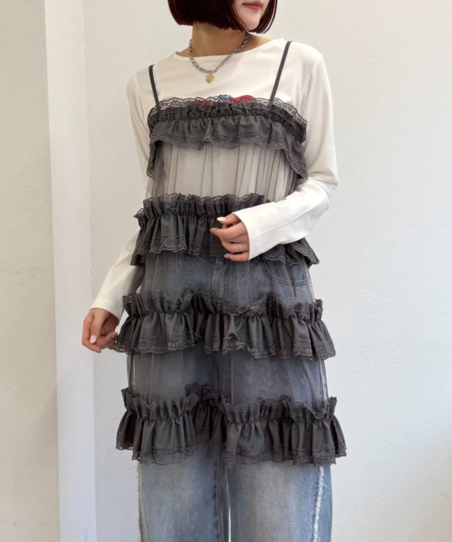 【リバイバルアイテム】レースティアードミニキャミワンピ