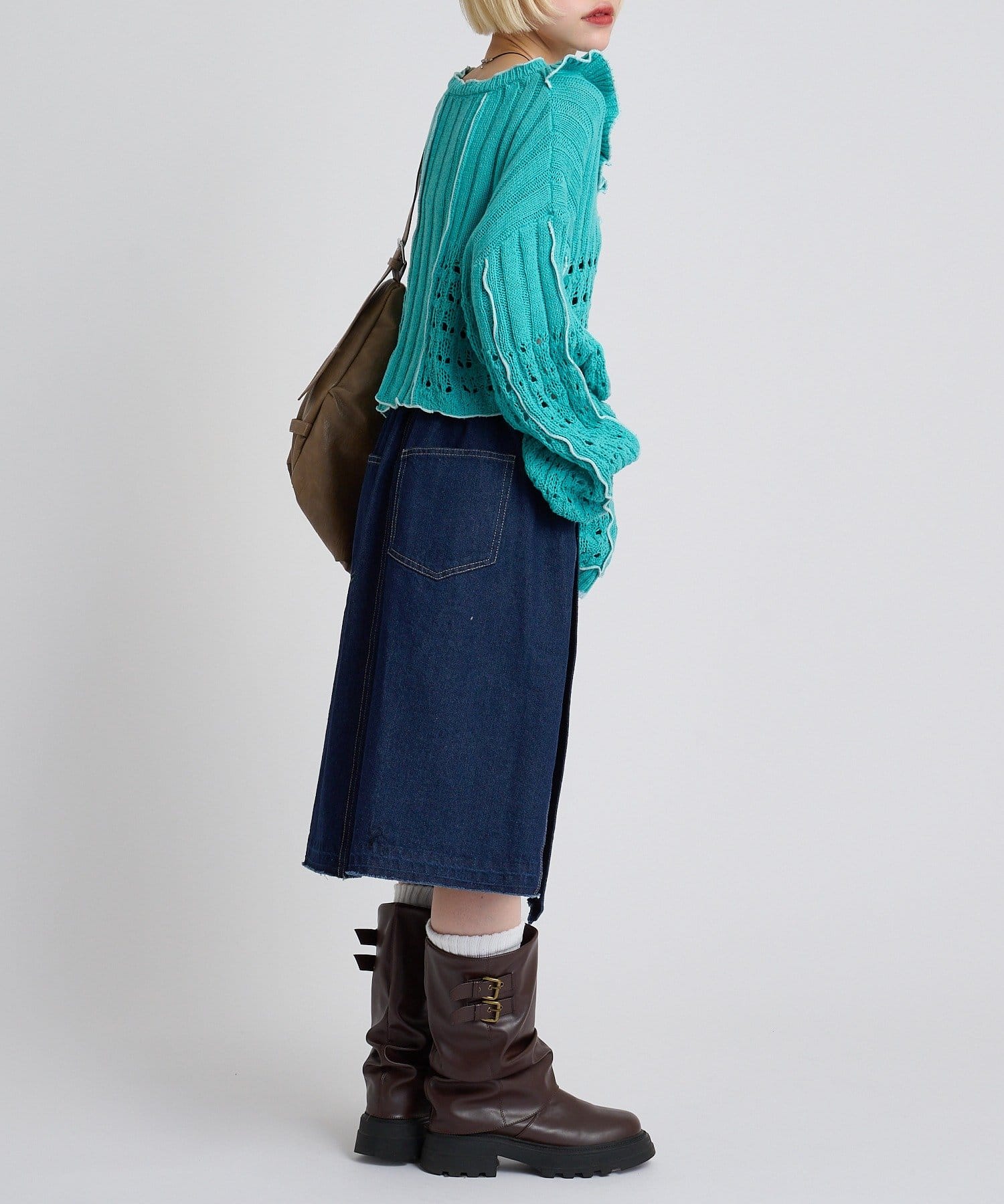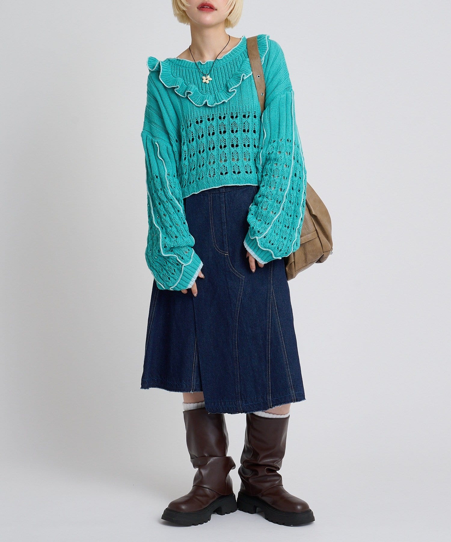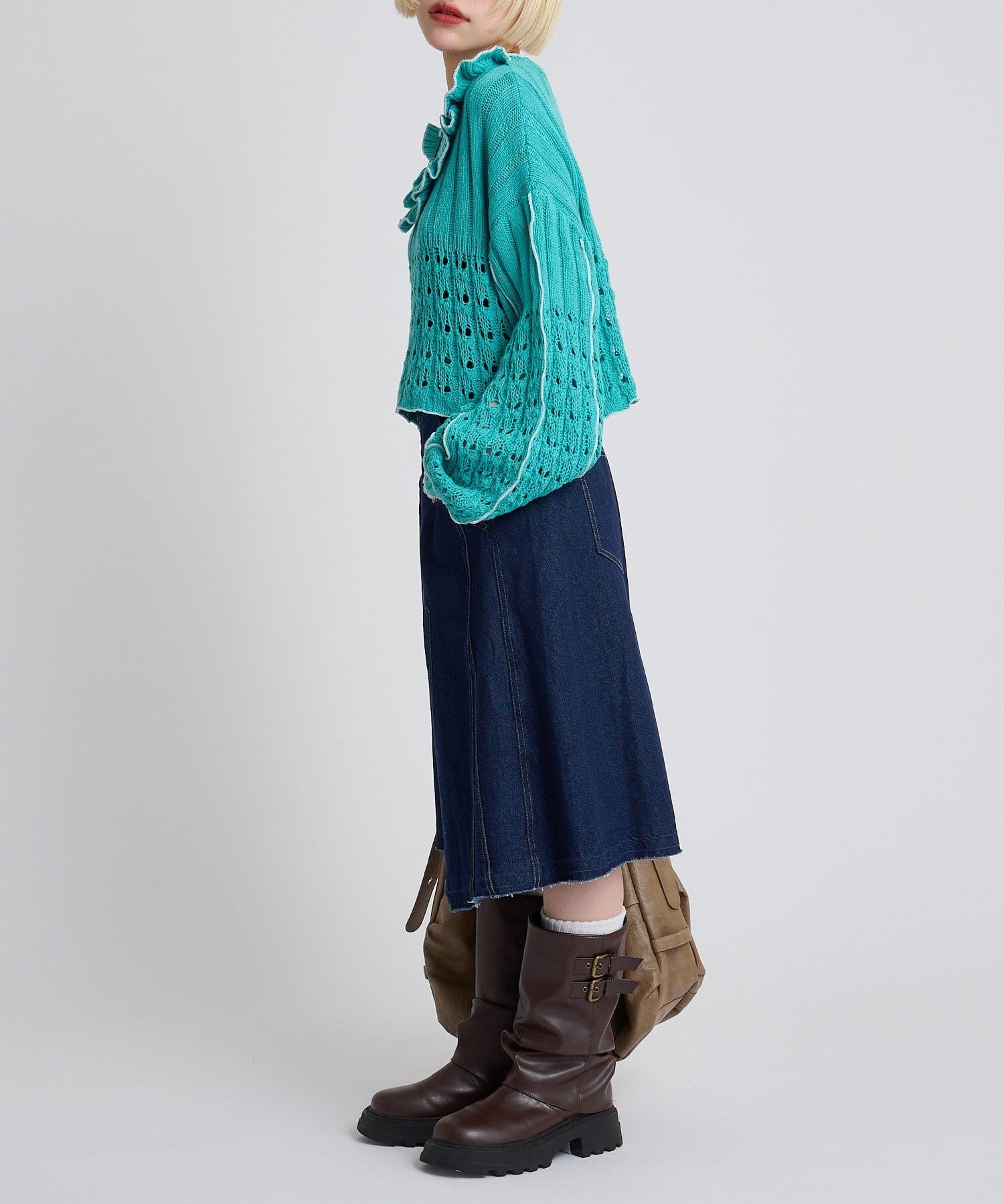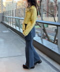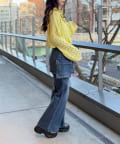 ・ショート丈を活かしたデニム合わせで、ラフだけど目を引くスタイリング